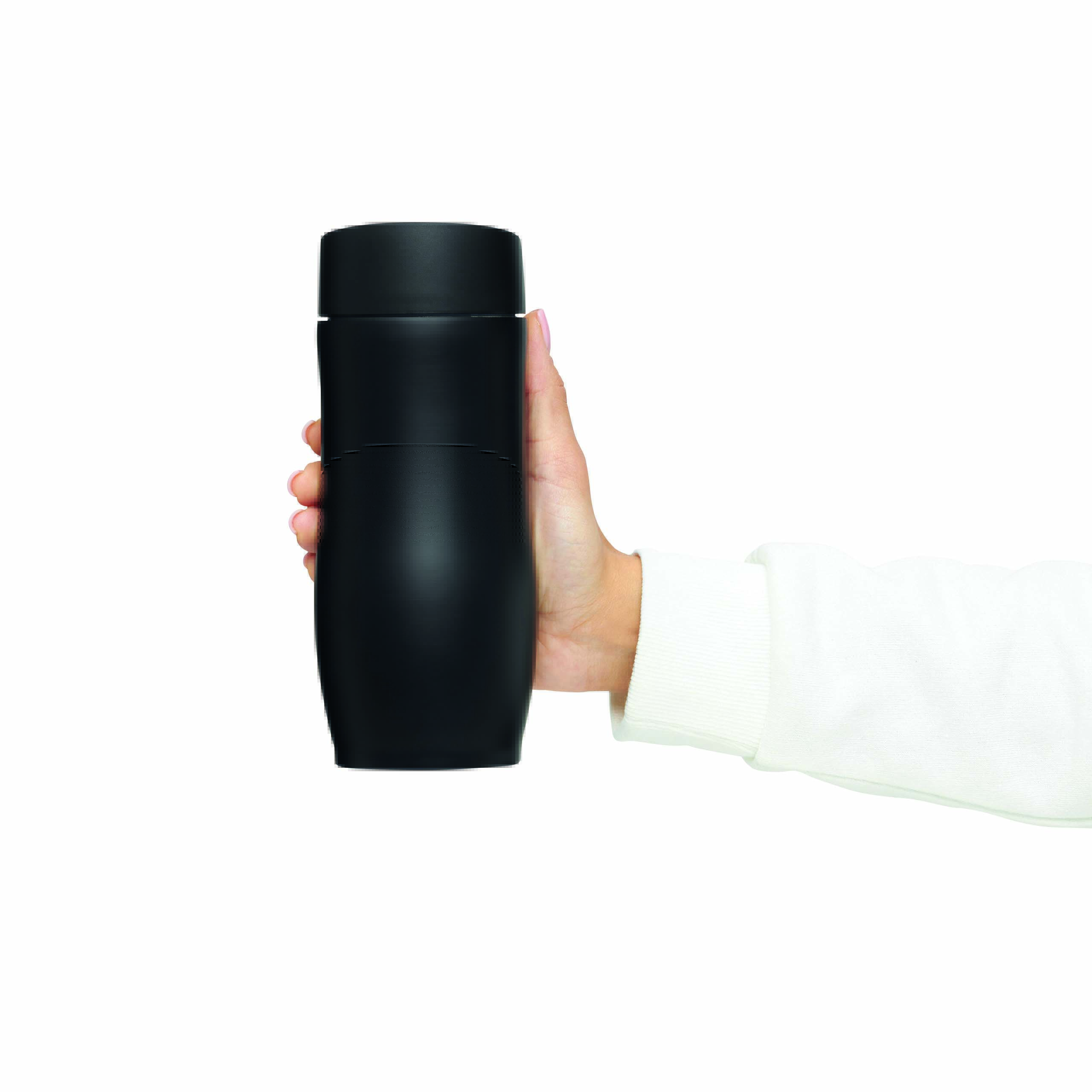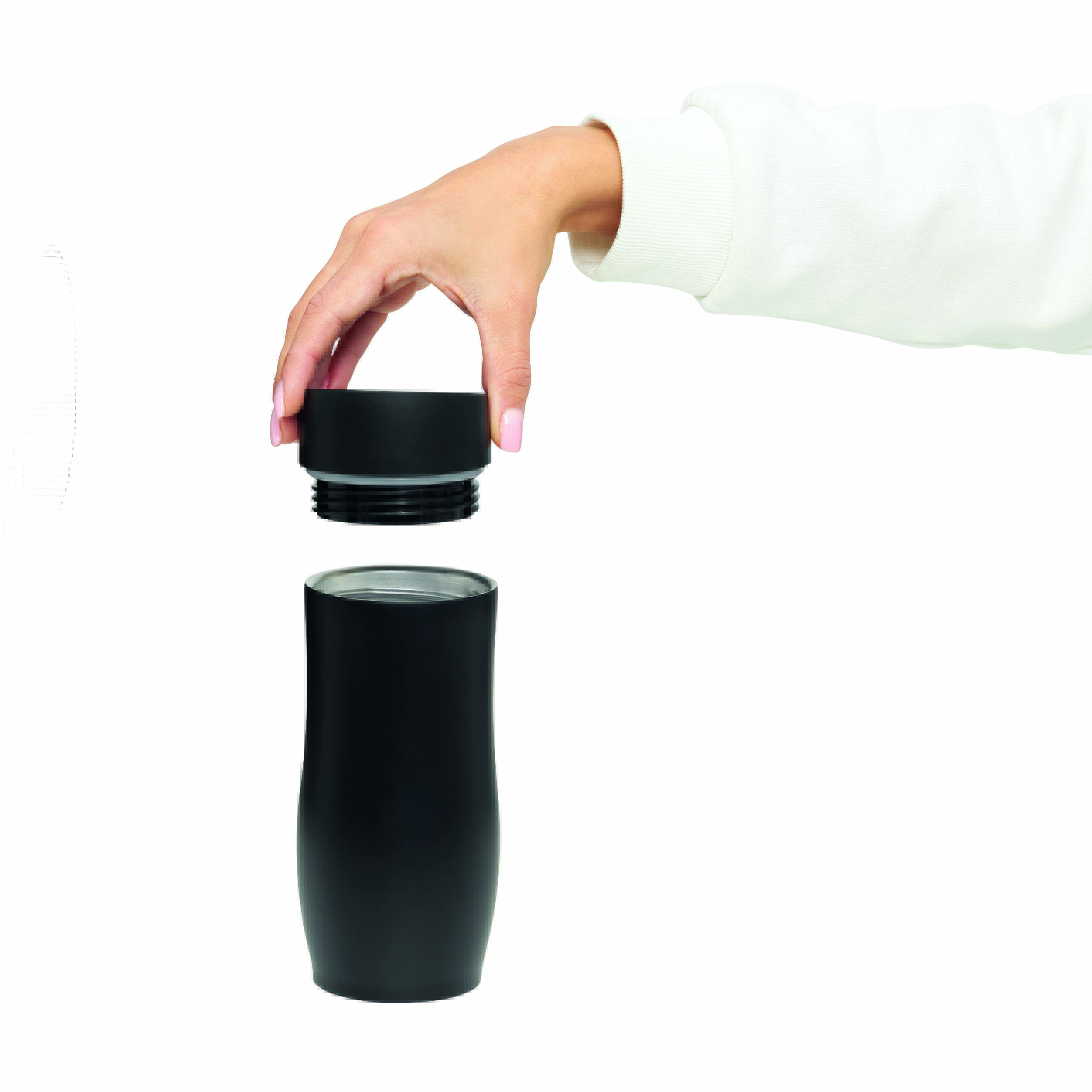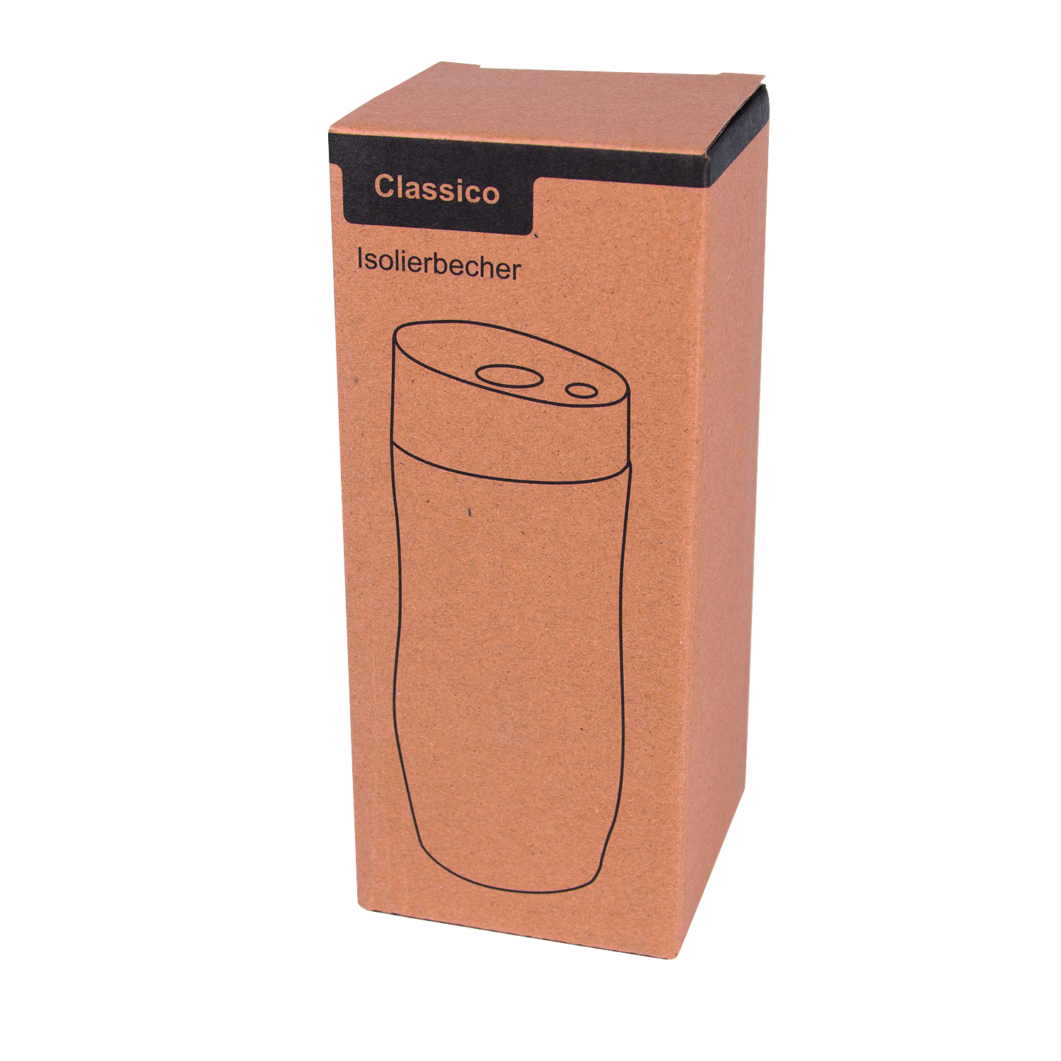 Kubek termiczny CLASSICO wykonany wewnątrz i na zewnątrz ze stali nierdzewnej. Plastikowe odkręcane niekapiące wieczko z przyciskiem OPEN/CLOSE i wbudowanym otworem do picia, gumowany spód dla lepszej przyczepności, pojemność ok. 380 ml.