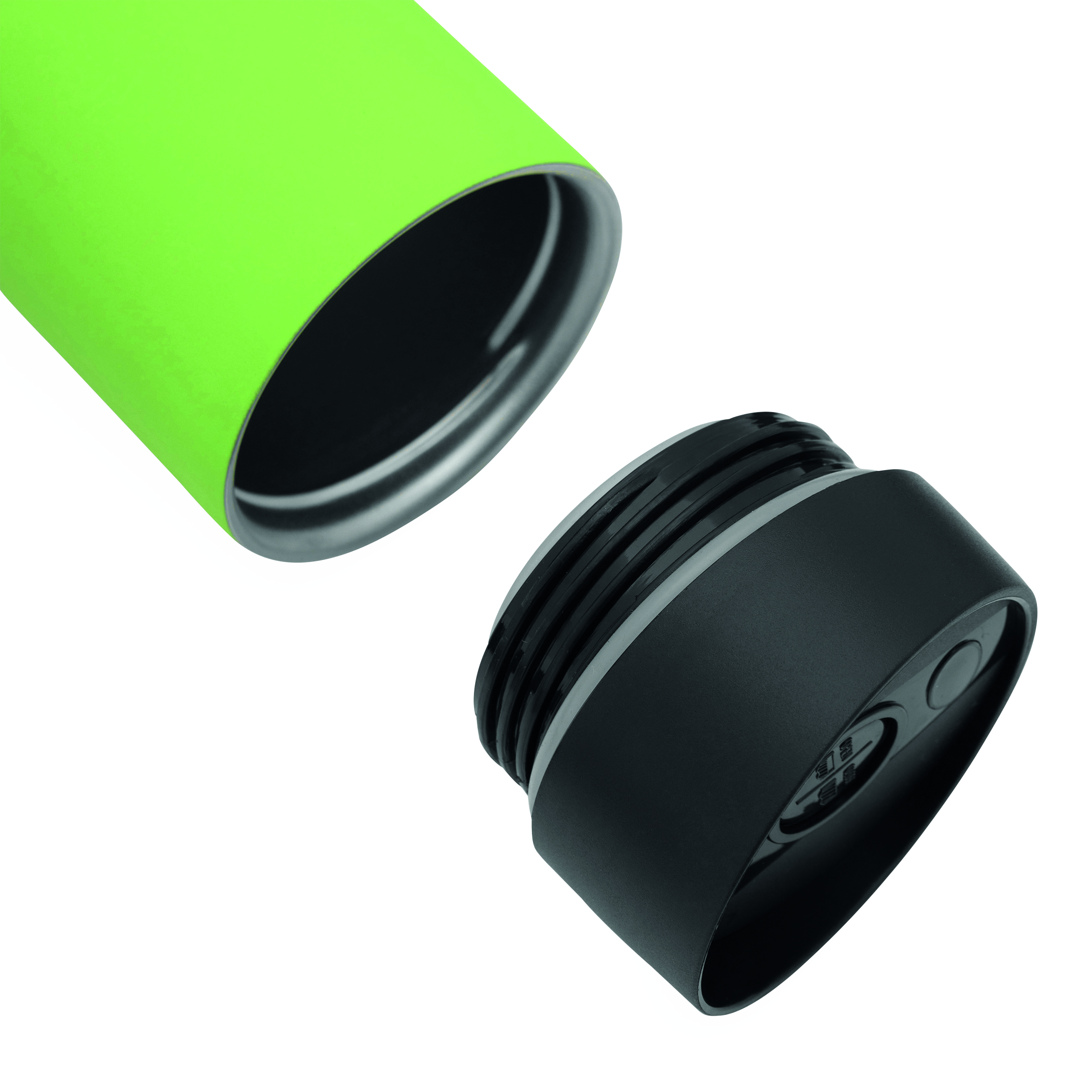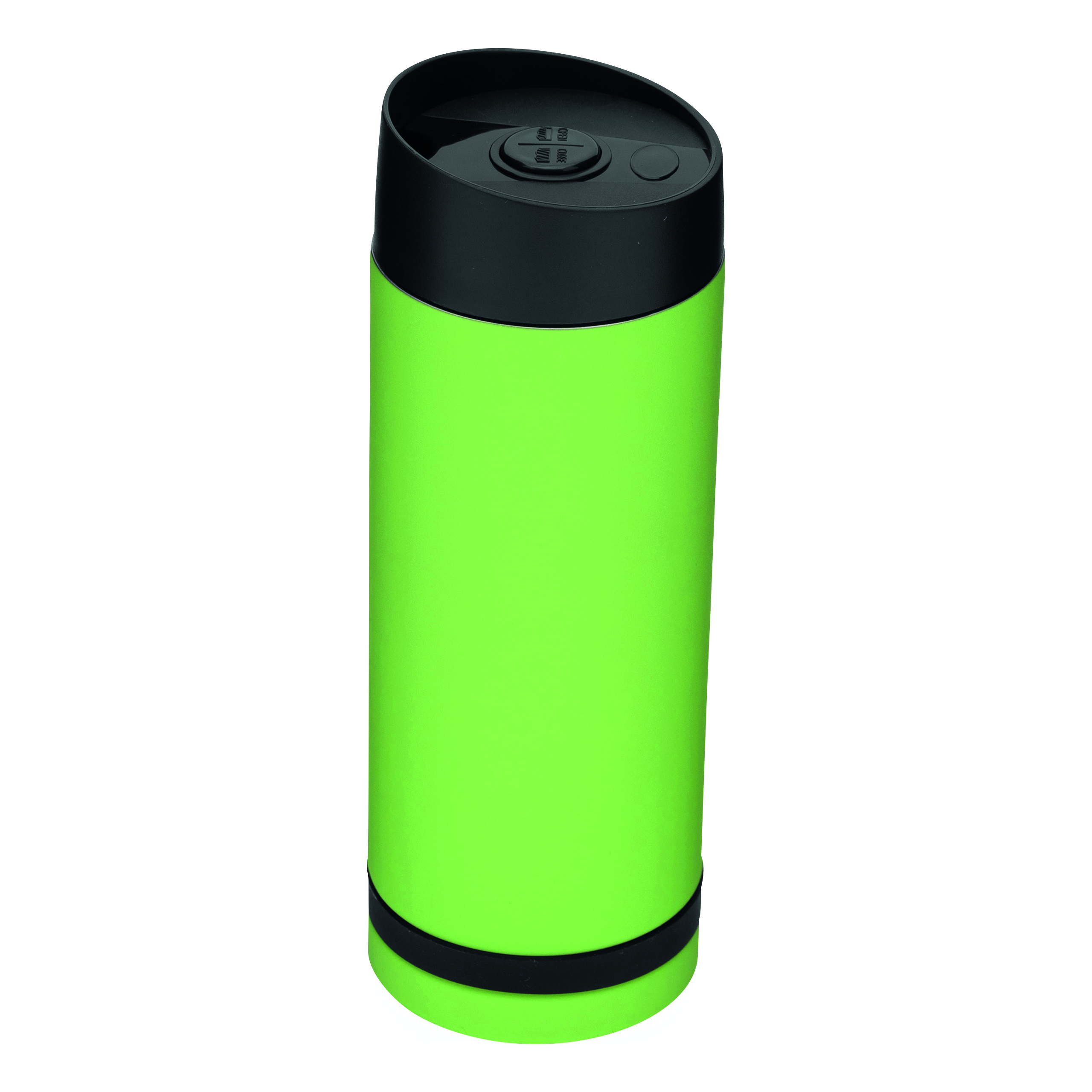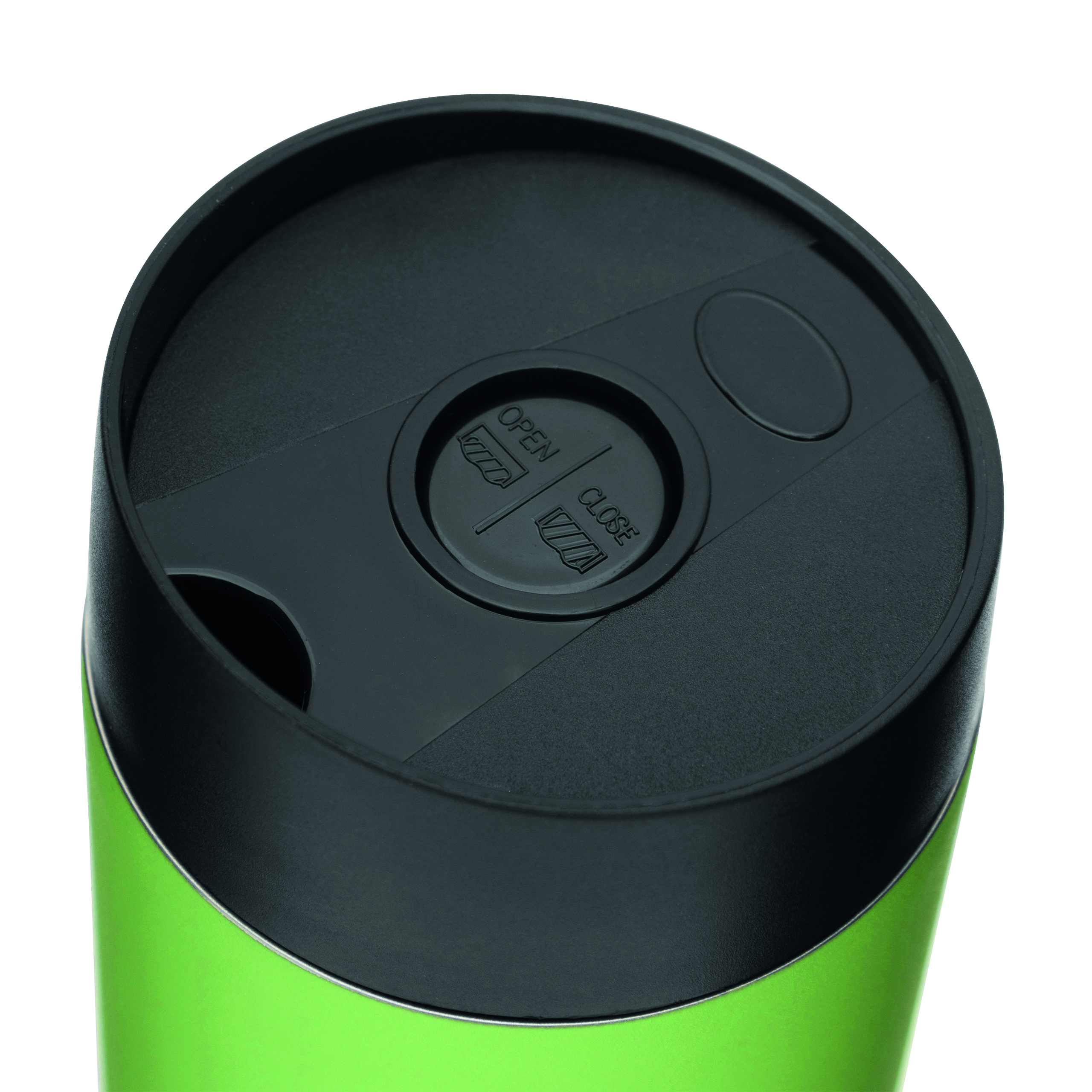 Kubek termiczny FLAVOURED o podwójnych ściankach, wewnątrz i na zewnątrz wykonany ze stali nierdzewnej. Plastikowe wieczko z bezpieczną zakrętką, przyciskiem OPEN/CLOSE i otworem do picia, pojemność ok. 380 ml.