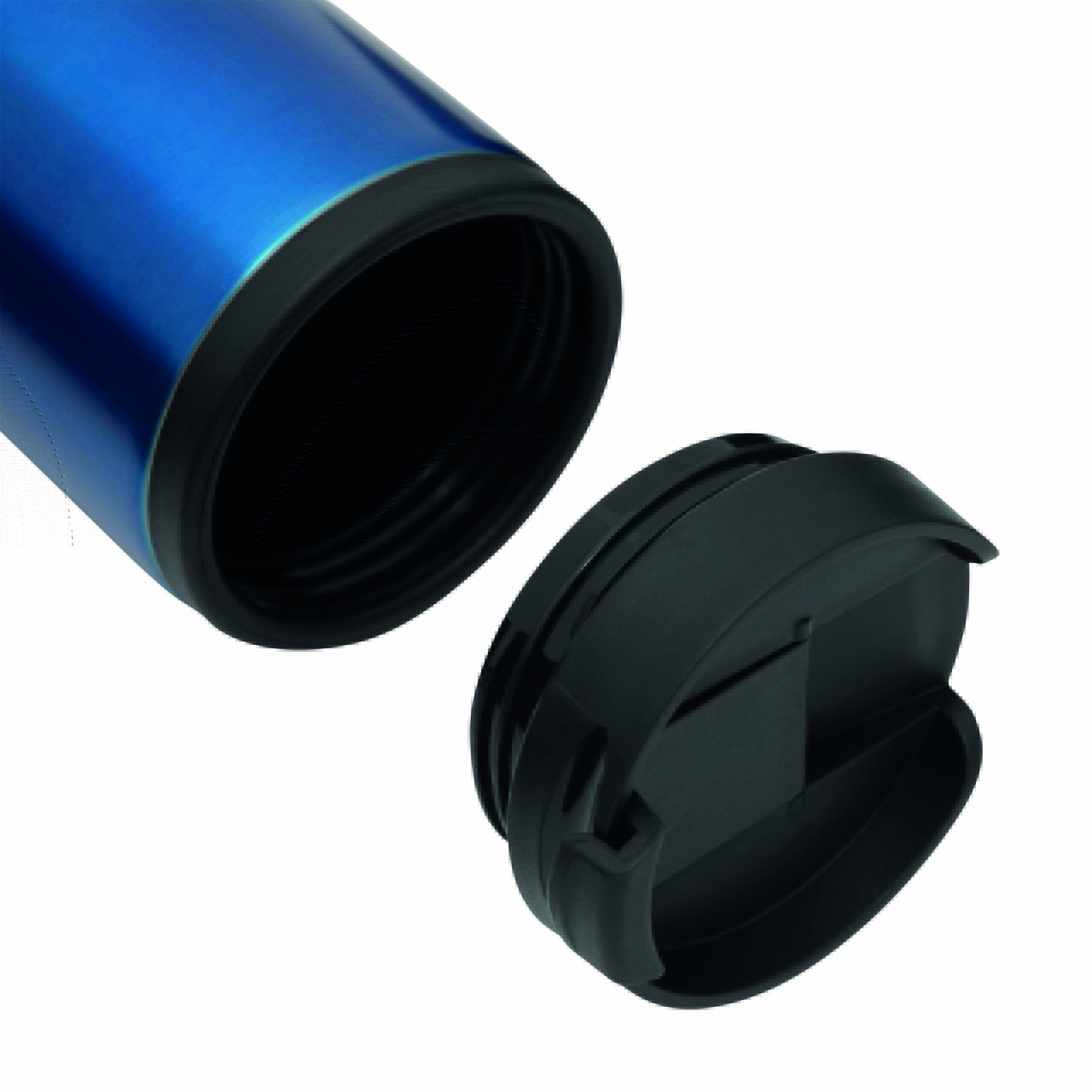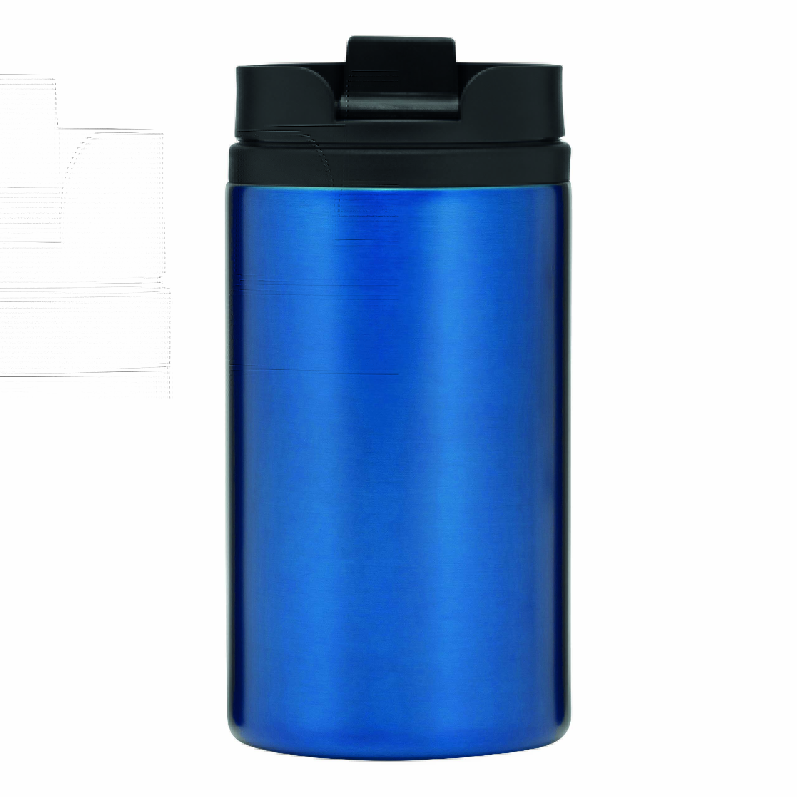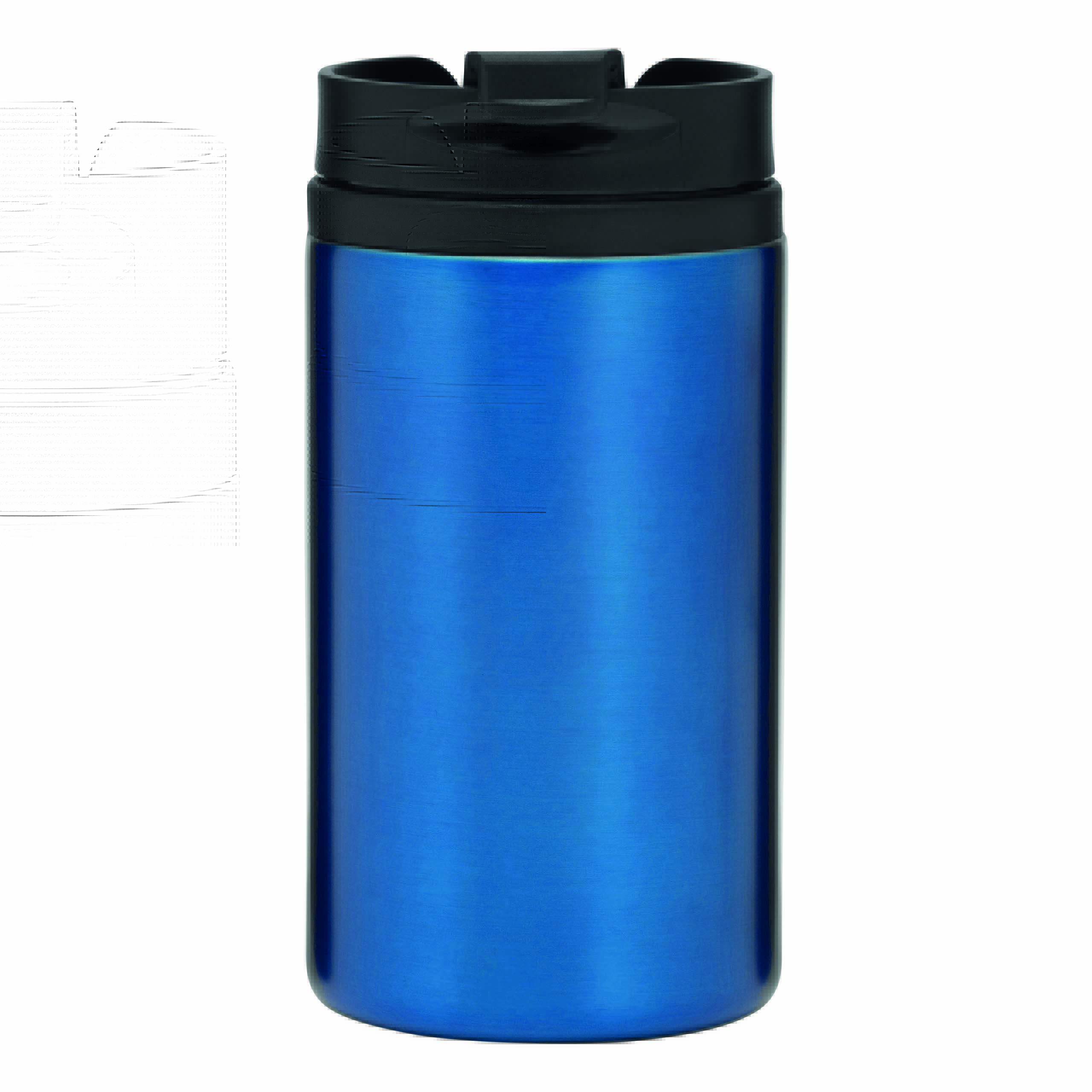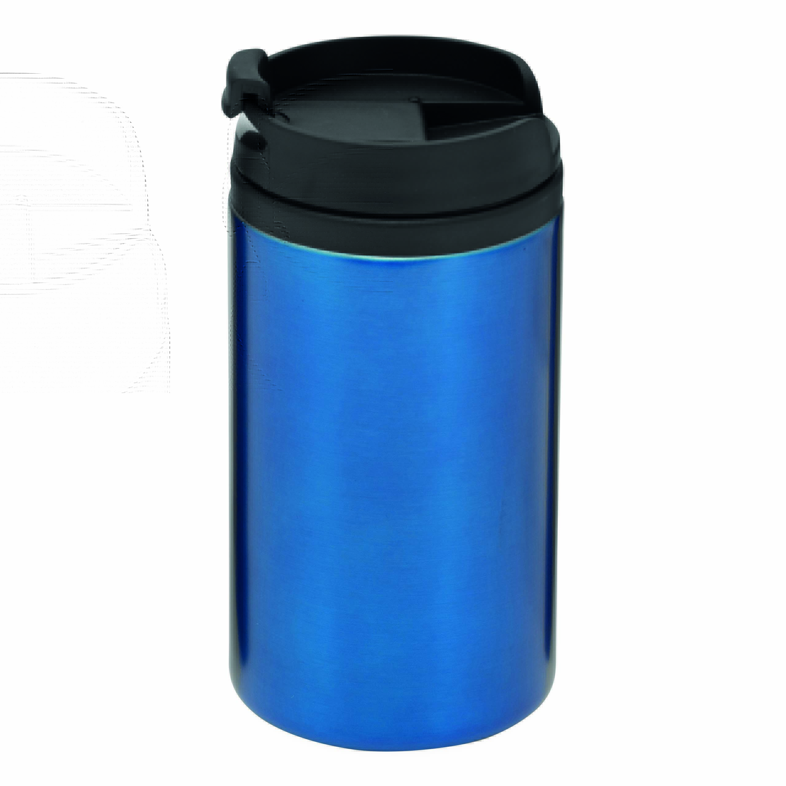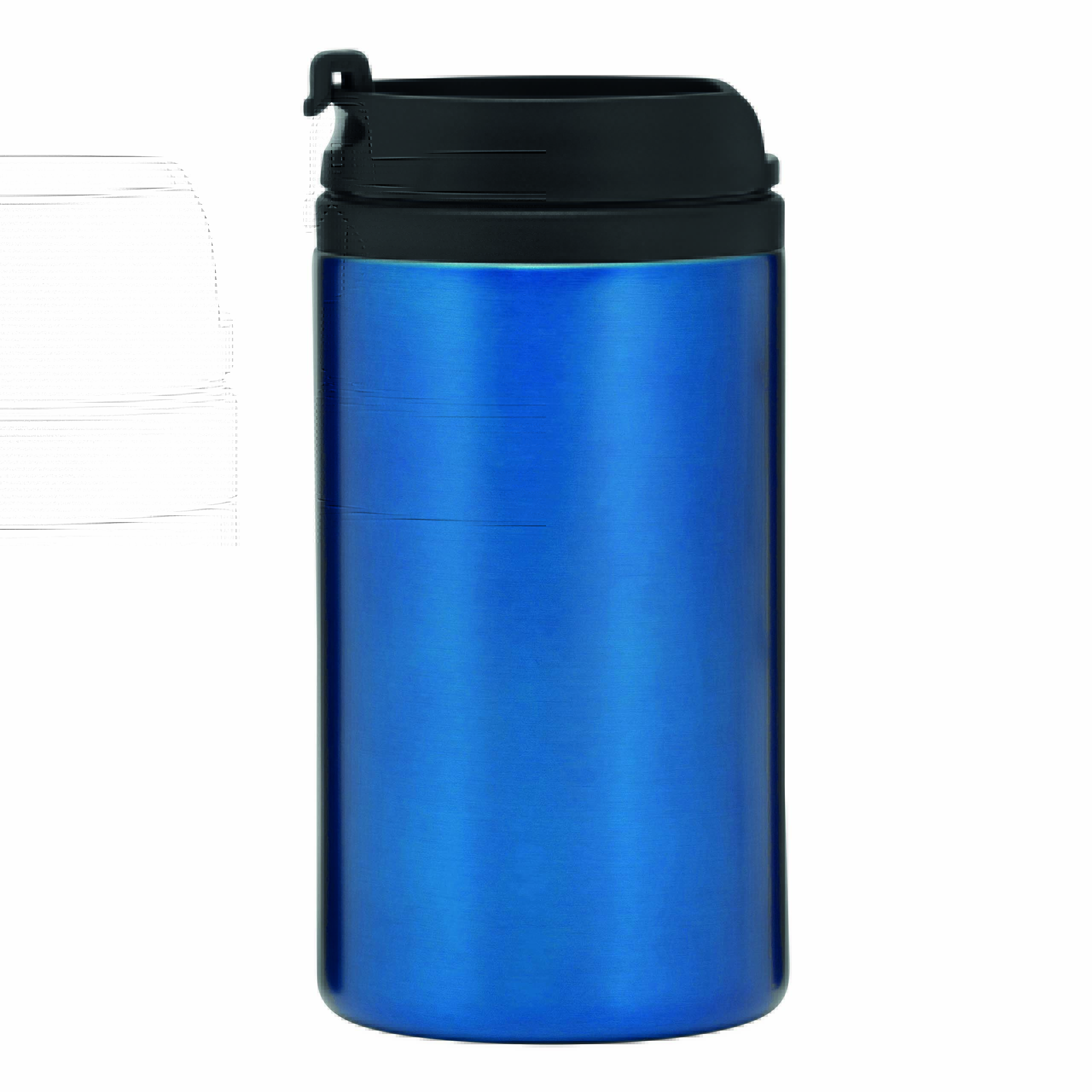 Kubek termiczny TAKE FAST o podwójnych ściankach. Na zewnątrz stal nierdzewna, wewnątrz plastik, plastikowa przykrywka z bezpiecznym zamknięciem otworu do picia, z antypoślizgową podstawą, pojemność ok. 290 ml, pakowany w pudełko.