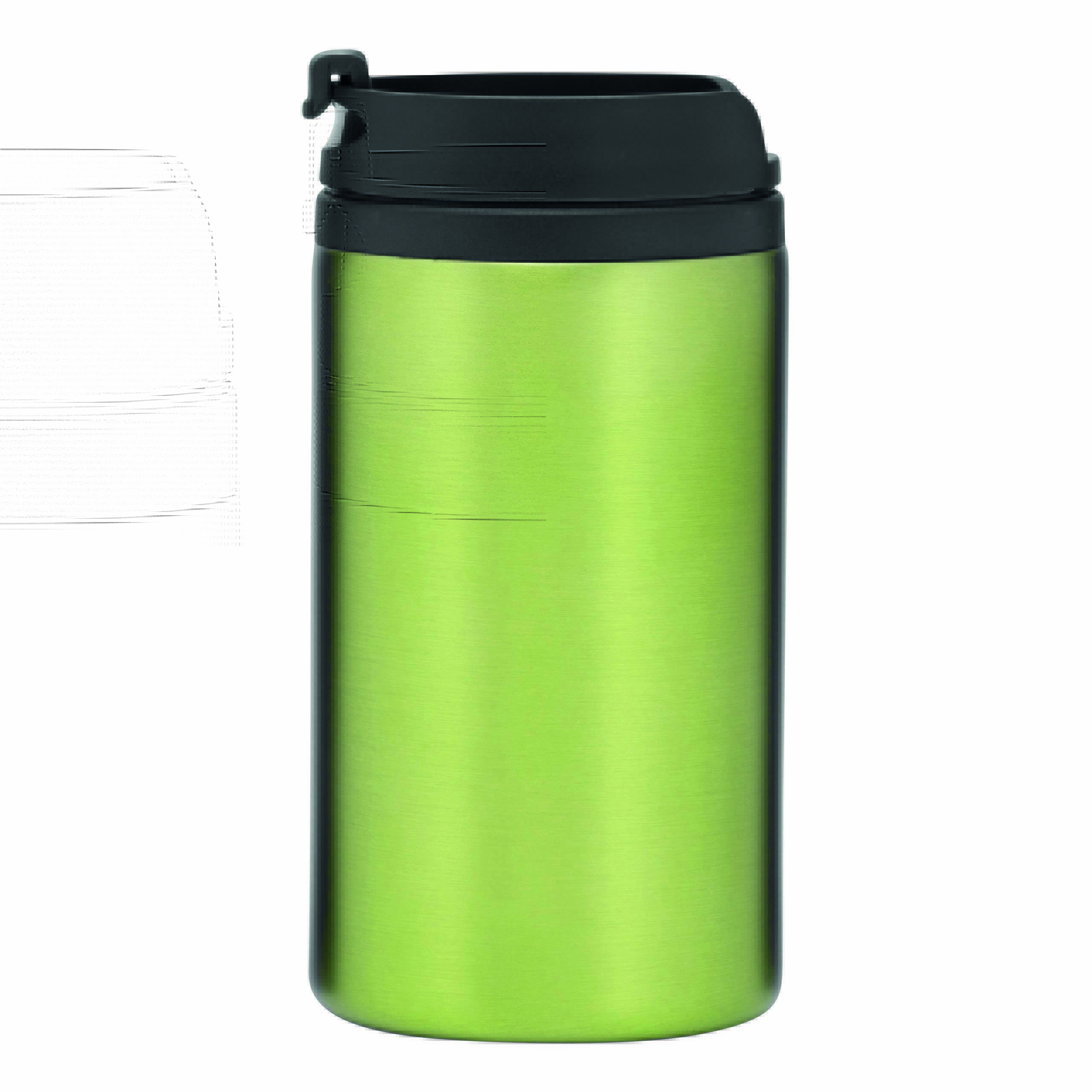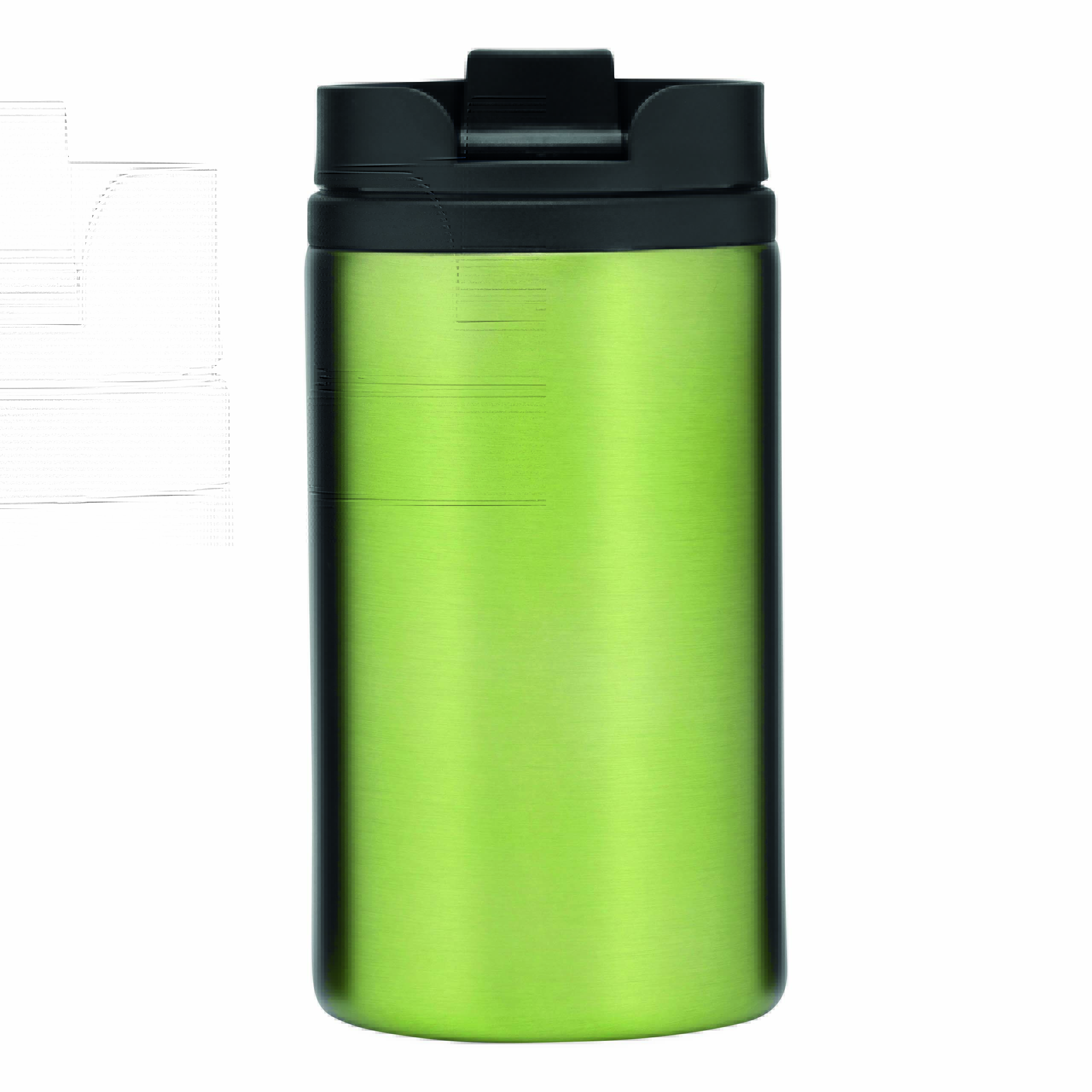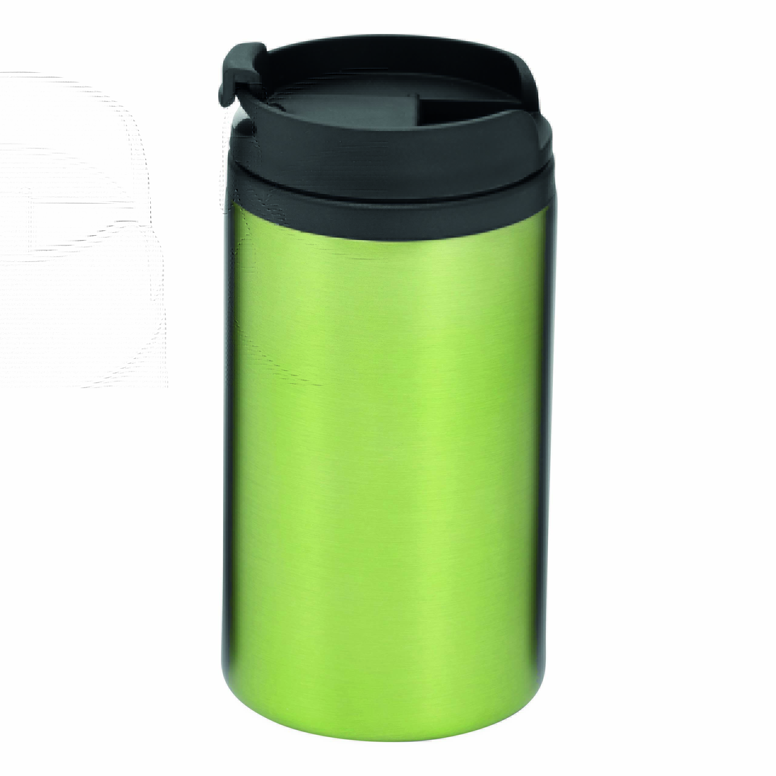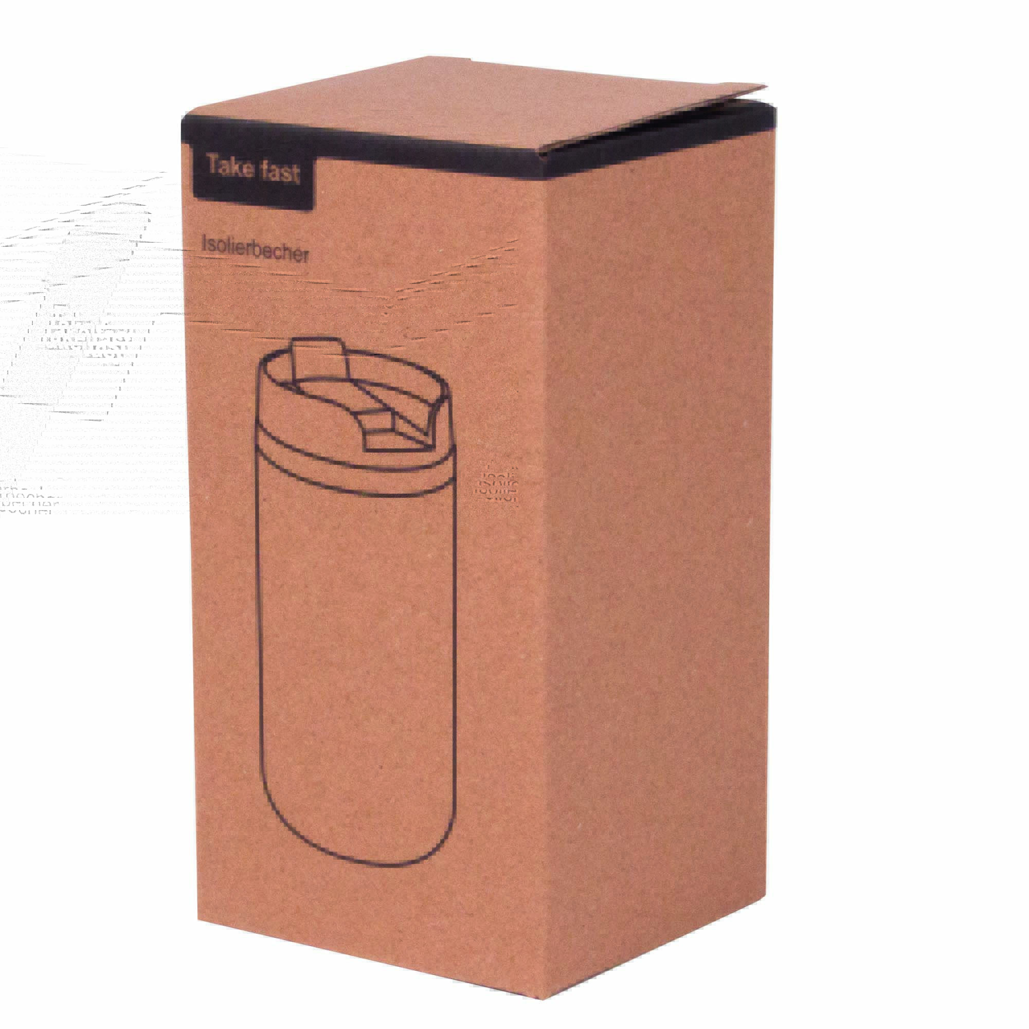 Kubek termiczny TAKE FAST o podwójnych ściankach. Na zewnątrz stal nierdzewna, wewnątrz plastik, plastikowa przykrywka z bezpiecznym zamknięciem otworu do picia, z antypoślizgową podstawą, pojemność ok. 290 ml, pakowany w pudełko.