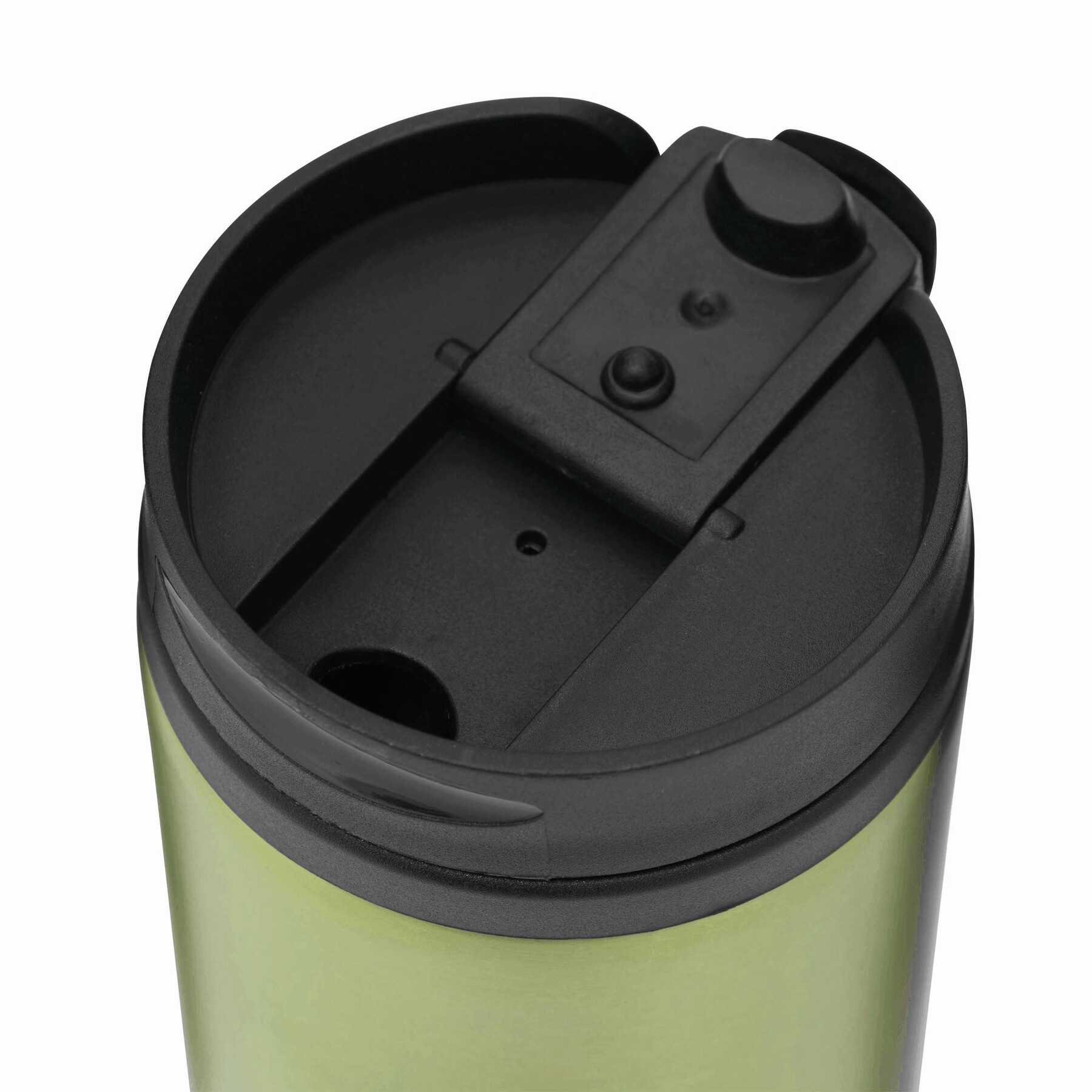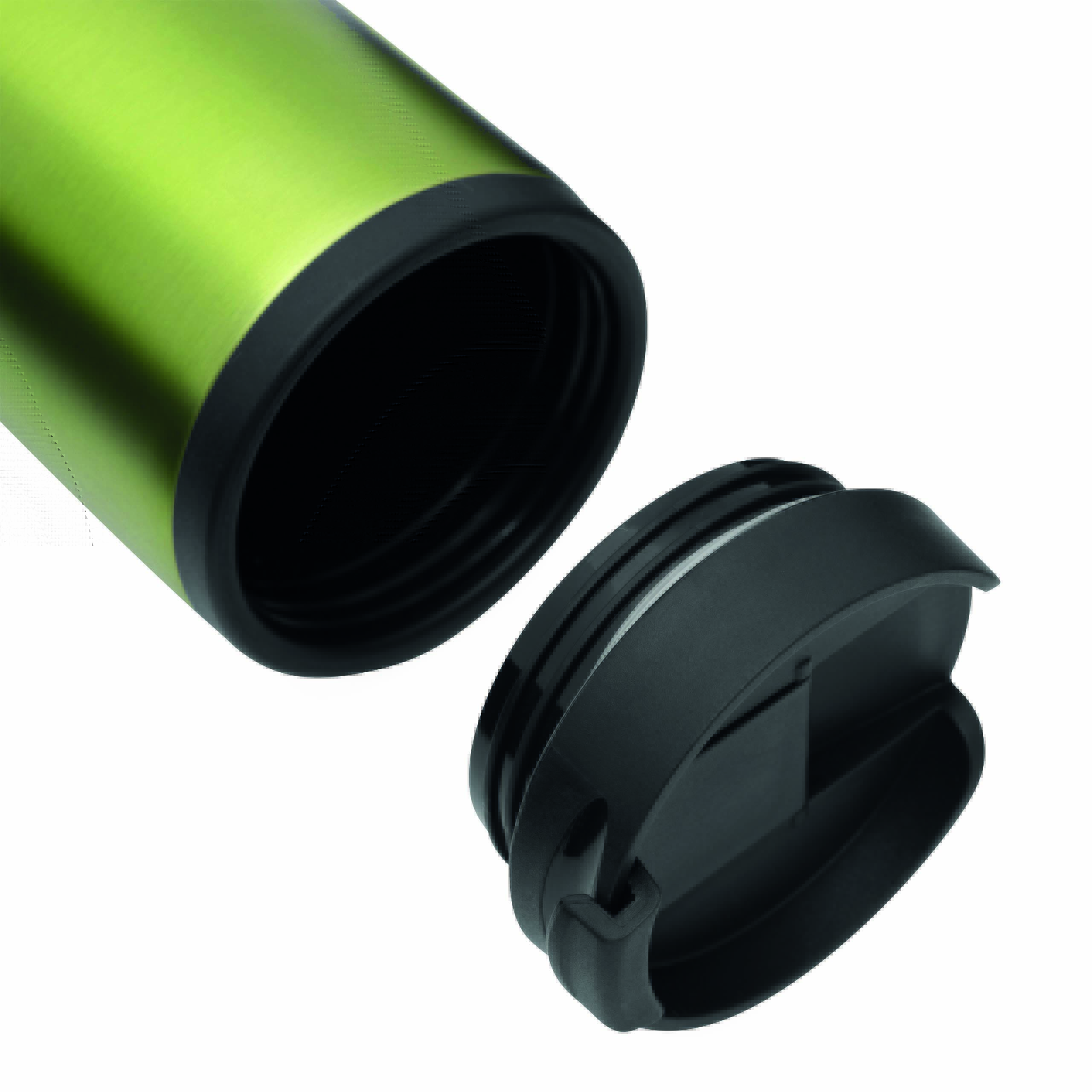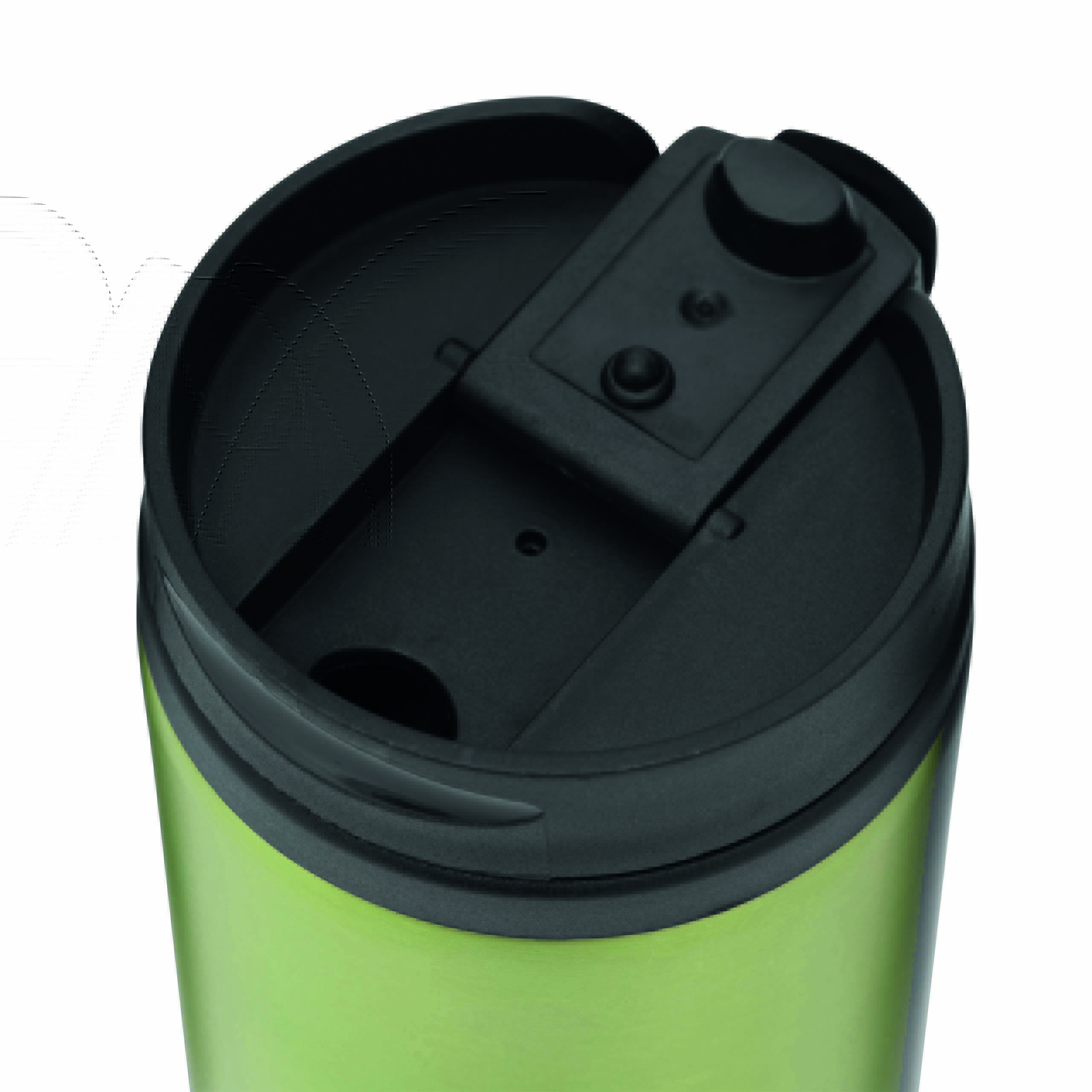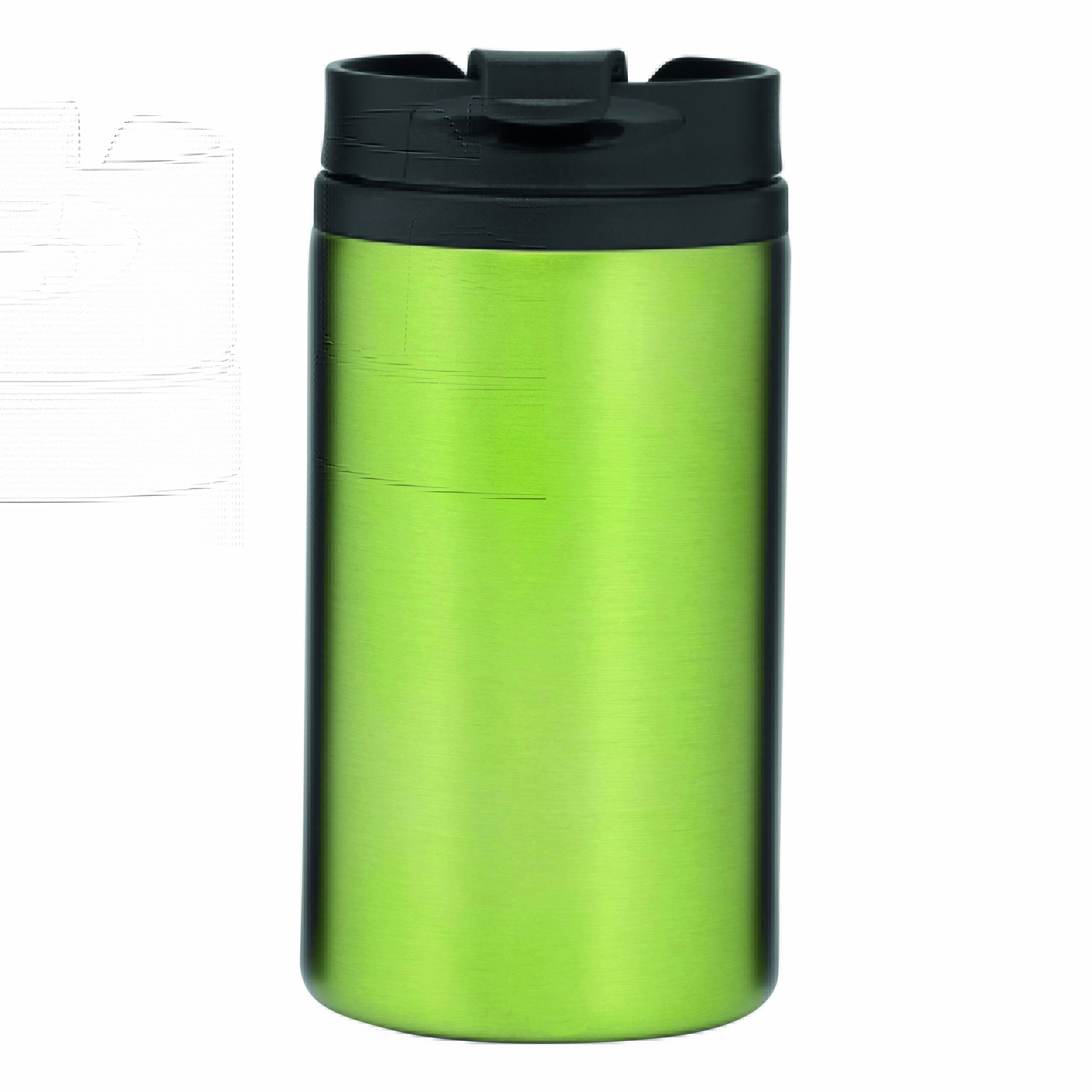 Kubek termiczny TAKE FAST o podwójnych ściankach. Na zewnątrz stal nierdzewna, wewnątrz plastik, plastikowa przykrywka z bezpiecznym zamknięciem otworu do picia, z antypoślizgową podstawą, pojemność ok. 290 ml, pakowany w pudełko.