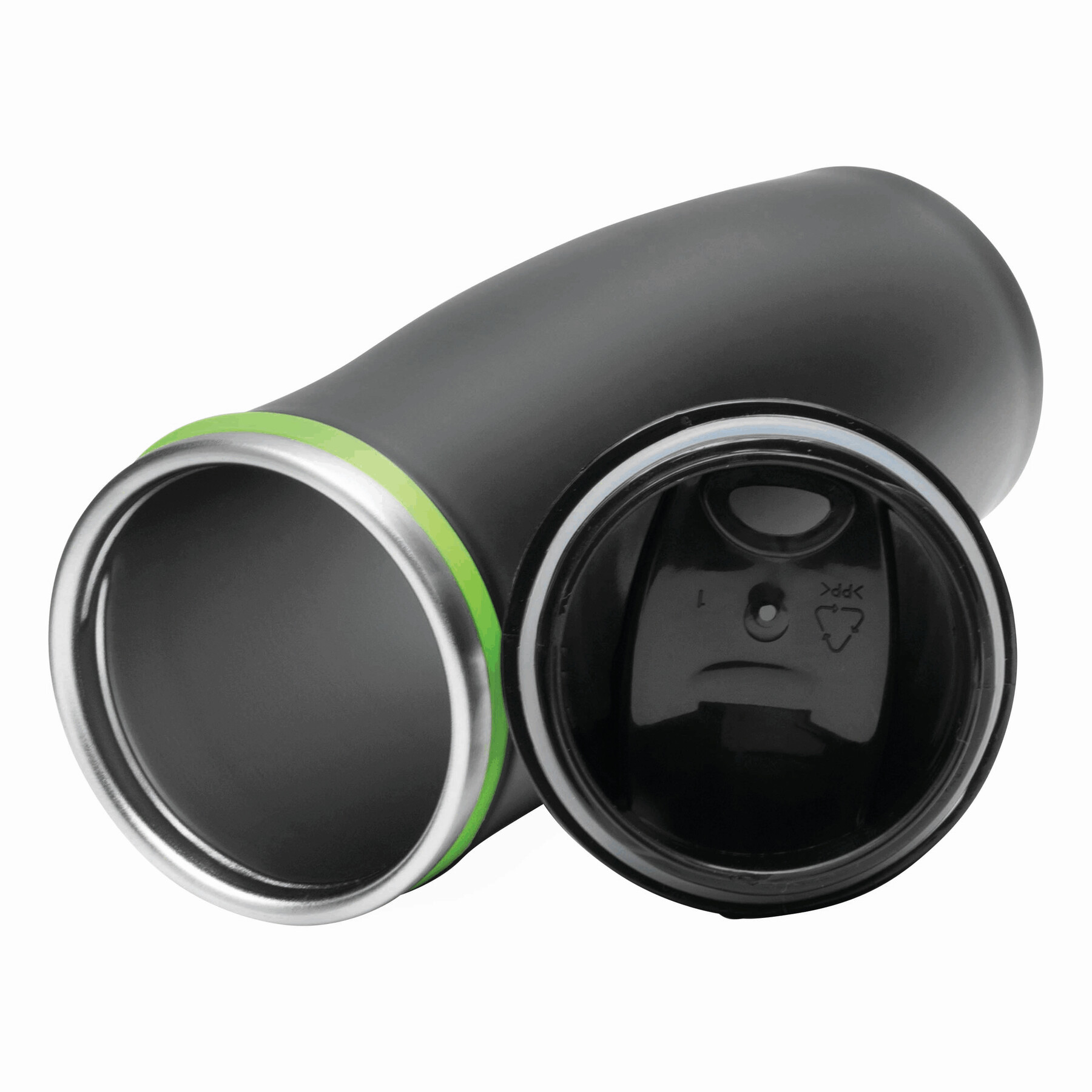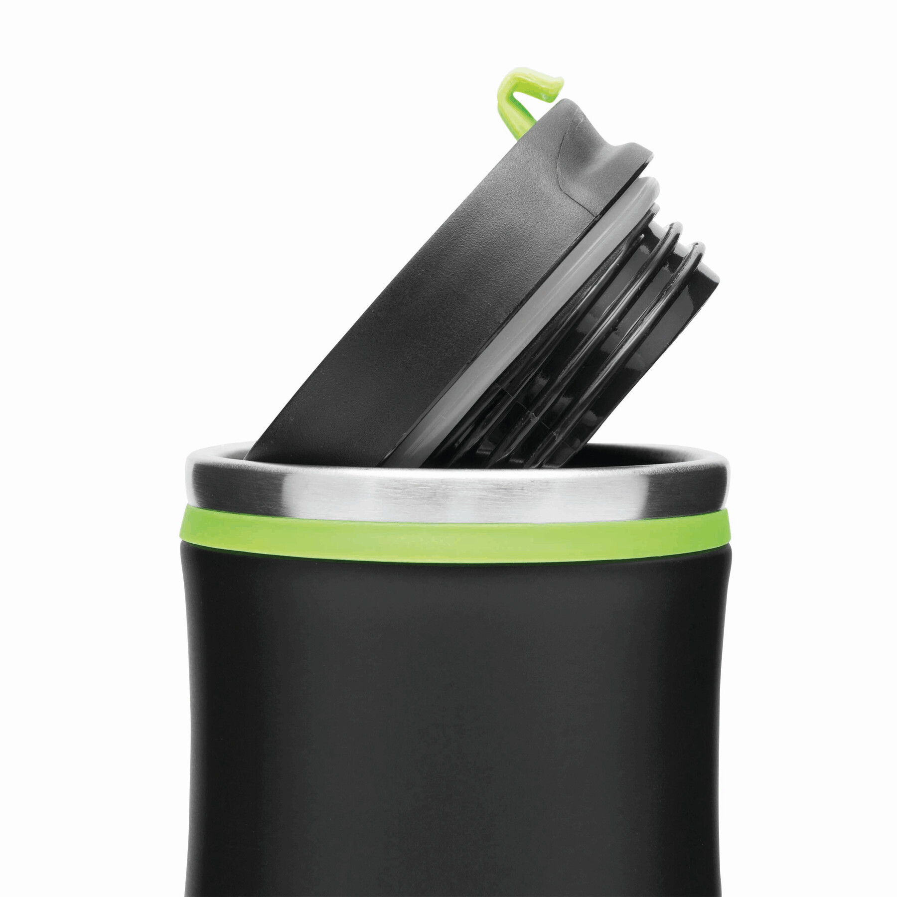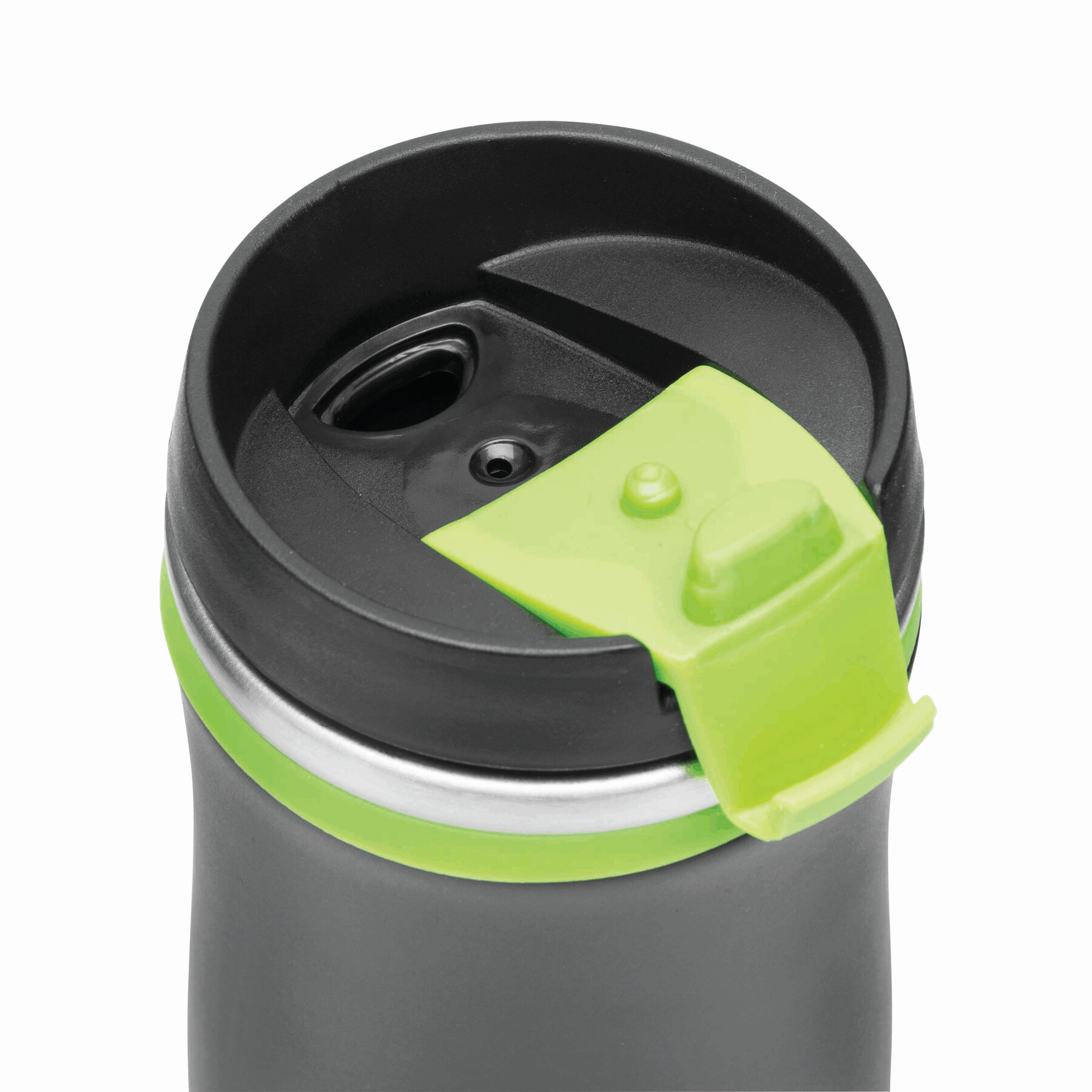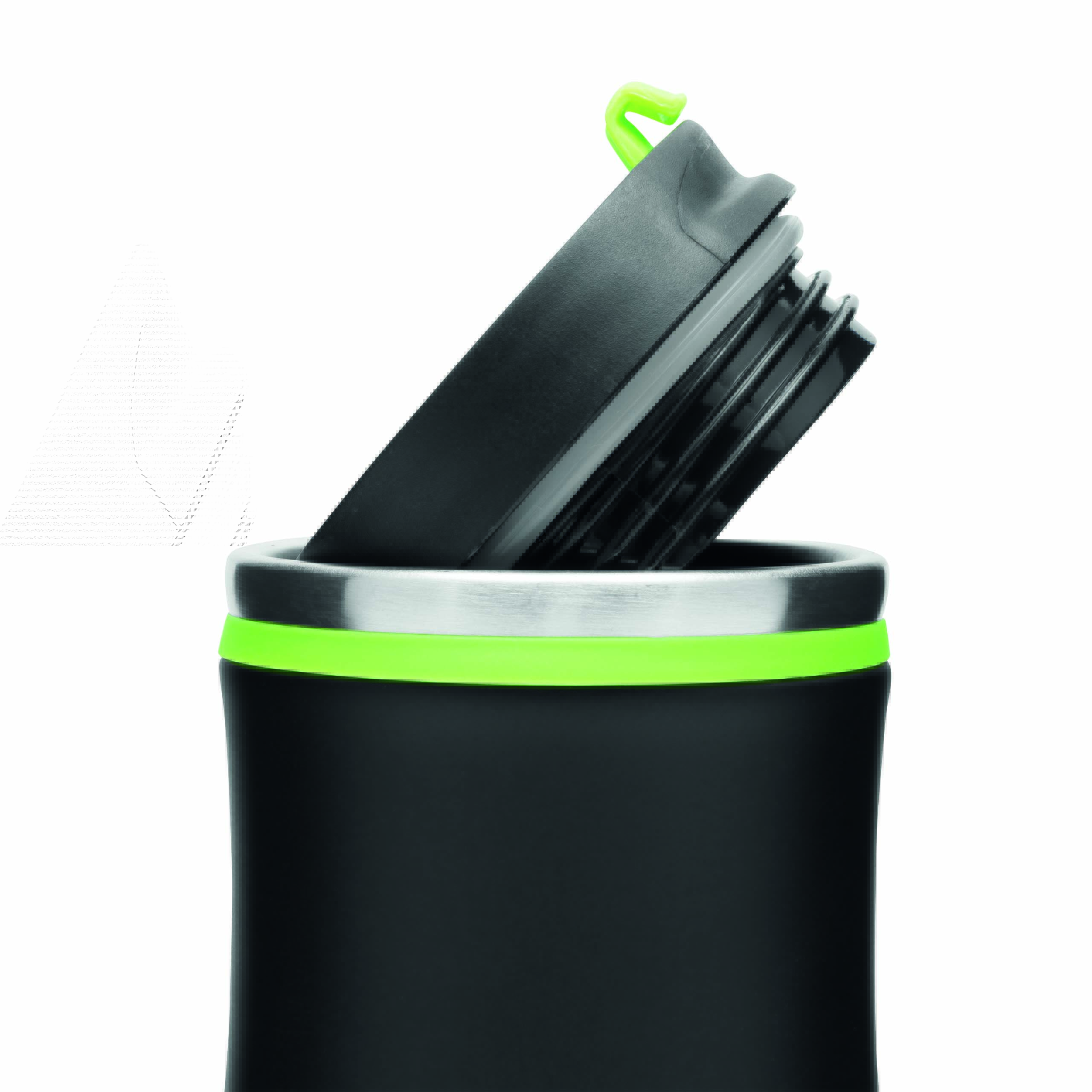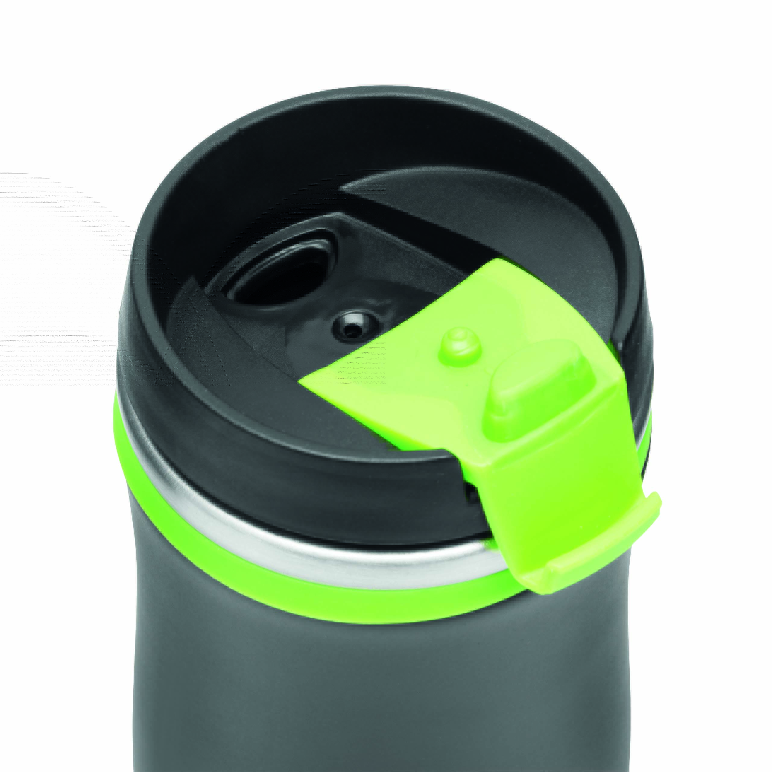 Kubek termiczny o podwójnych ściankach DARK CREMA. Wewnątrz i na zewnątrz stal nierdzewna. Odkręcana plastikowa pokrywa z wbudowanym, składanym otworem do picia, kolorowy gumowy pierścień wokół otworu i gumowany spód dla lepszej przyczepności, pojemność ok. 400 ml.