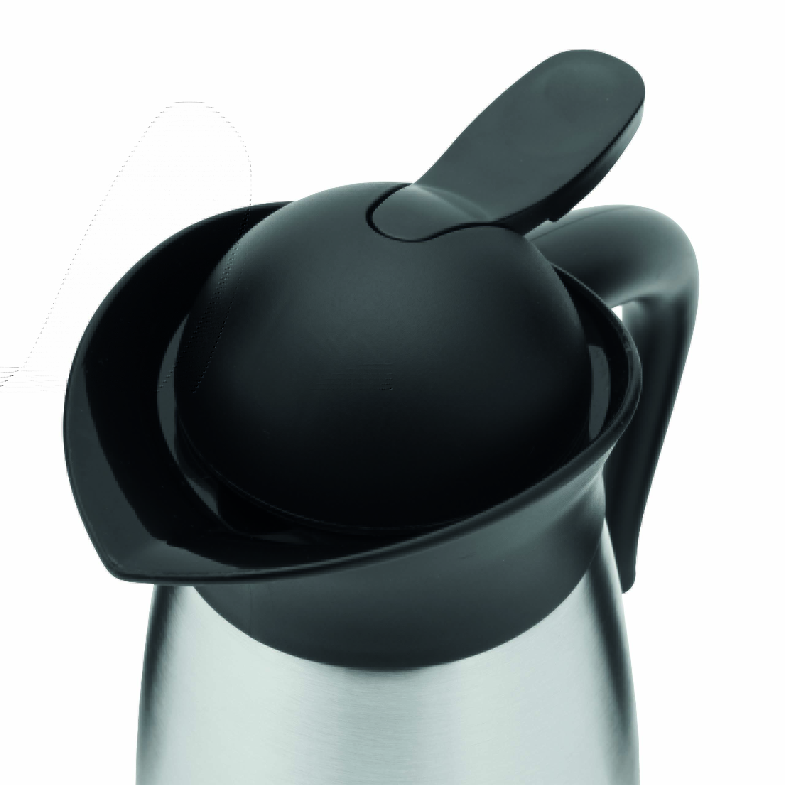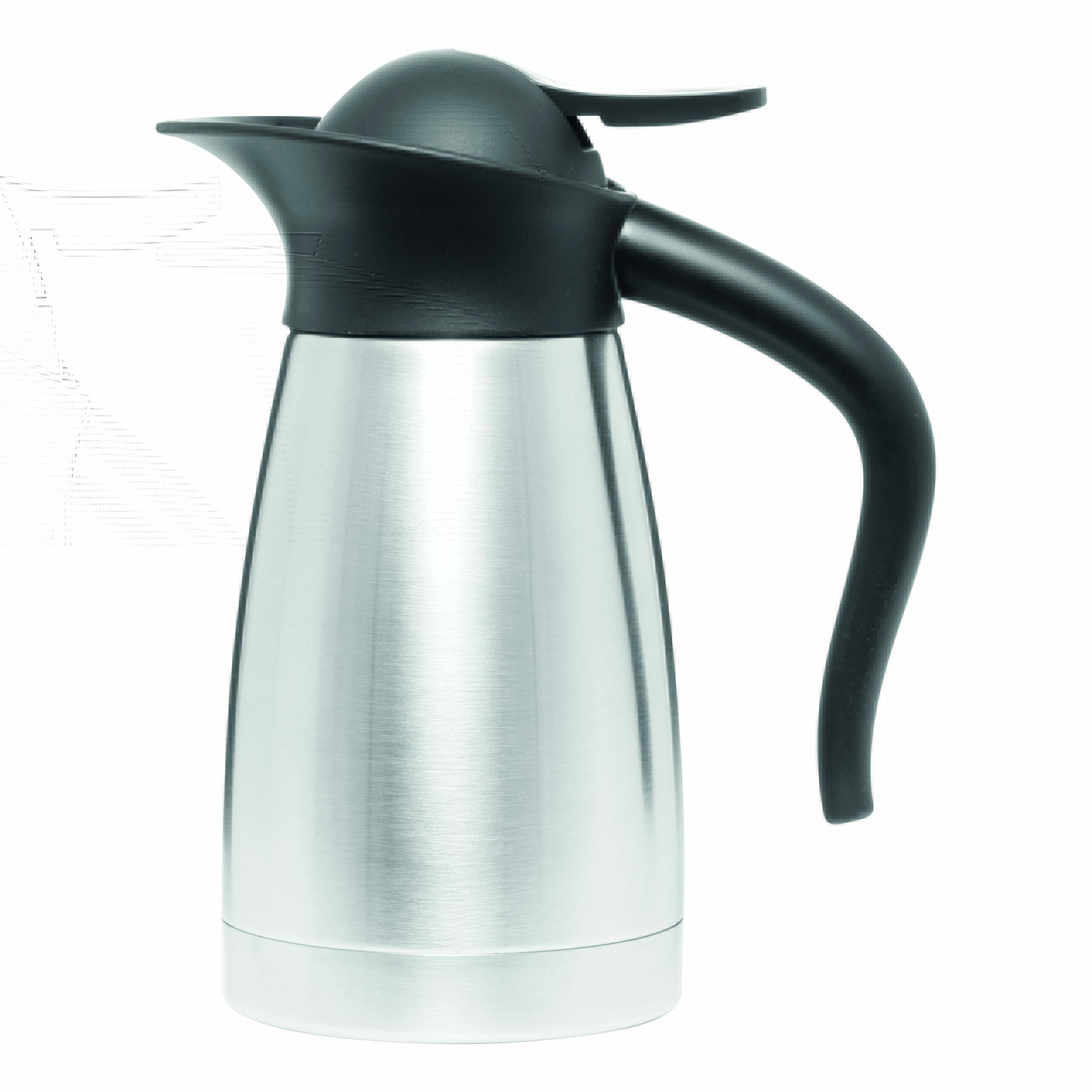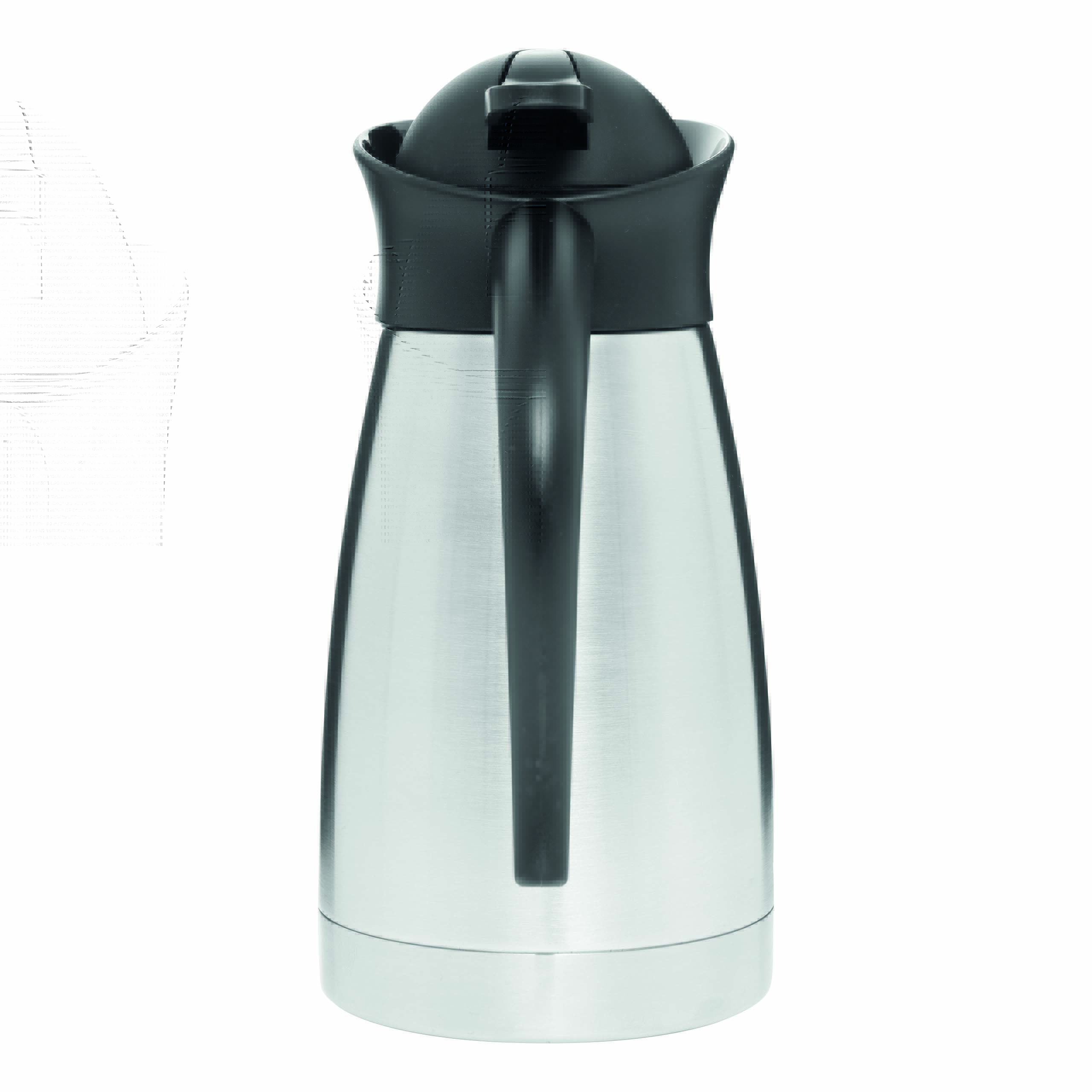 Dwuścienny dzbanek próżniowy AWAKE ze stali nierdzewnej. Nakrętka z przyciskiem do nalewania jedną ręką. Pojemność ok. 1 l. W pudełku upominkowym.