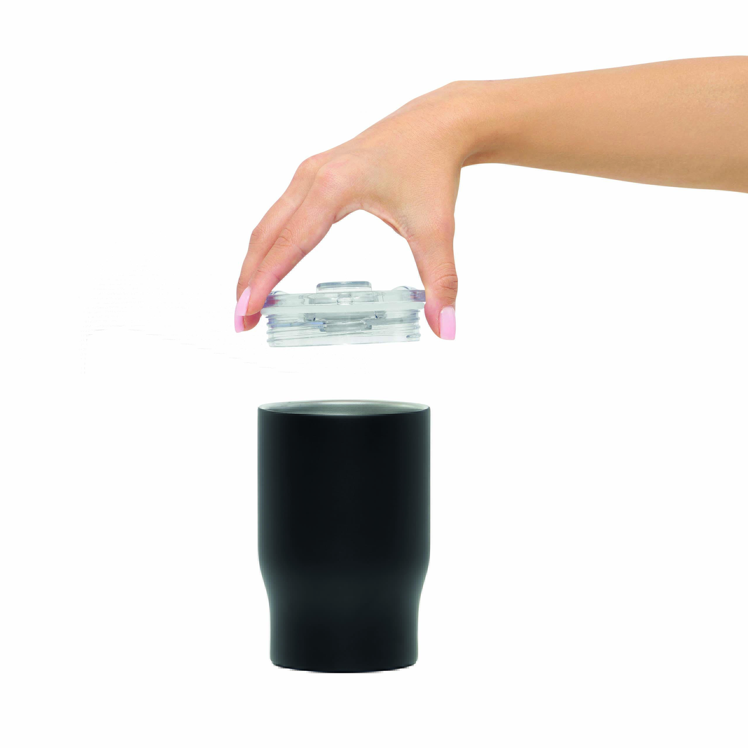 Kubek termiczny BEST FLAVOUR z podwójną ścianką. Wewnątrz i na zewnątrz ze stali nierdzewnej. Przezroczysta, zabezpieczająca, przykręcana plastikowa pokrywka ze zintegrowanym otworem do picia, pojemność ok. 350 ml.