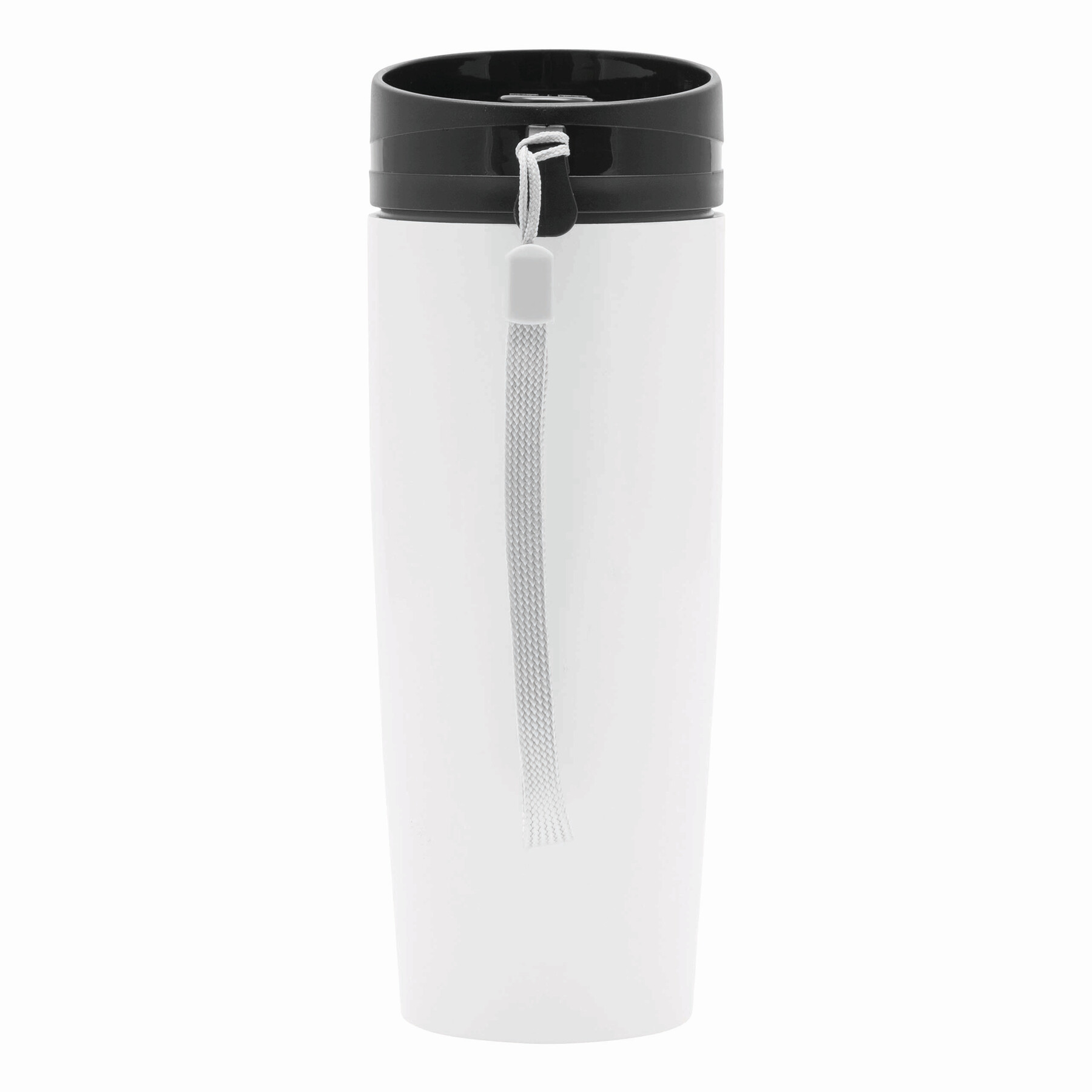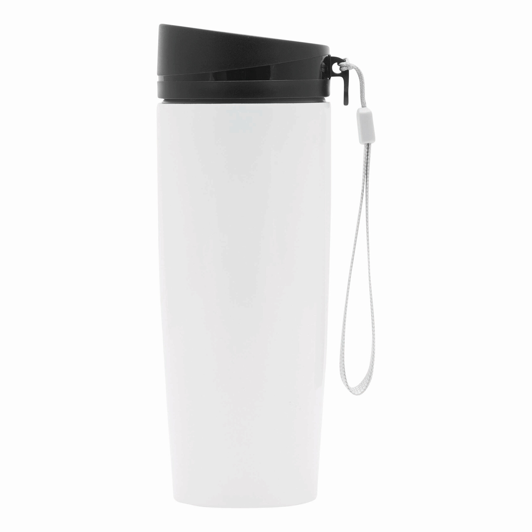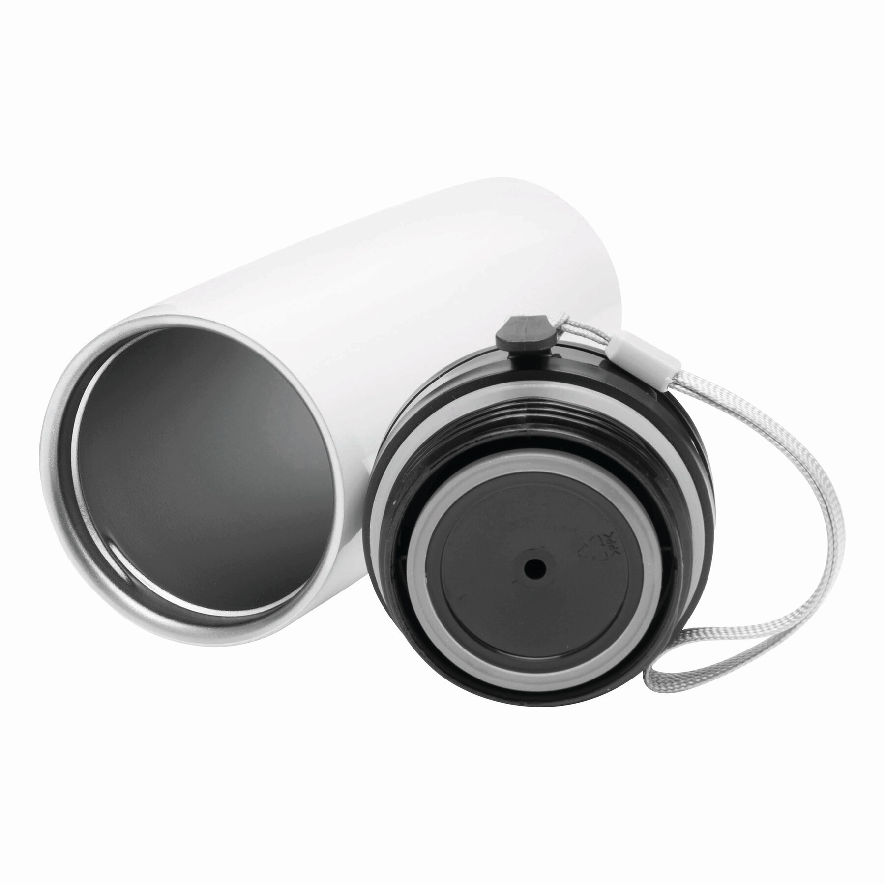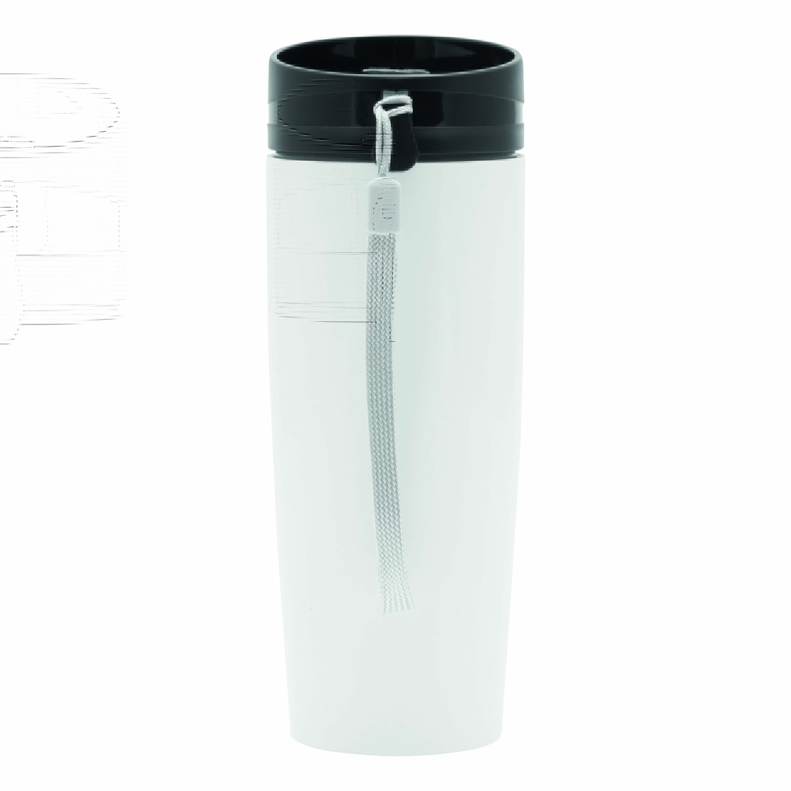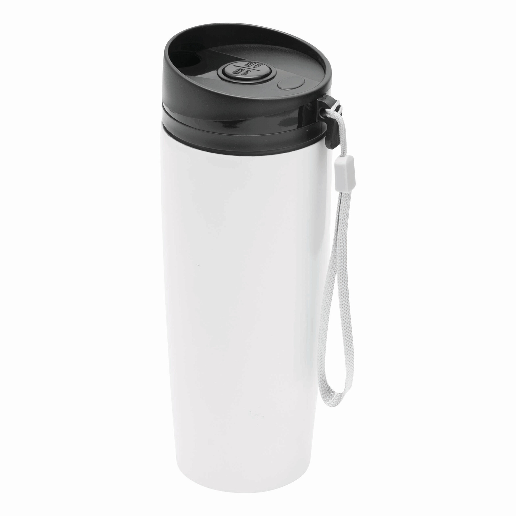 Kubek termiczny o podwójnych ściankach EARLY MORNING wewnątrz i na zewnątrz stal nierdzewna, plastikowe odkręcane wieczko z bezpieczną zakrętką, przyciskiem OPEN/CLOSE i otworem do picia, pojemność ok. 380 ml, z haczykiem do zawieszenia.