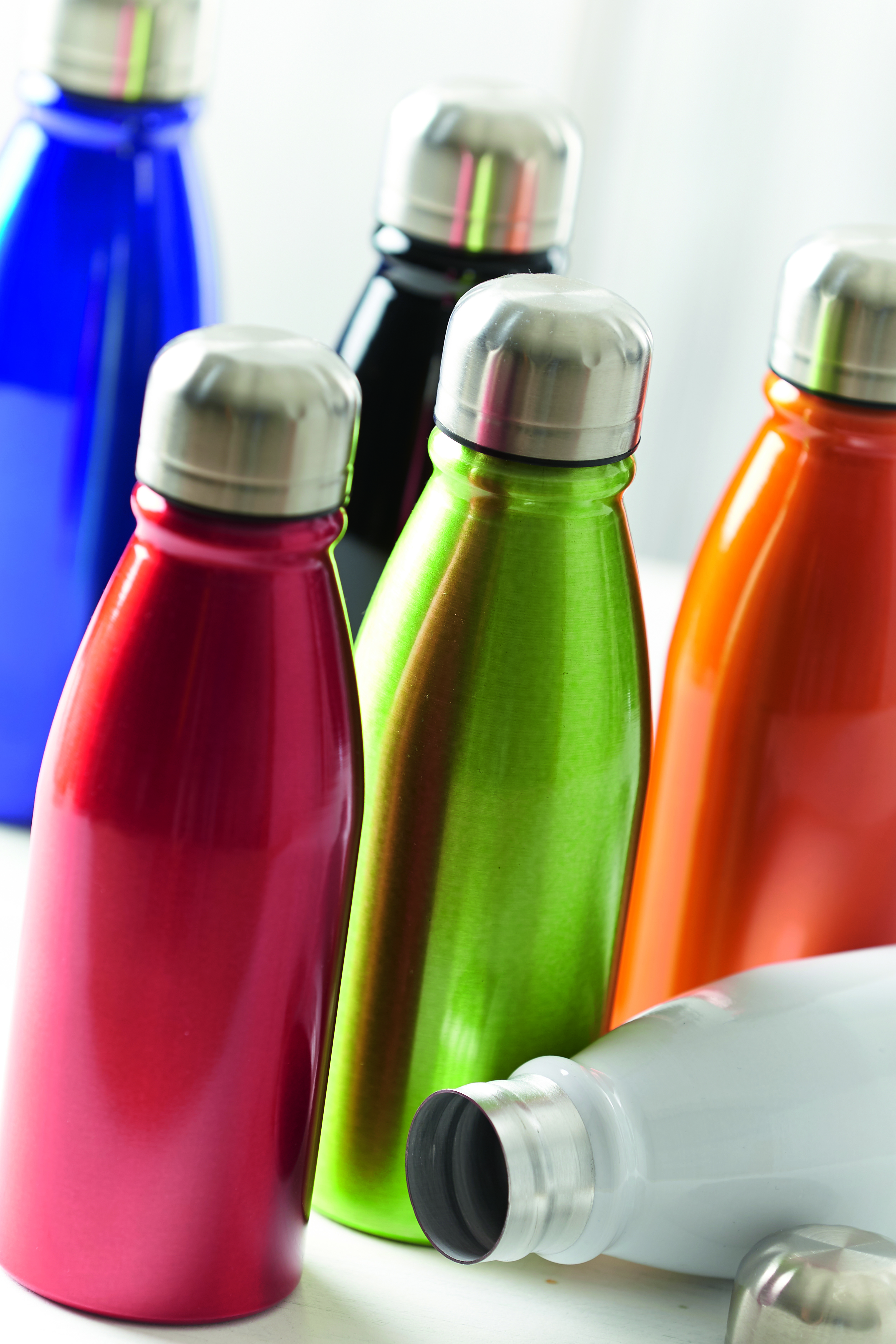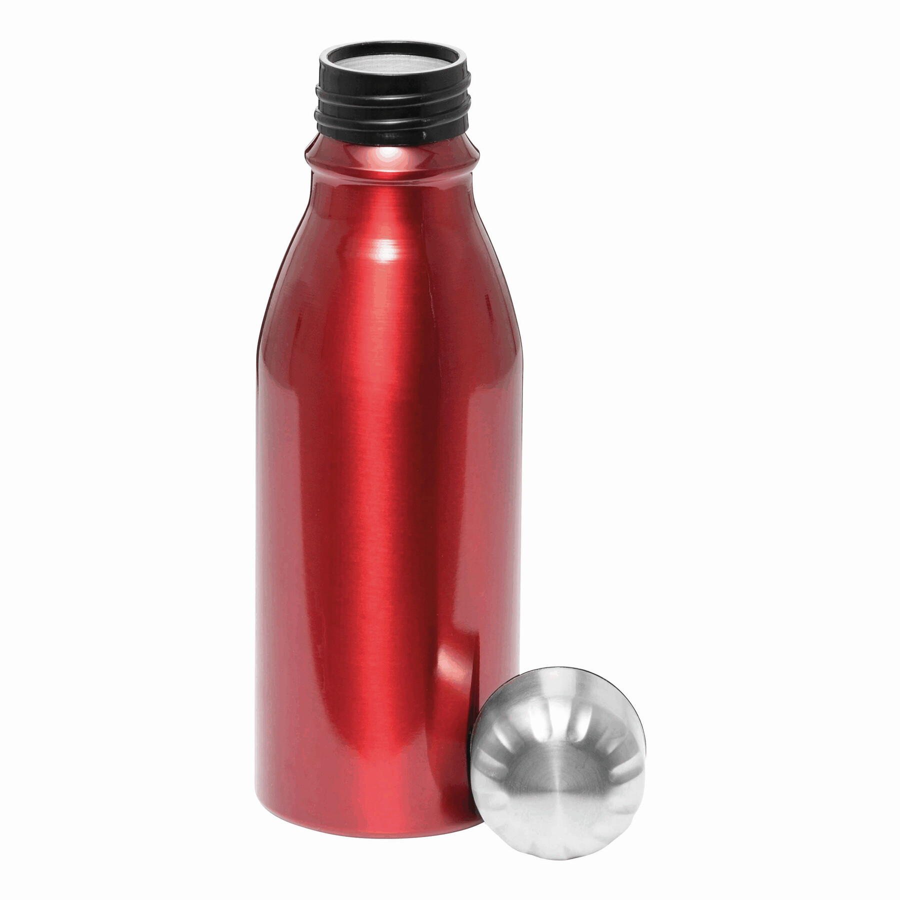 Aluminiowa butelka do picia FANCY, ze srebrną, bezpieczną zakrętką, pojemność ok. 500 ml.
