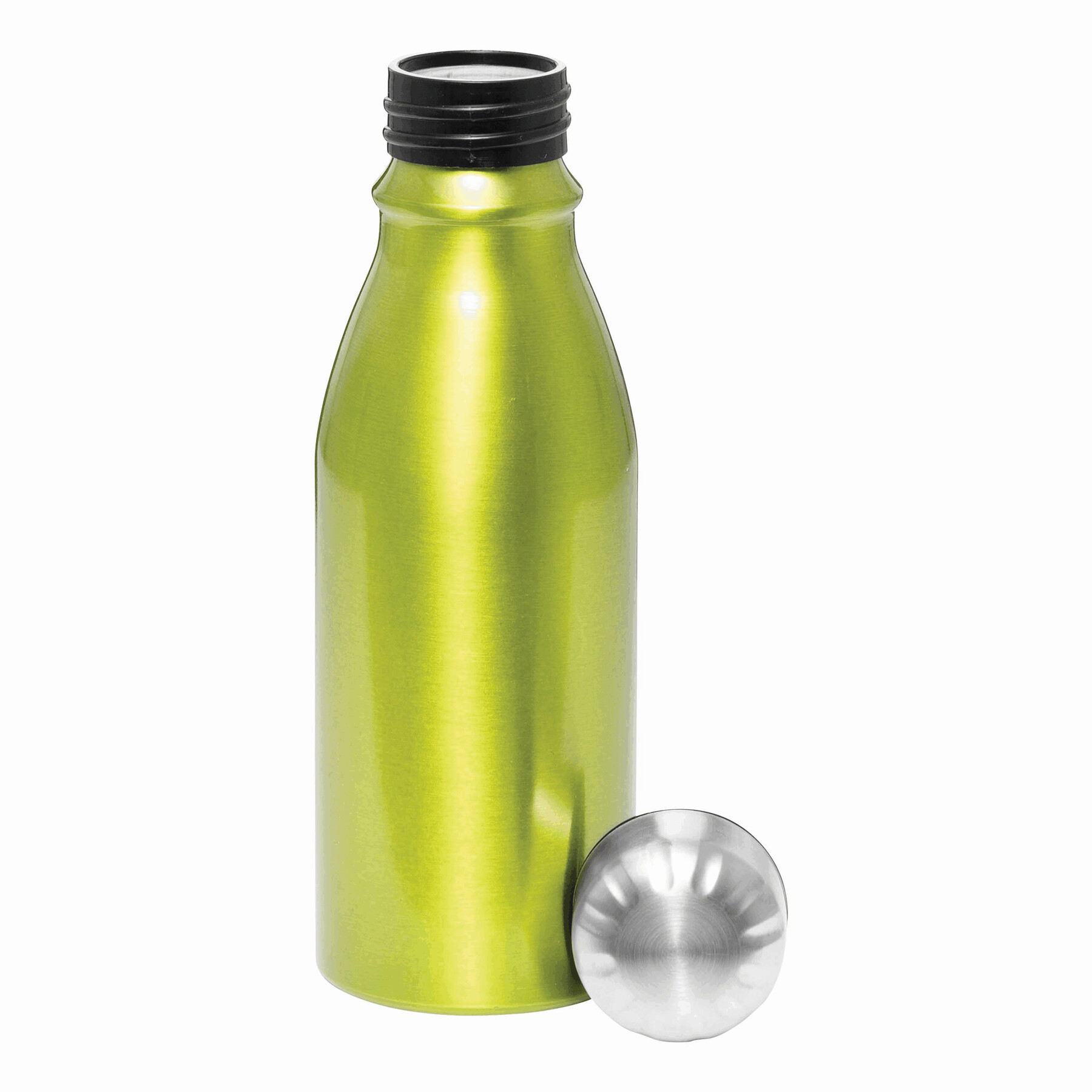 Aluminiowa butelka do picia FANCY, ze srebrną, bezpieczną zakrętką, pojemność ok. 500 ml.