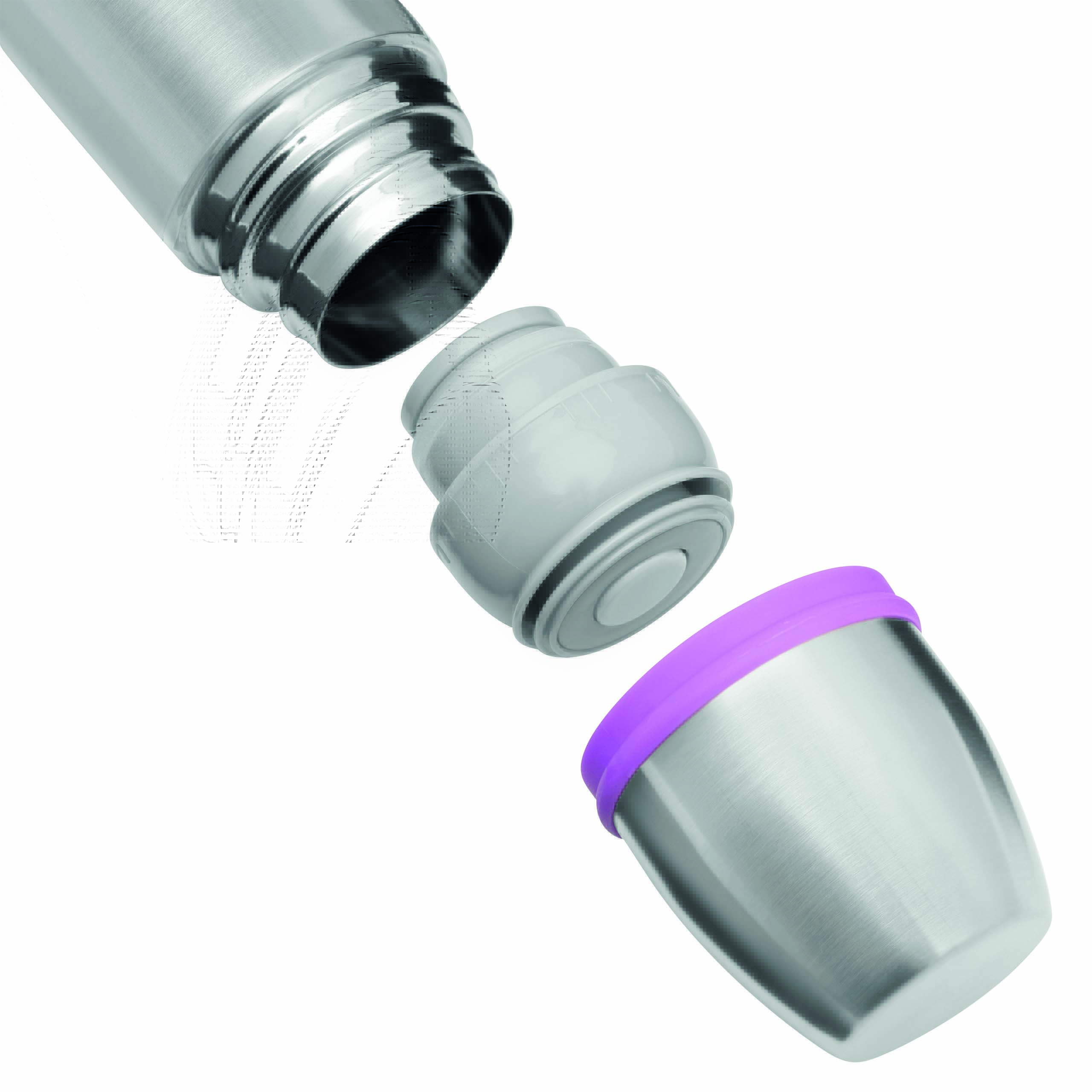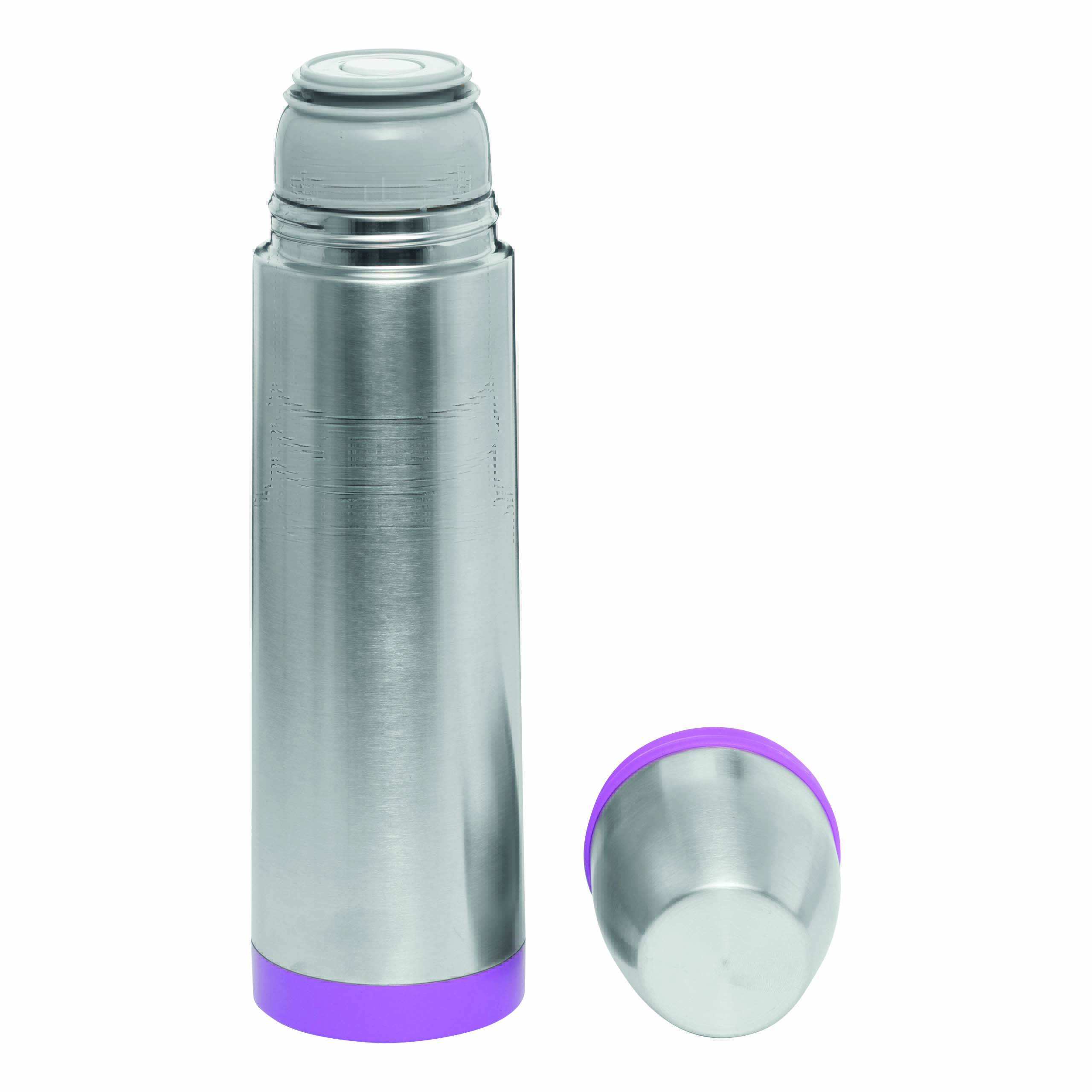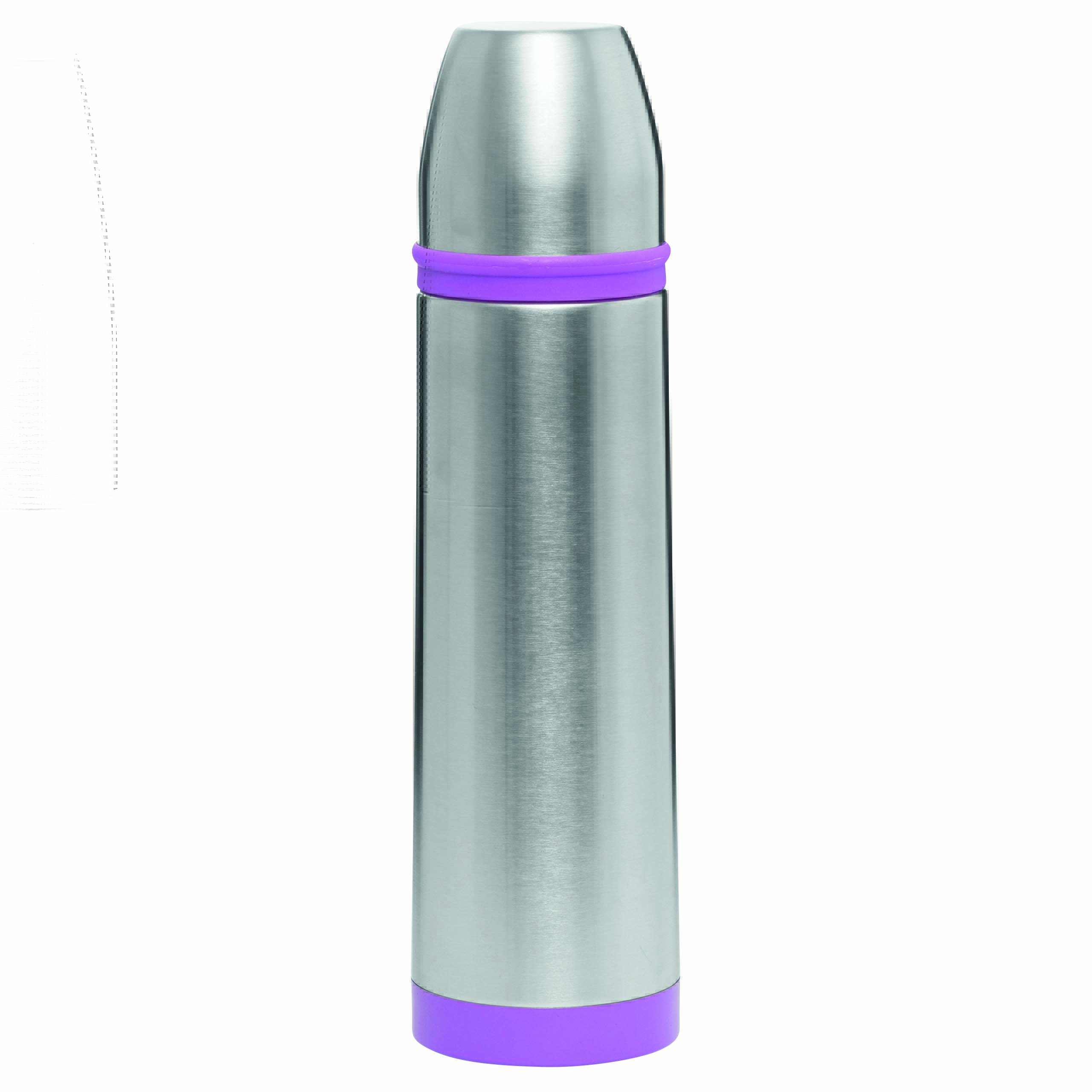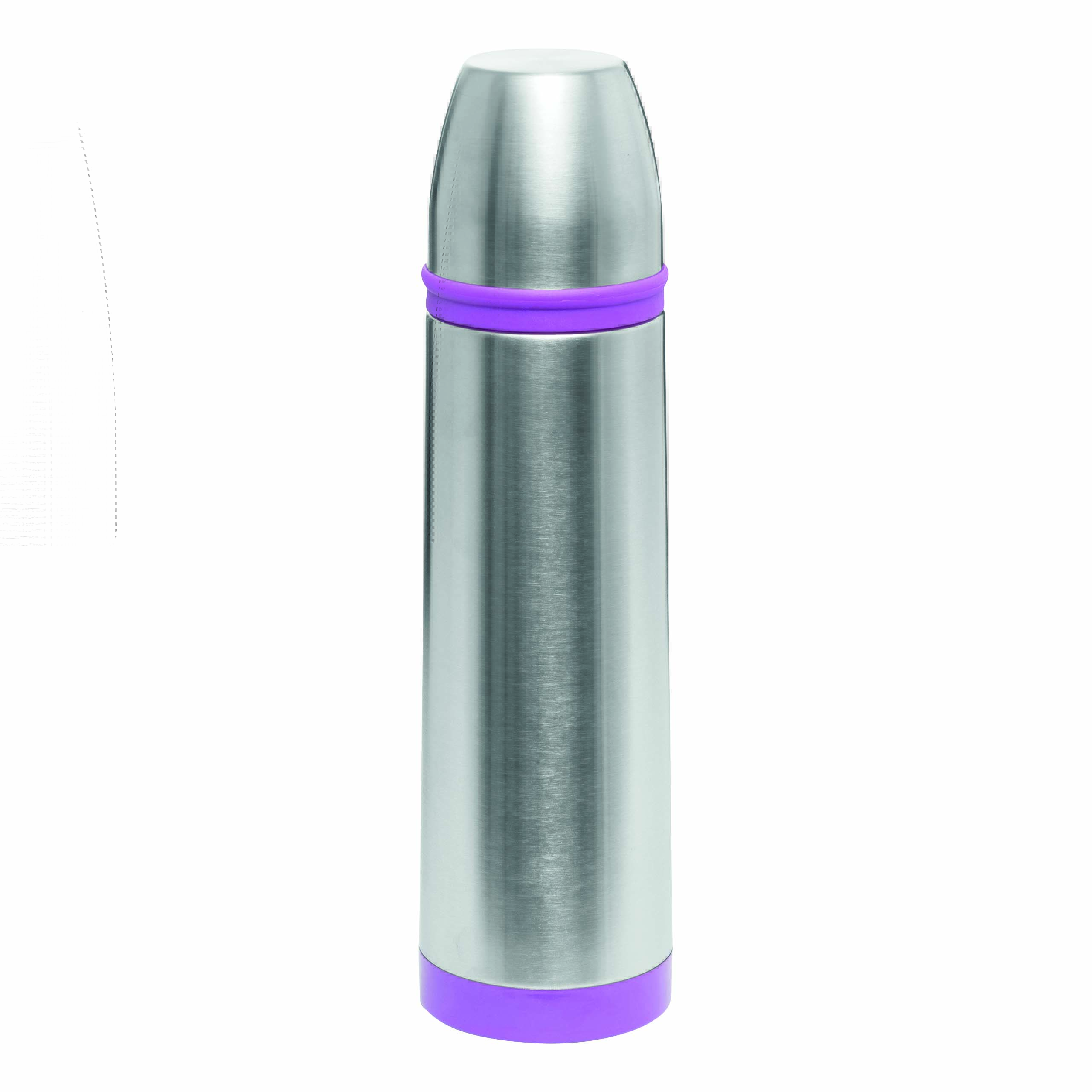 Termos ze stali nierdzewnej KEEP WARM. Plastikowe, zakręcane wieczko, dozownik zamykany na zatrzask, uchwyt w kolorze wieczka, poj. ok 500 ml, pakowany w pudełko.