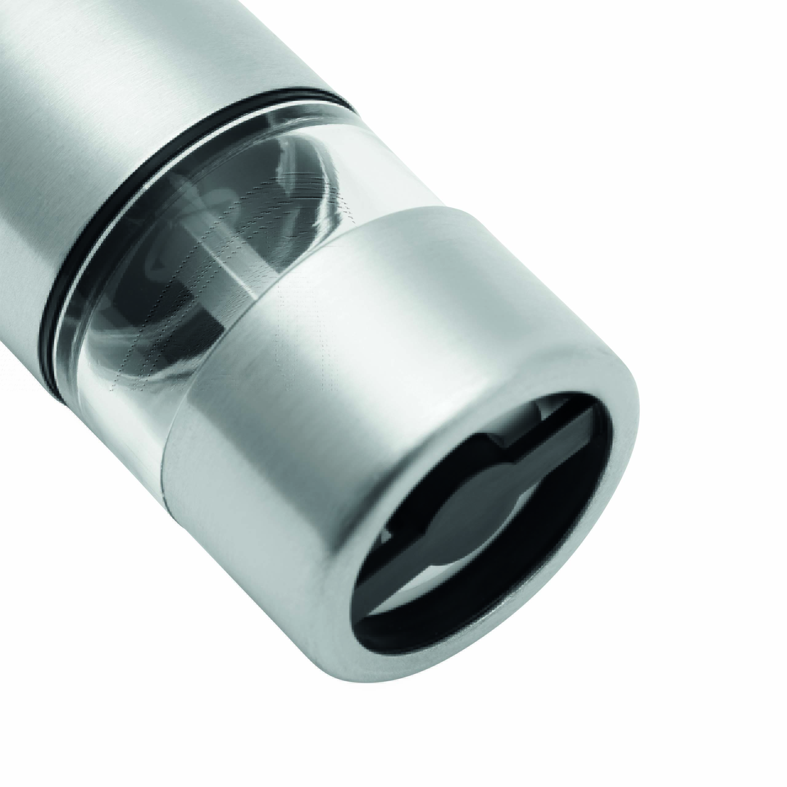 Zestaw do soli i pieprzu SPICE FLAVOR ze stali nierdzewnej, z transparentnym okienkiem, posiada ceramiczny młynek i mechanizm obrotowy, pakowany w transparentne pudełko.