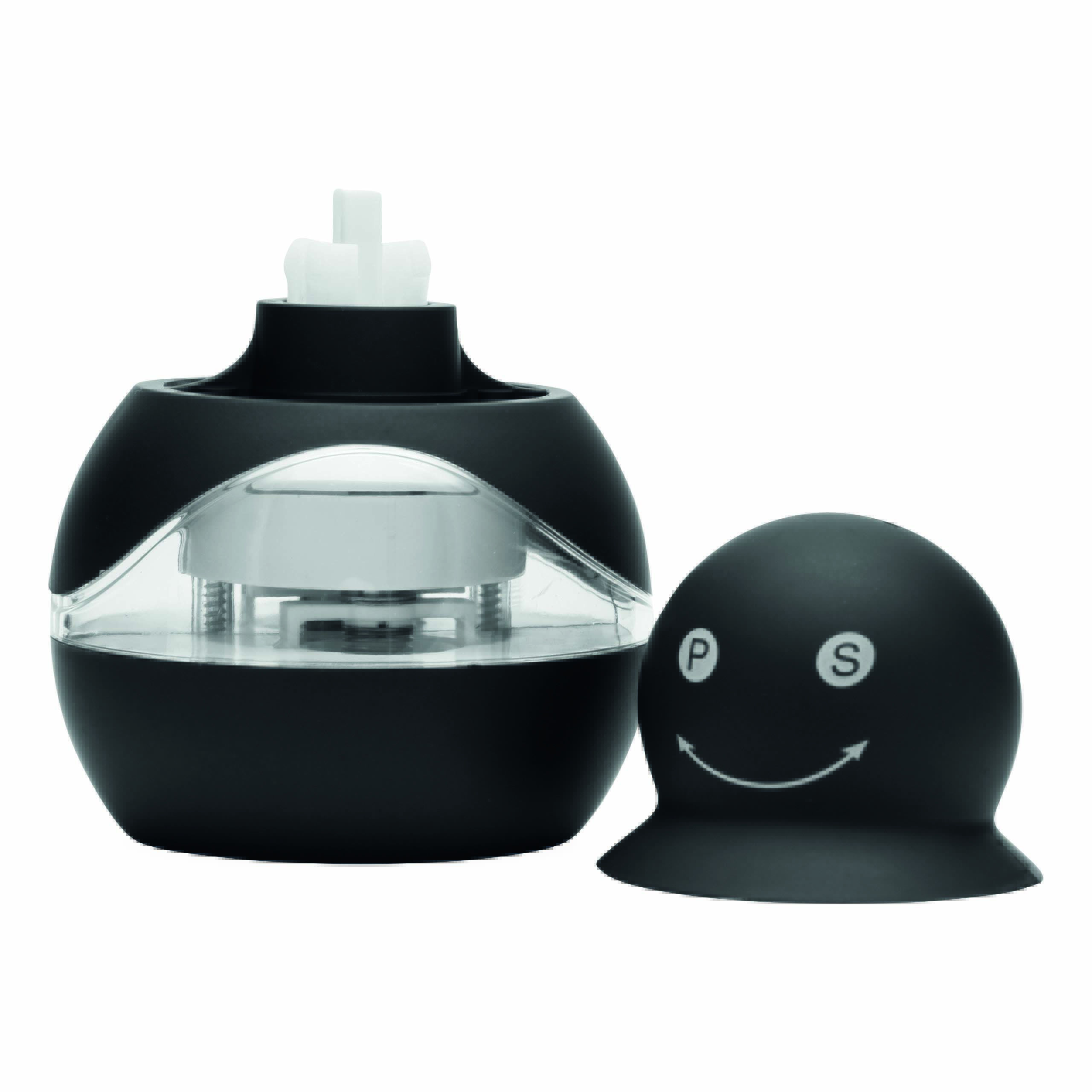 Młynek do soli i pieprzu INNOVATION, gumowana powierzchnia, przezroczyste okienka, mechanizm obrotowy pozwalający zmielić z jednej strony pieprz, a z drugiej sól.
