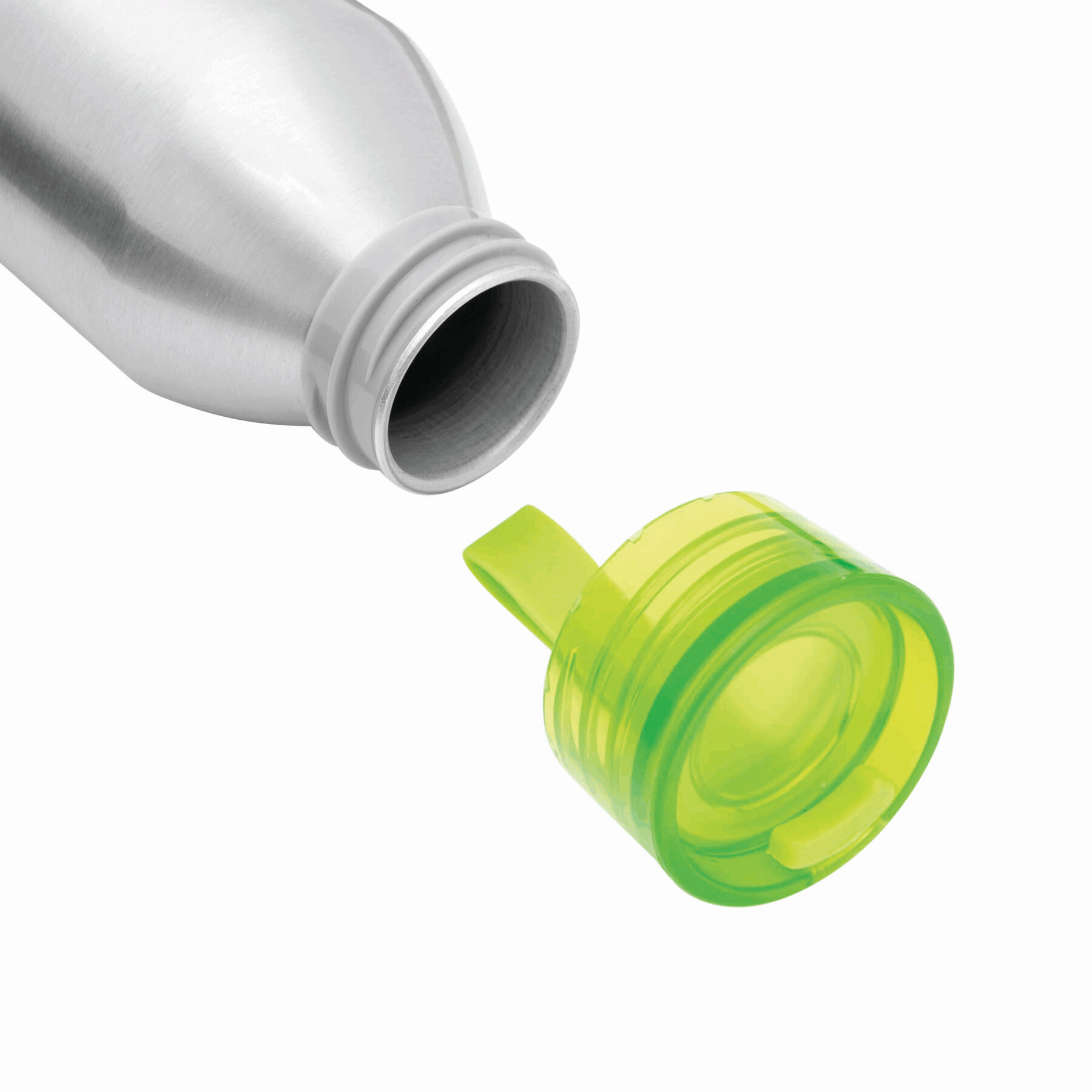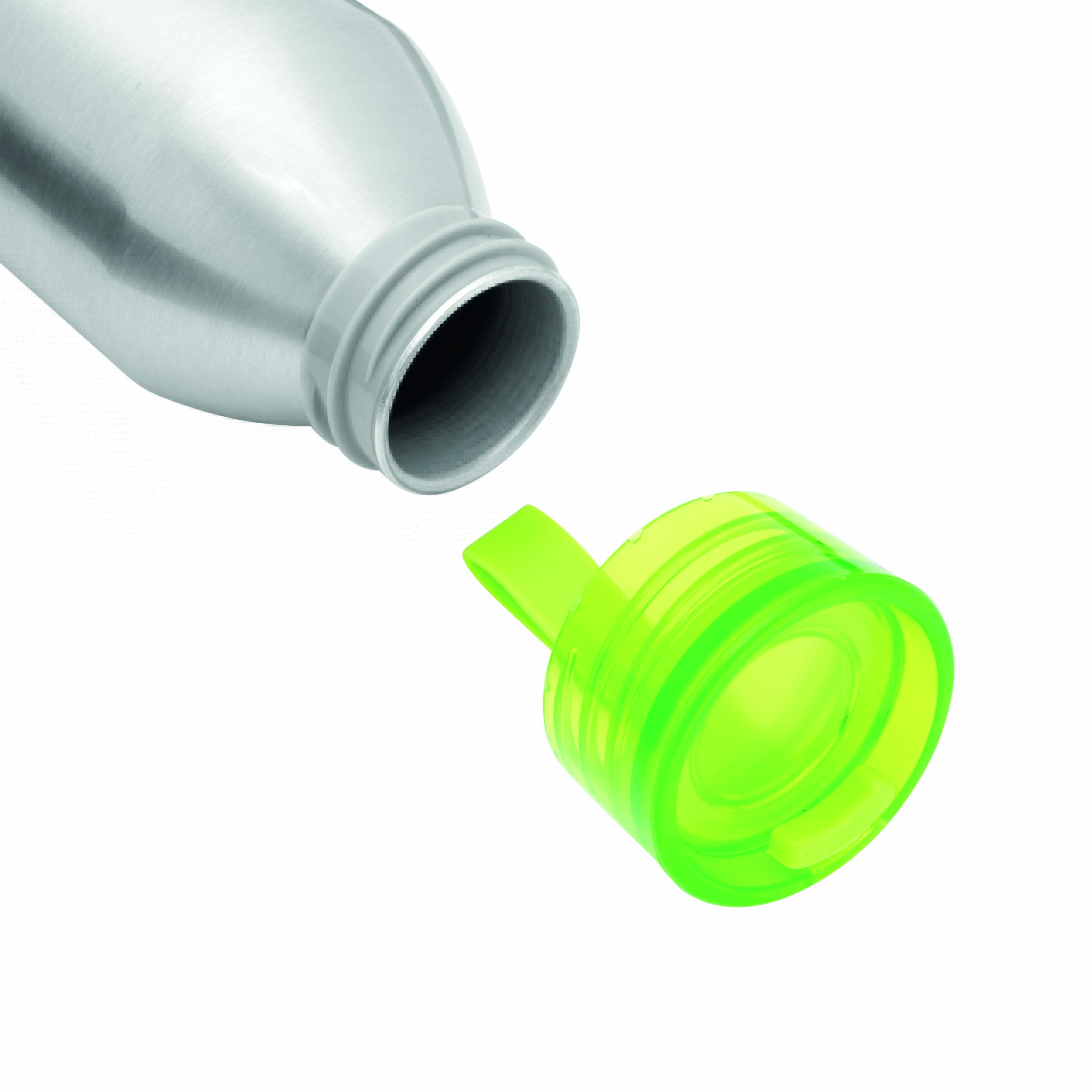 Aluminiowa butelka COLOURED z kolorową plastikową zakrętką i silikonowym paskiem do przenoszenia, pojemność ok. 650 ml.