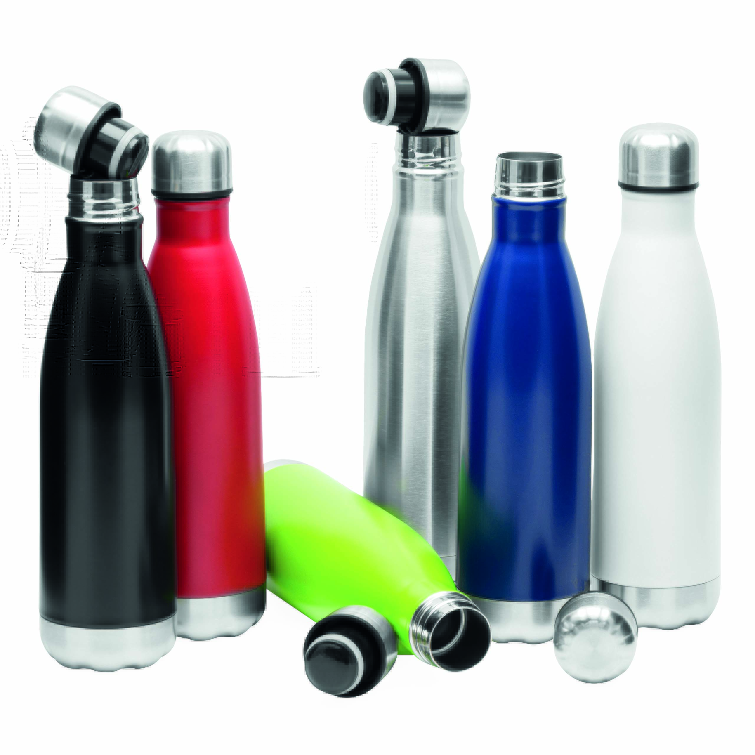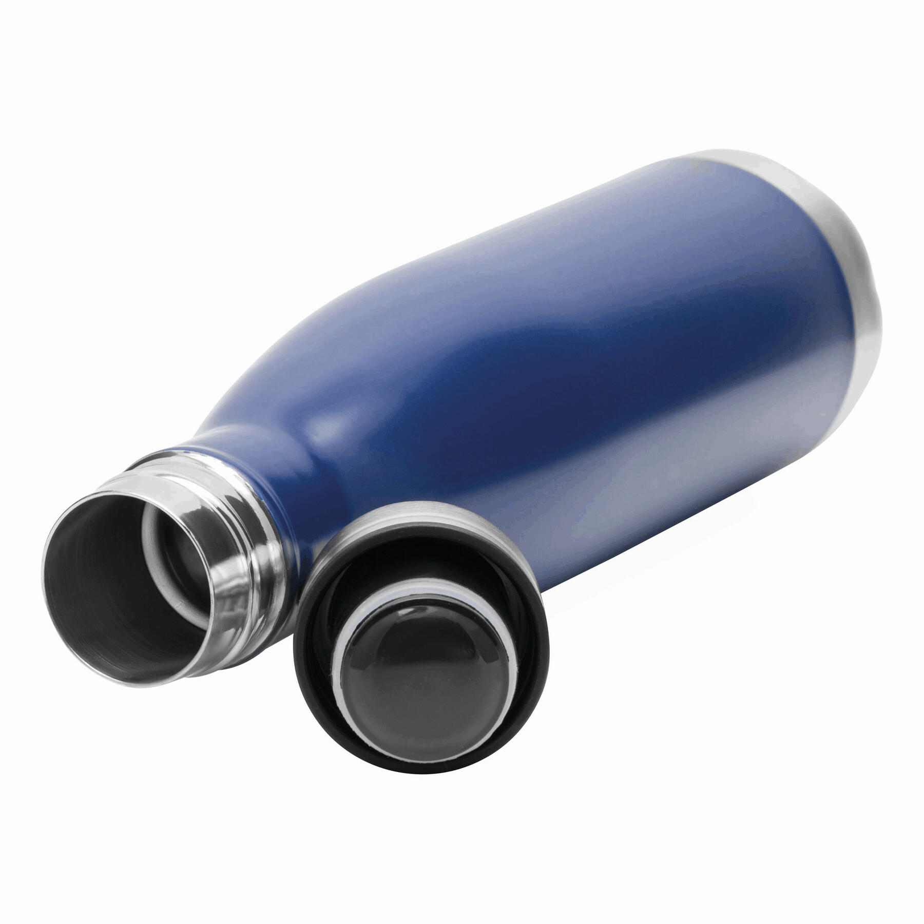 Butelka próżniowa o podwójnych ściankach GOLDEN TASTE. Wewnątrz i na zewnątrz ze stali nierdzewnej, z bezpieczną zakrętką, o pojemności ok. 500 ml.