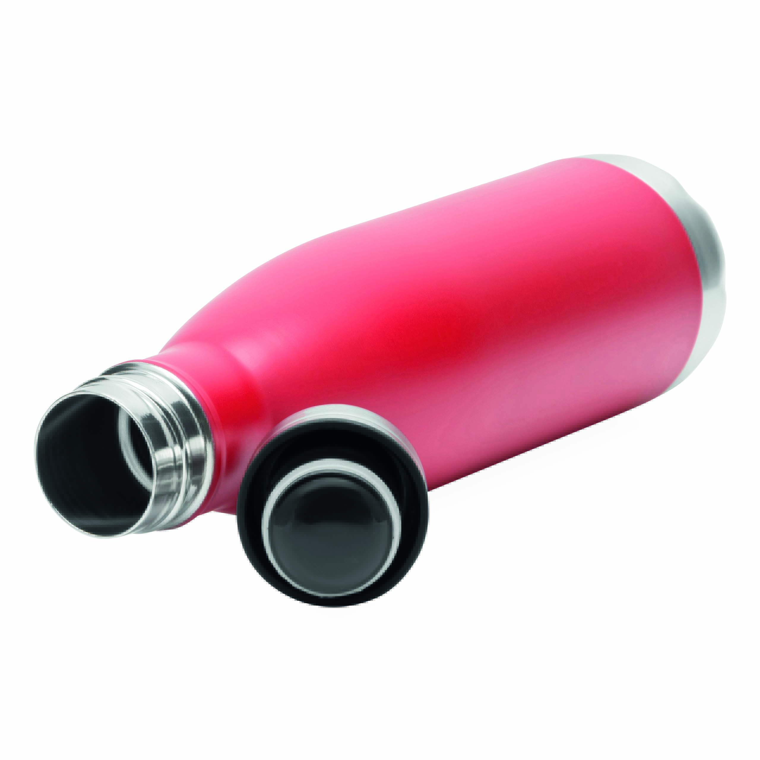Butelka próżniowa o podwójnych ściankach GOLDEN TASTE. Wewnątrz i na zewnątrz ze stali nierdzewnej, z bezpieczną zakrętką, o pojemności ok. 500 ml.