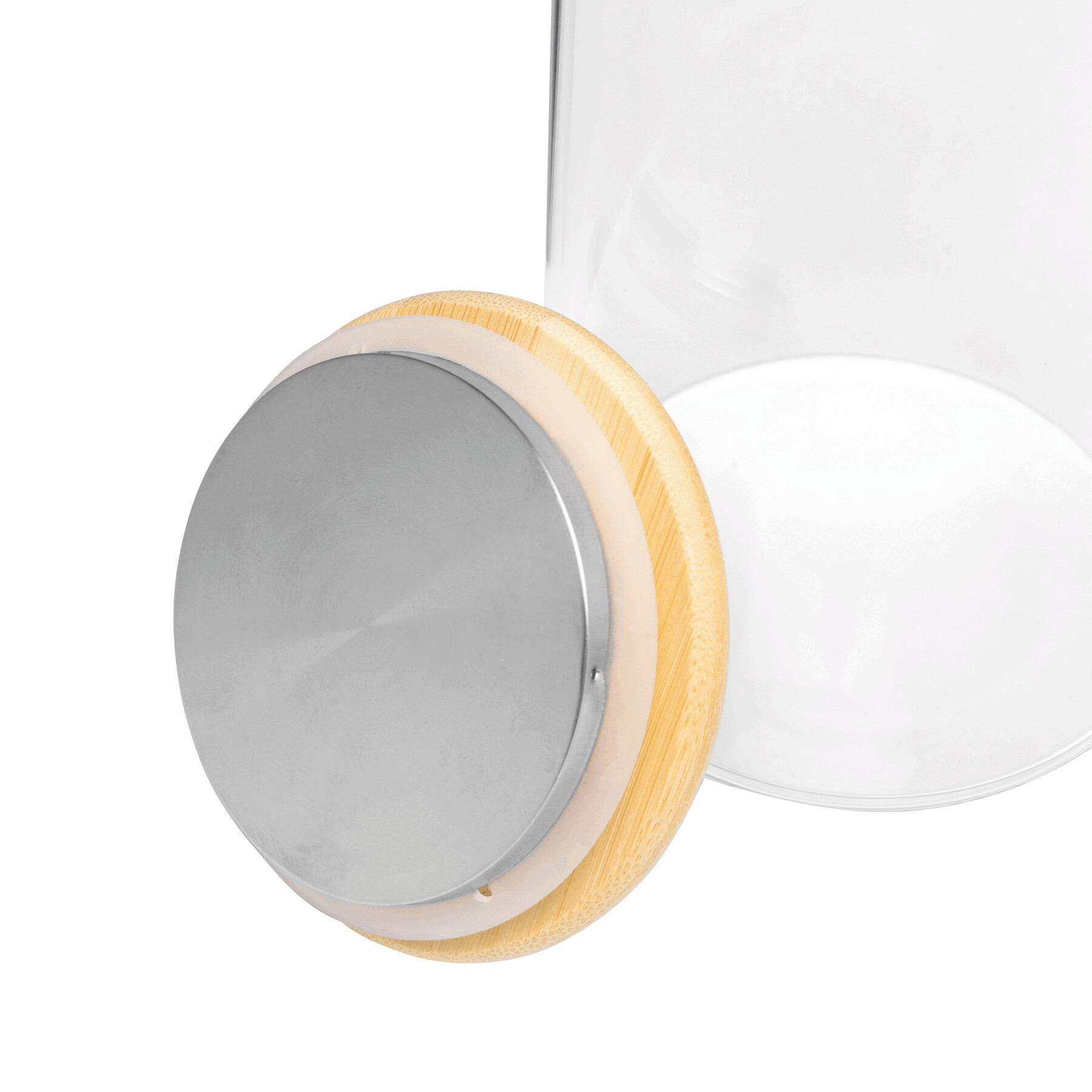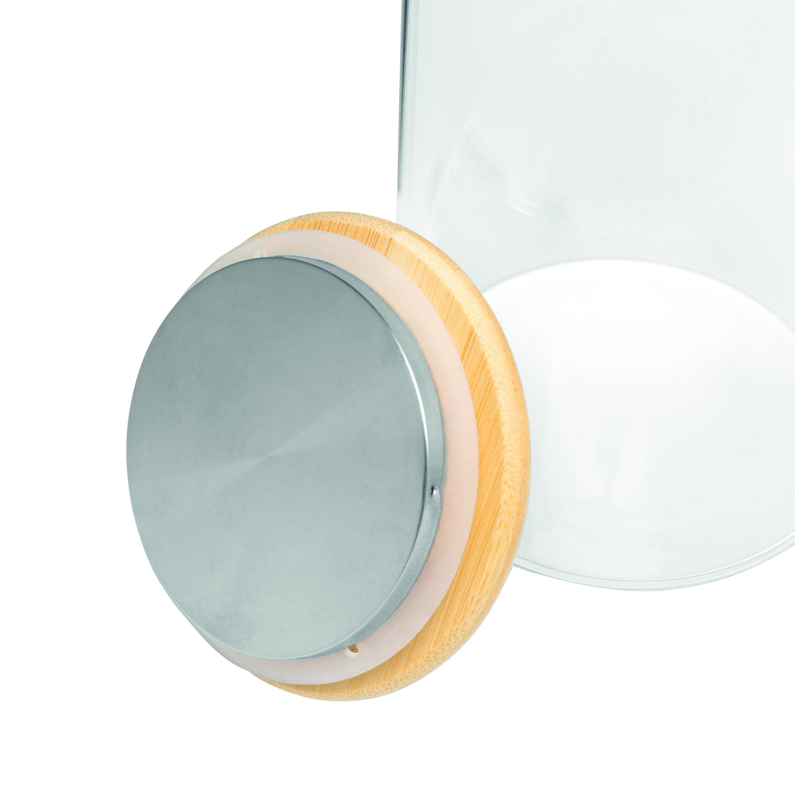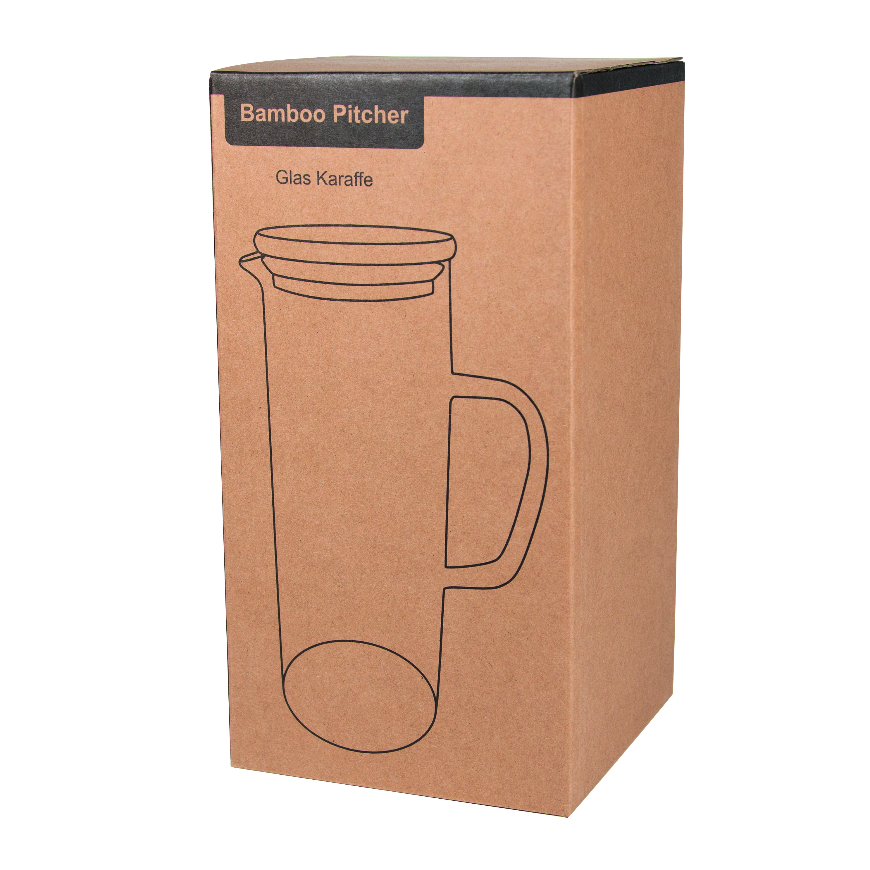 Szklany dzbanek BAMBOO PITCHER: z uchwytem i bambusową pokrywką z silikonowym pierścieniem uszczelniającym wyposażonym w element ochronny ze stali nierdzewnej, pojemność ok. 1200 ml