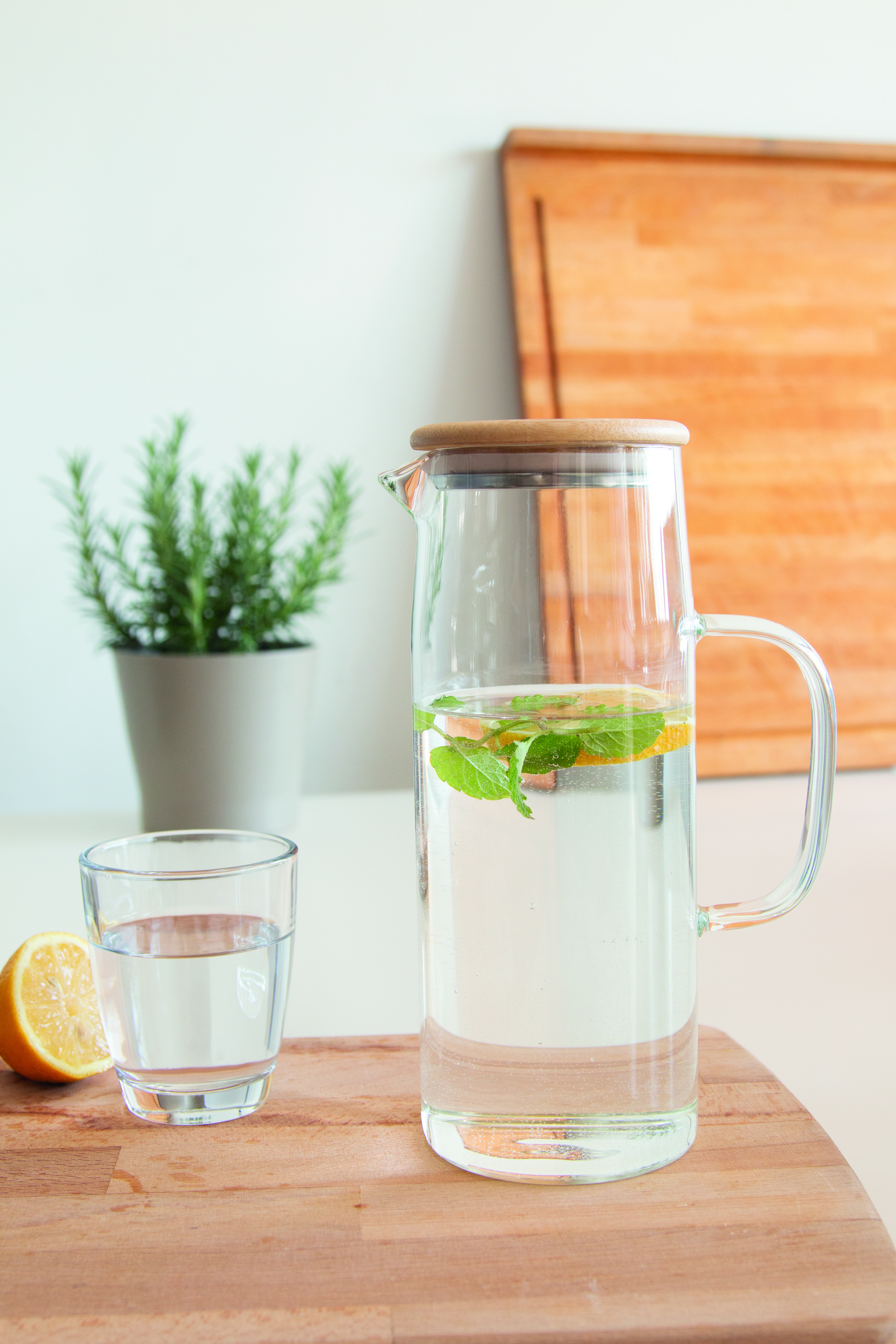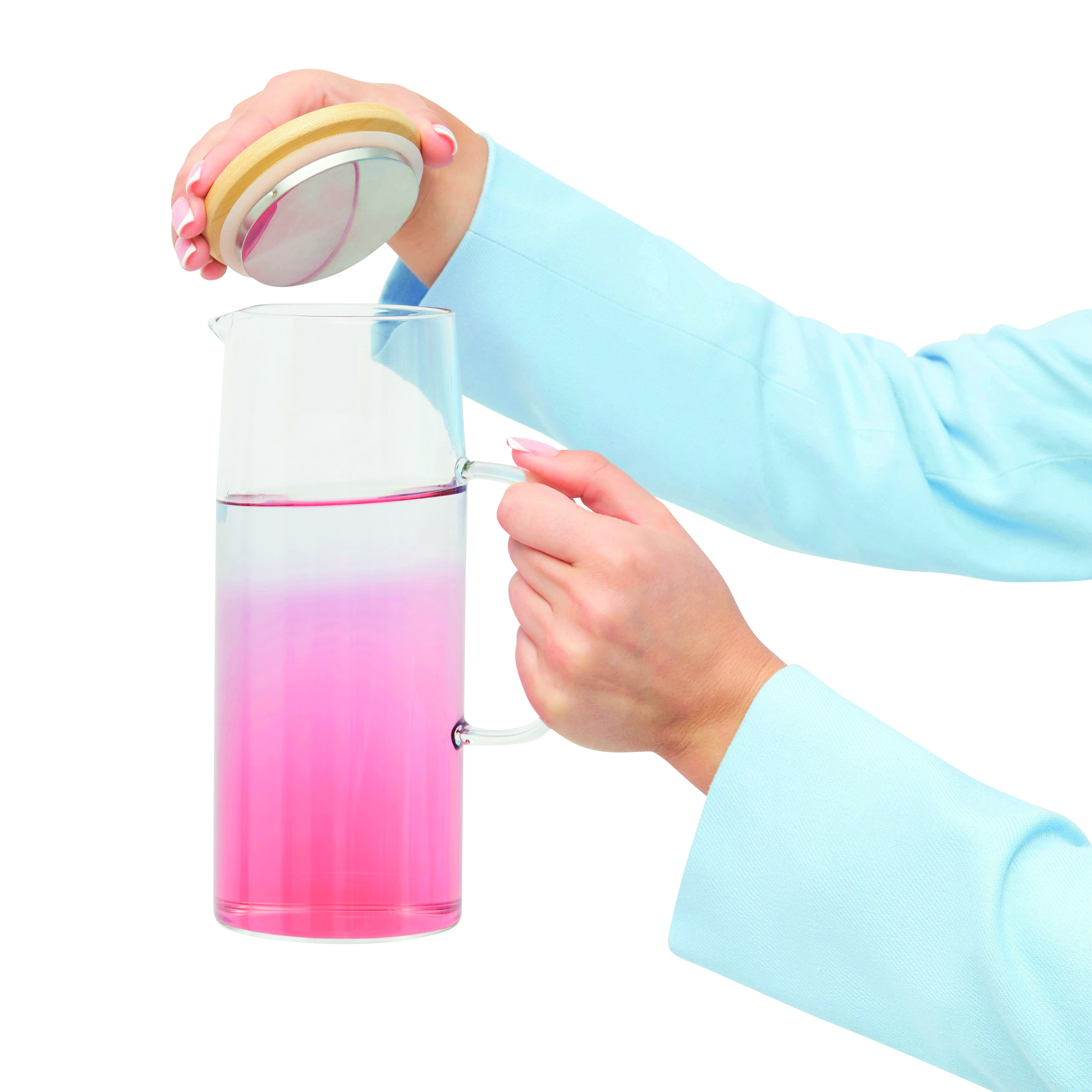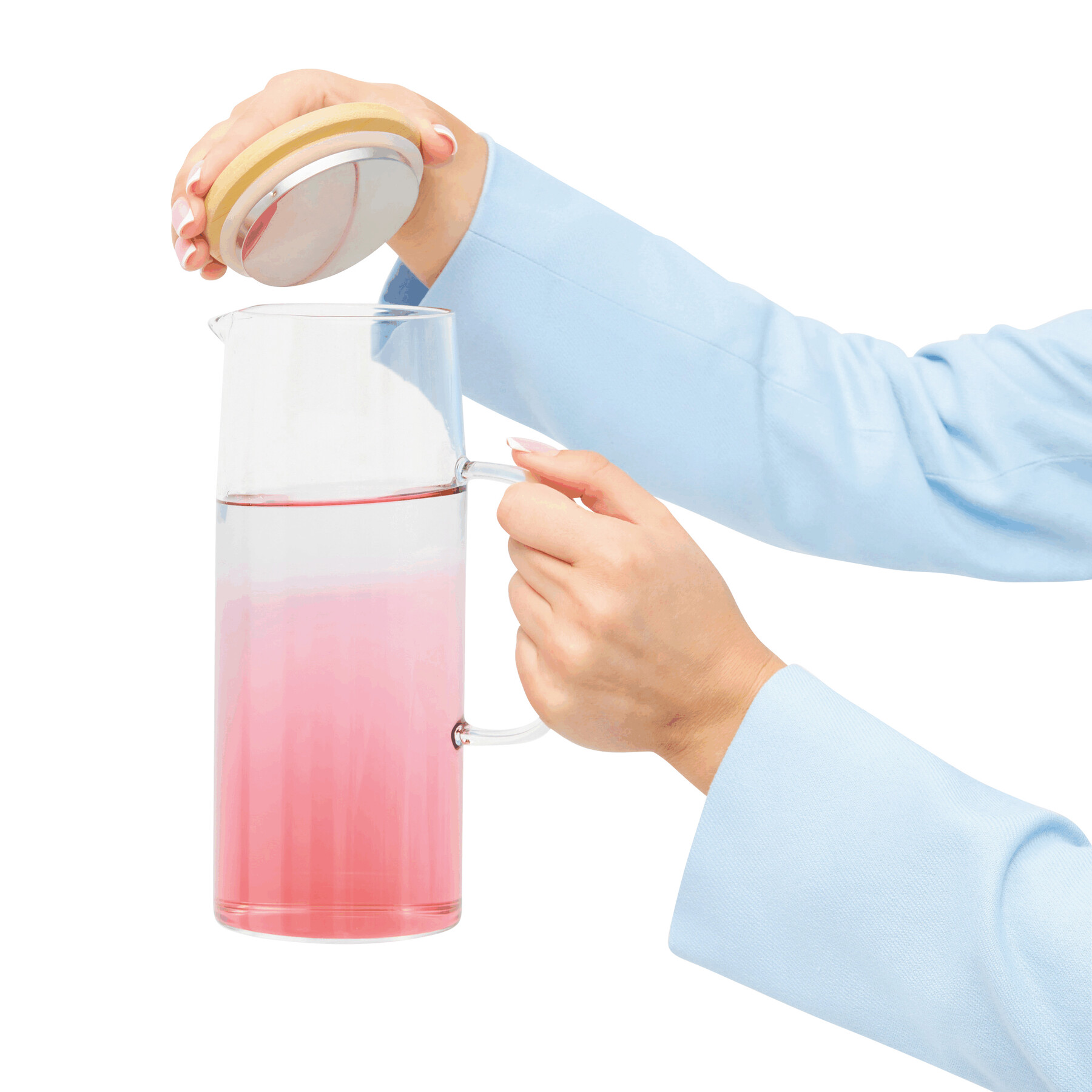 Szklany dzbanek BAMBOO PITCHER: z uchwytem i bambusową pokrywką z silikonowym pierścieniem uszczelniającym wyposażonym w element ochronny ze stali nierdzewnej, pojemność ok. 1200 ml