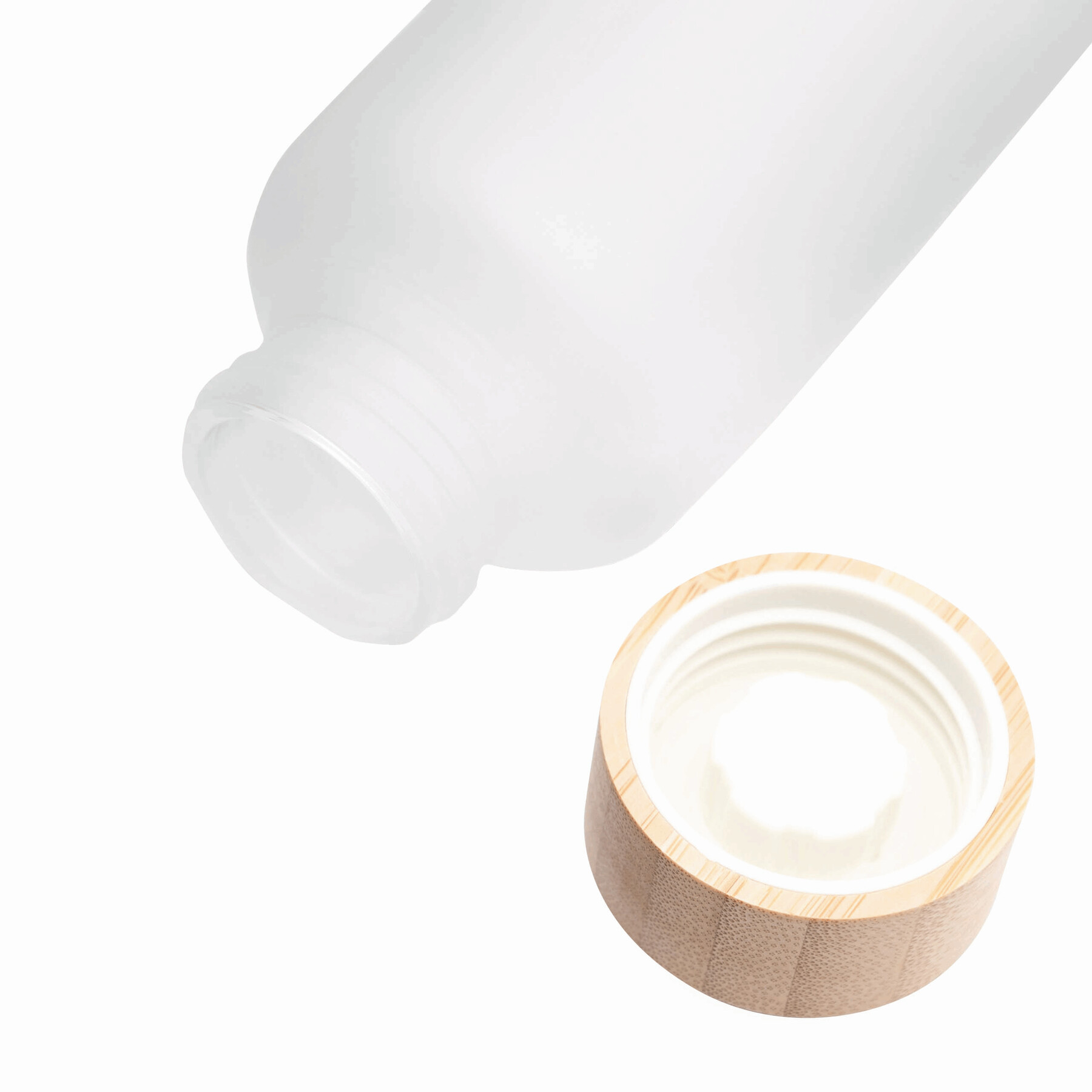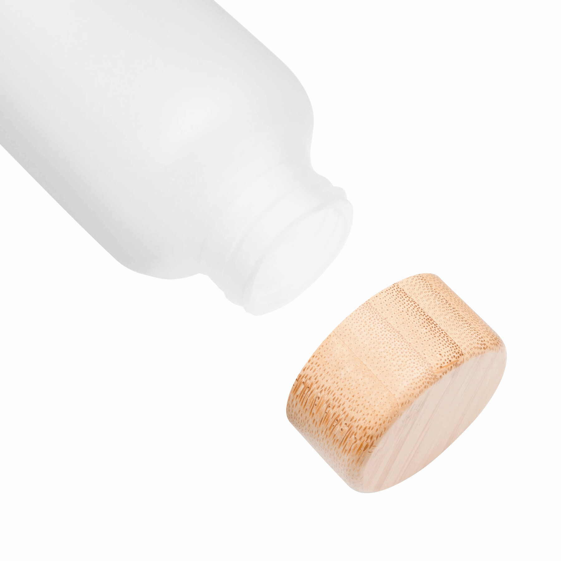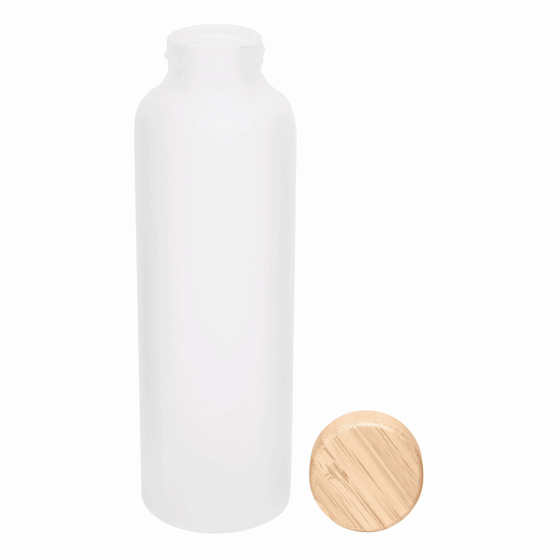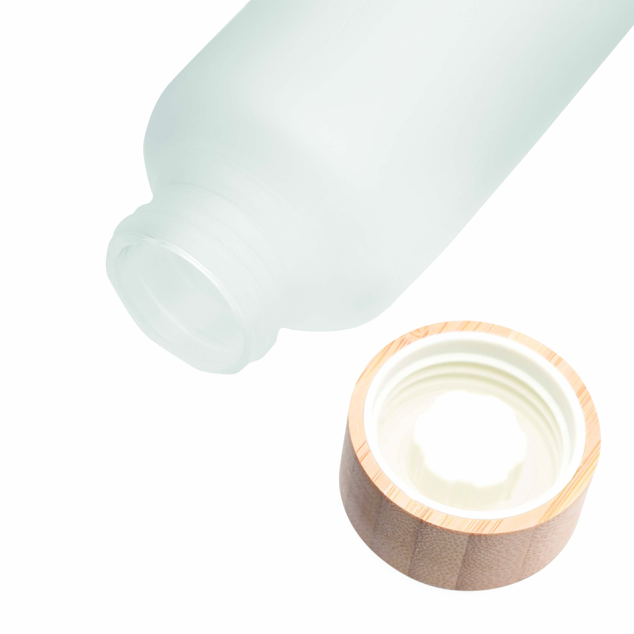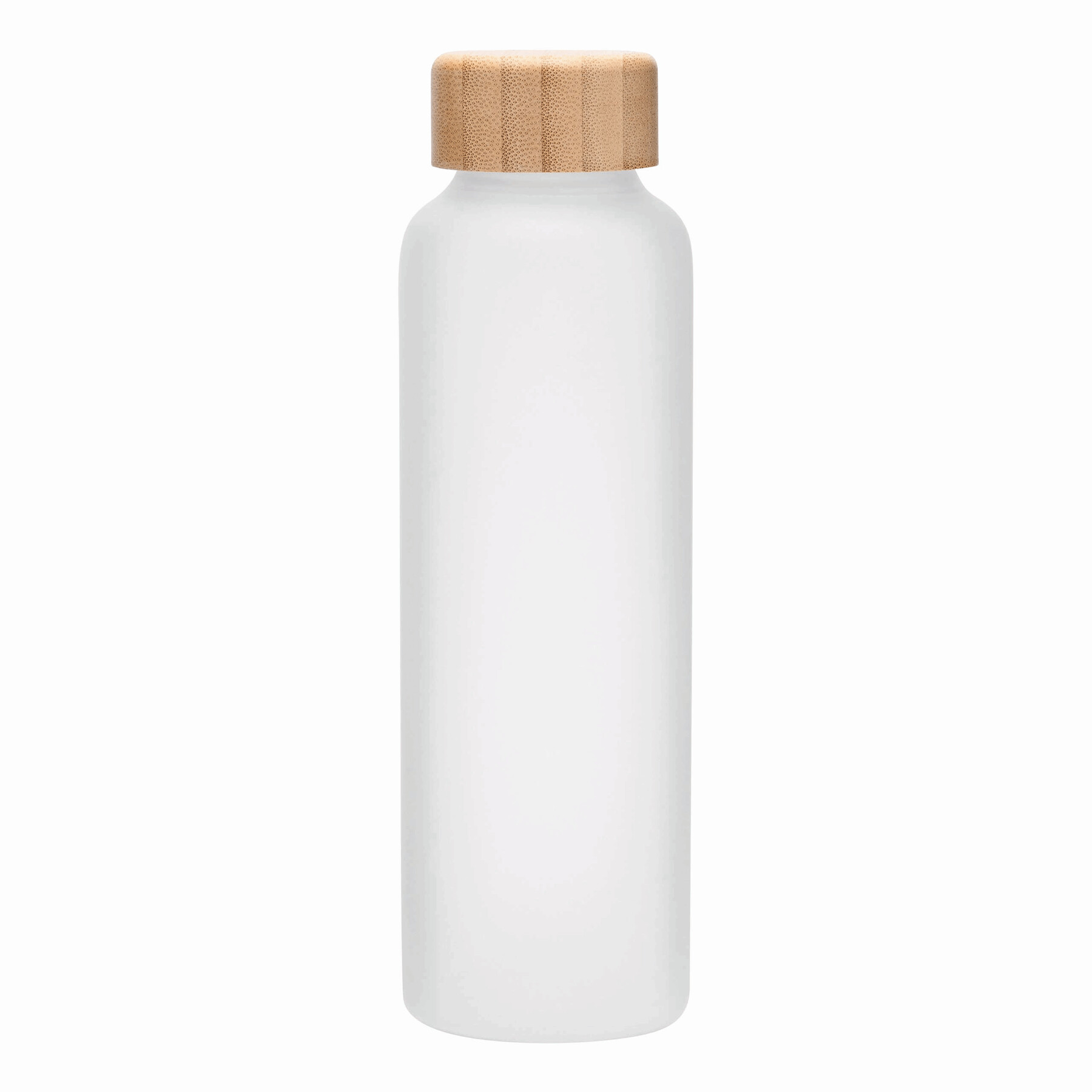 Szklana butelka TAKE FROSTY z bambusową zakrętką. Pojemność ok. 500 ml.