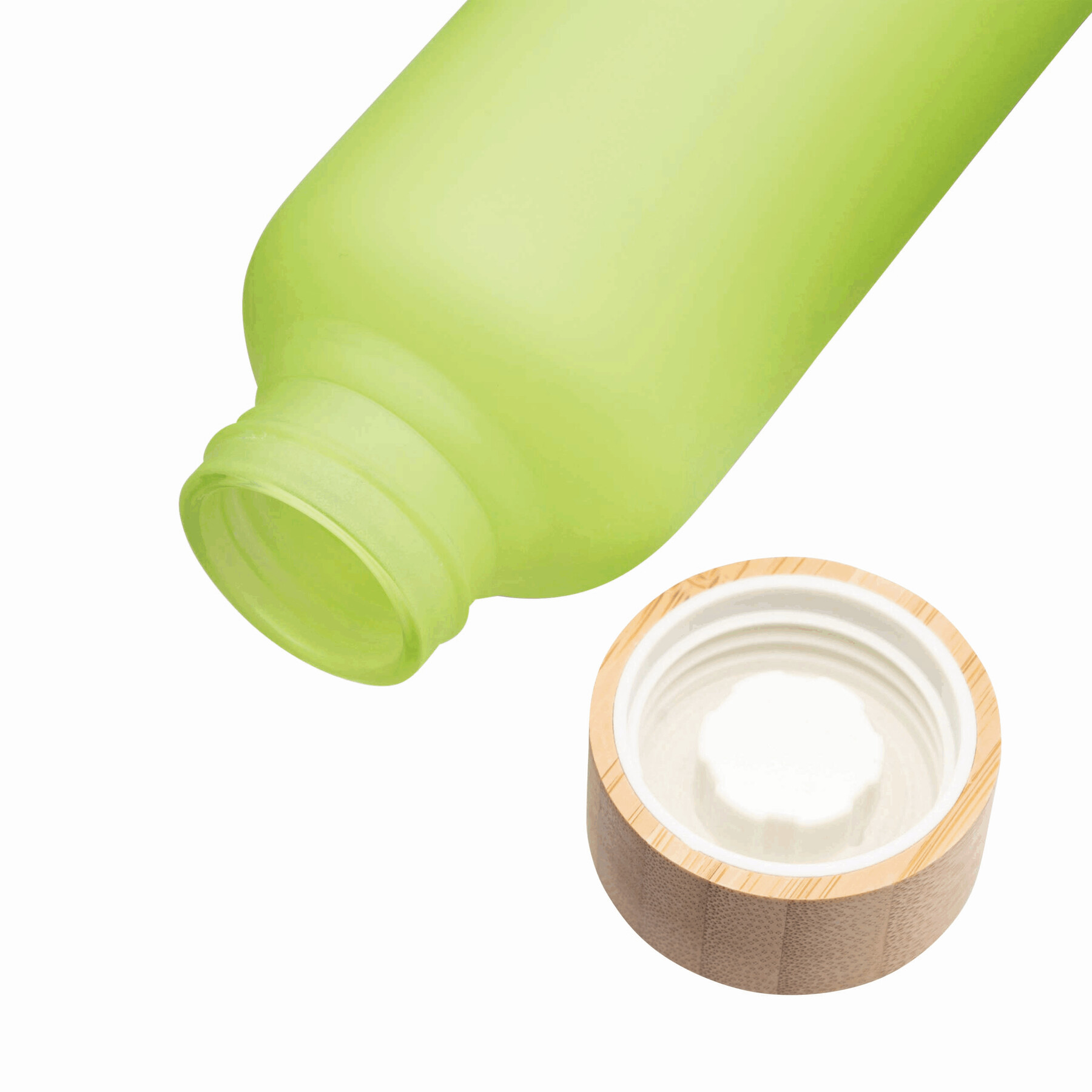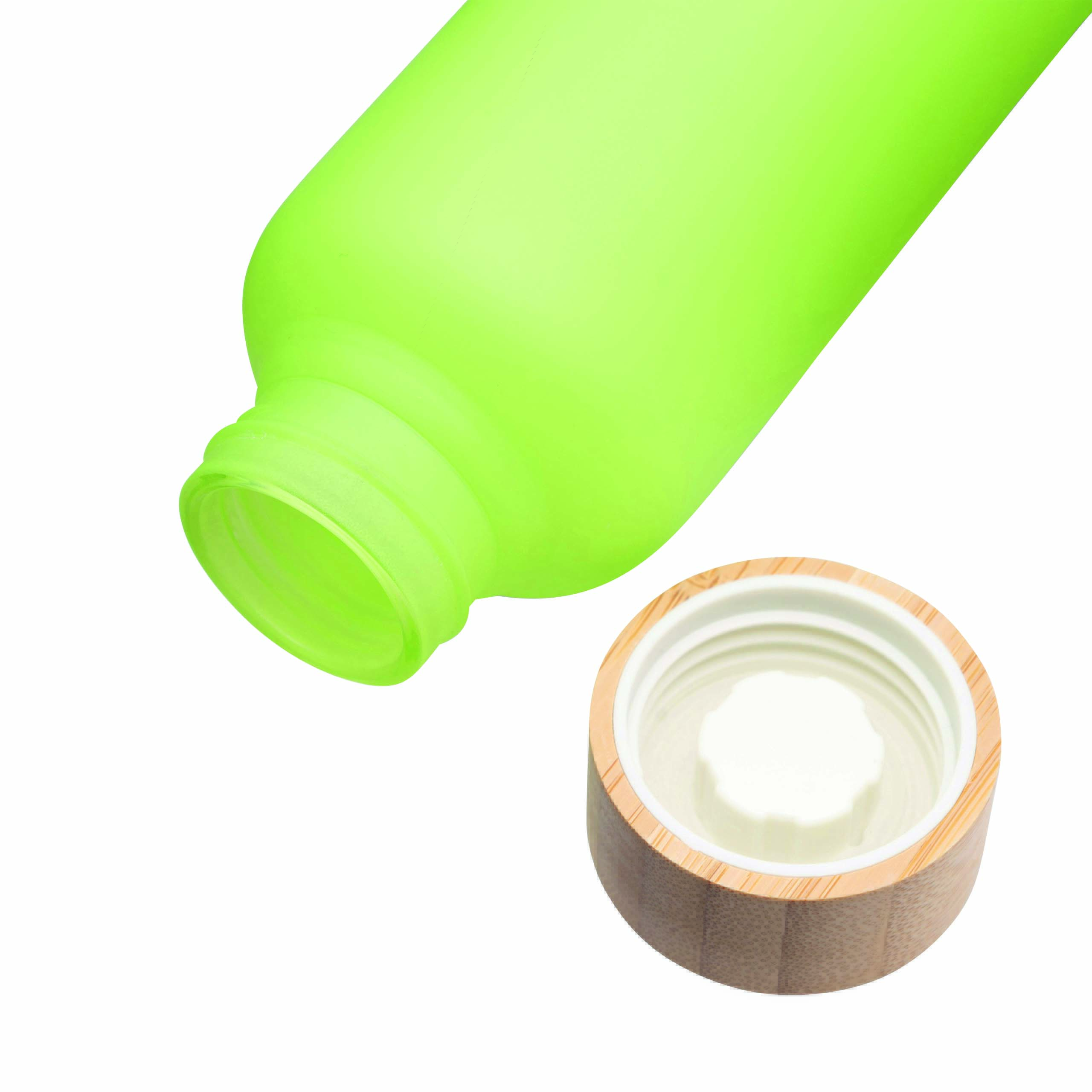 Szklana butelka TAKE FROSTY z bambusową zakrętką. Pojemność ok. 500 ml.