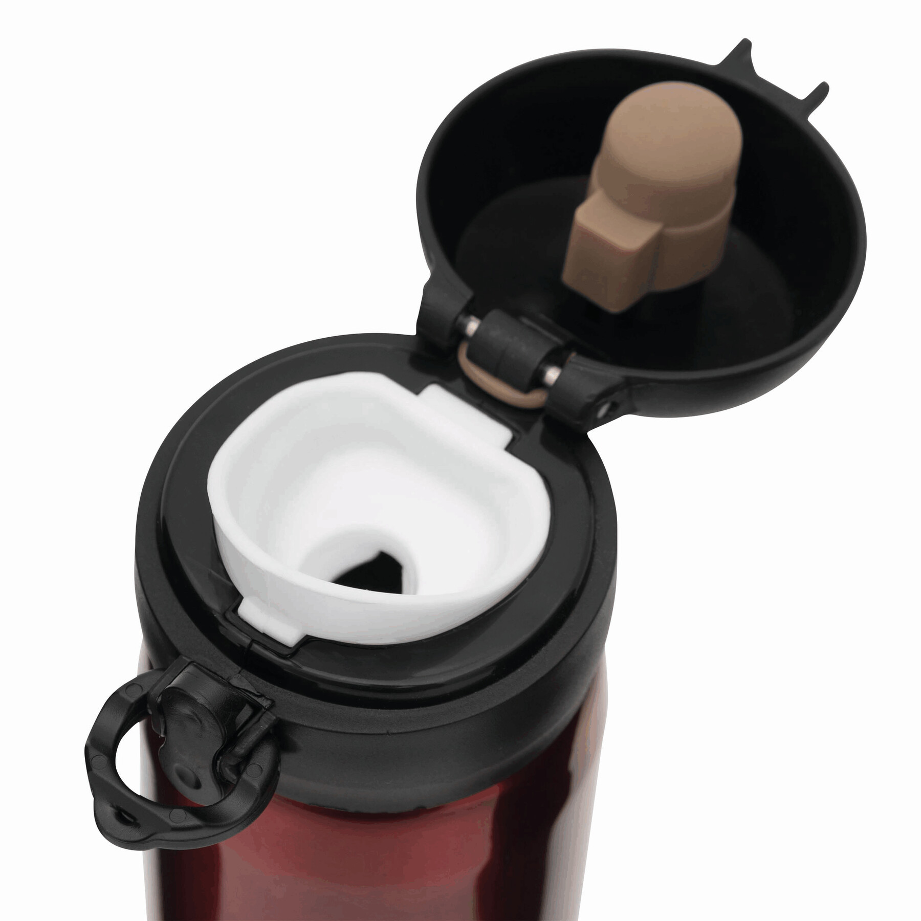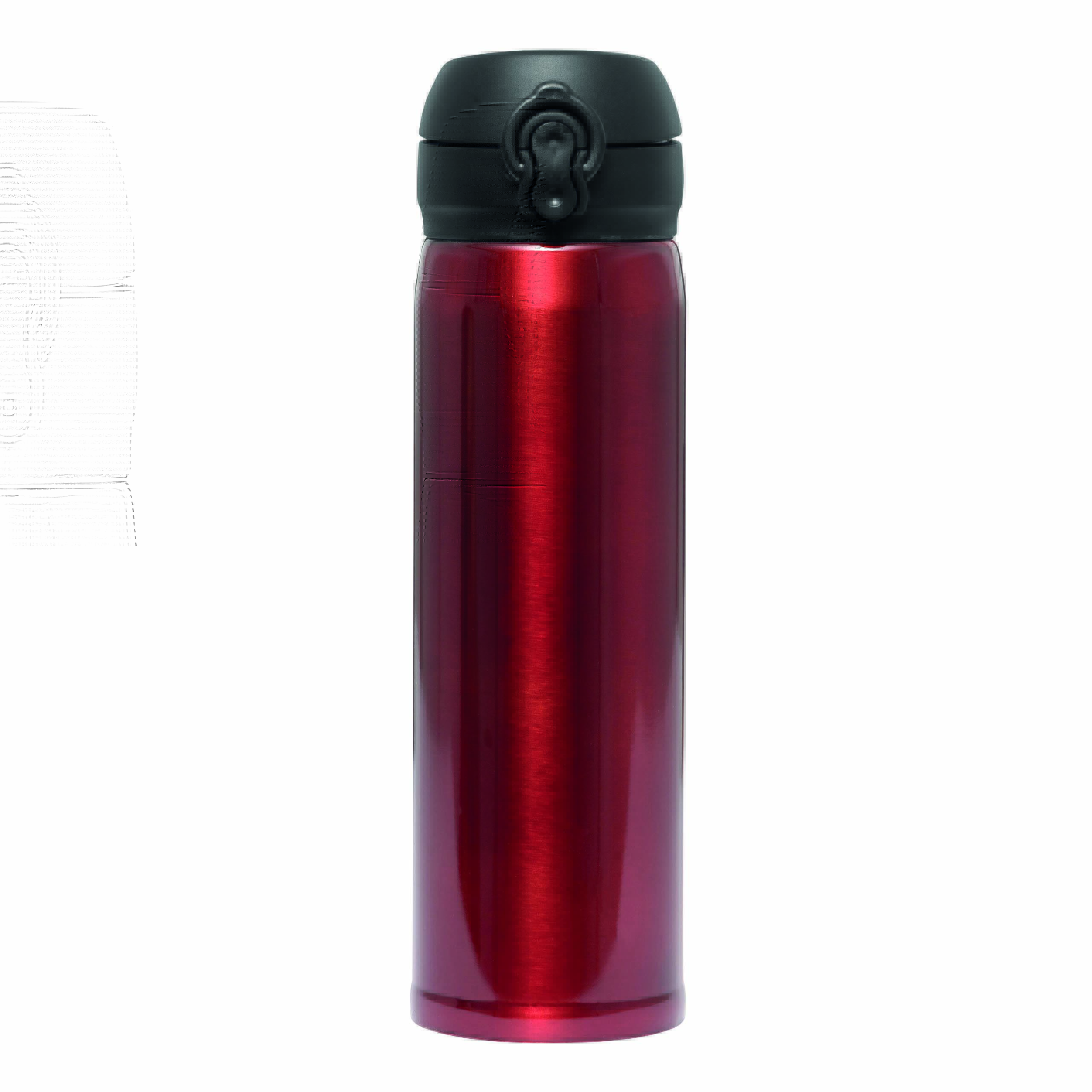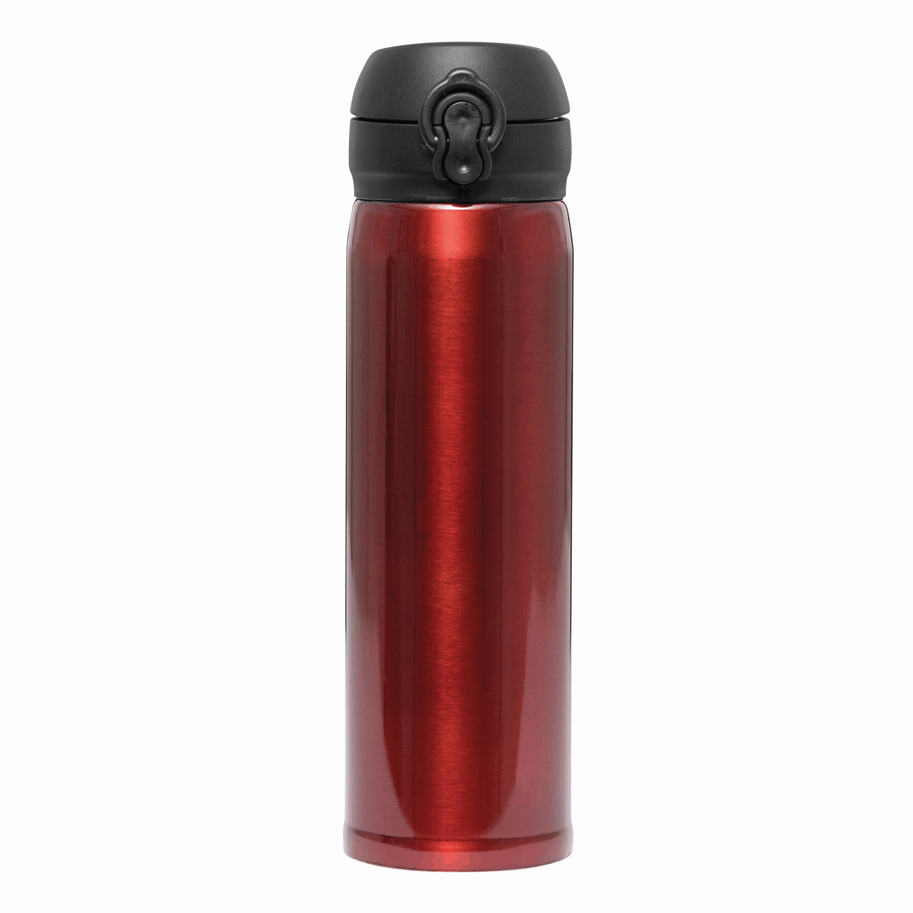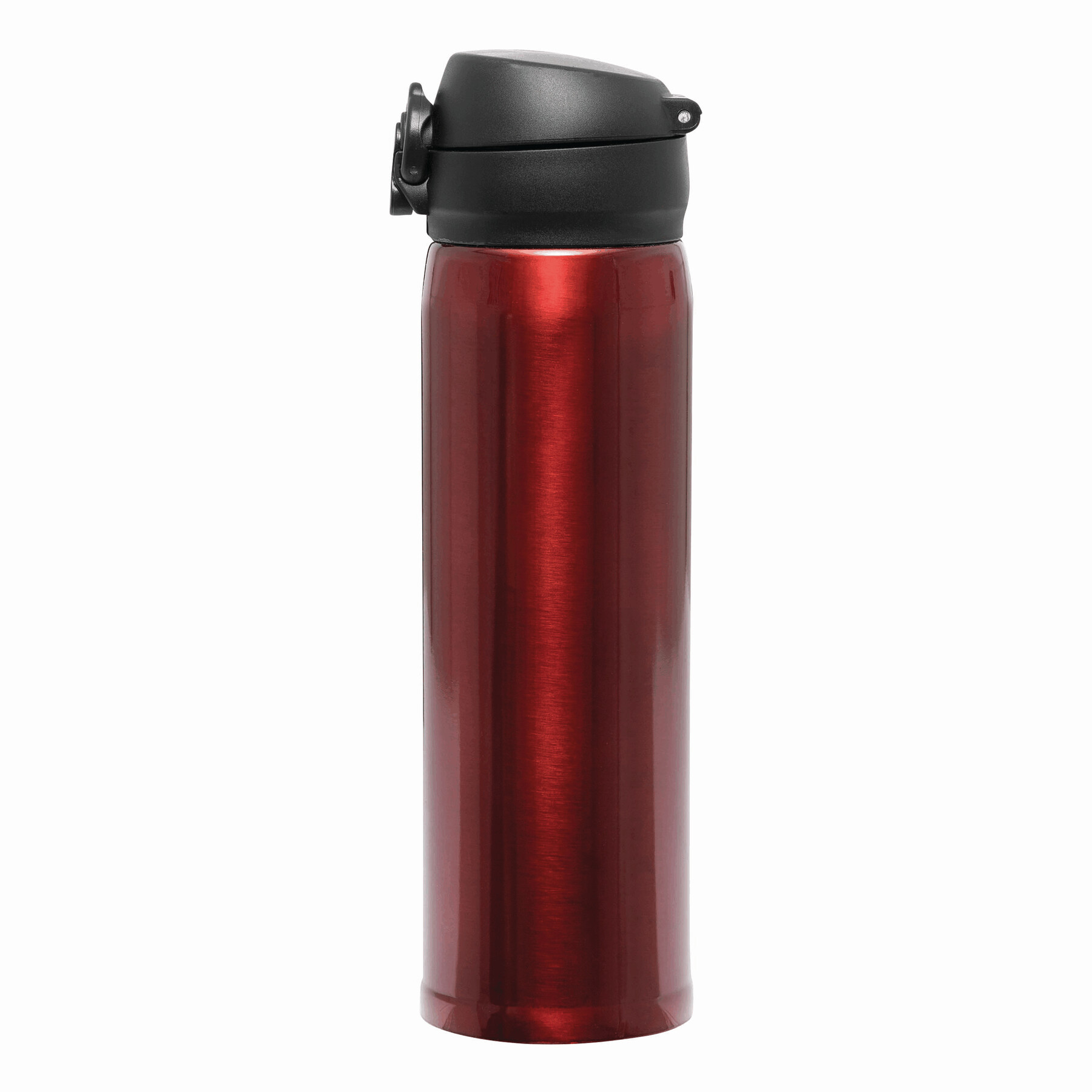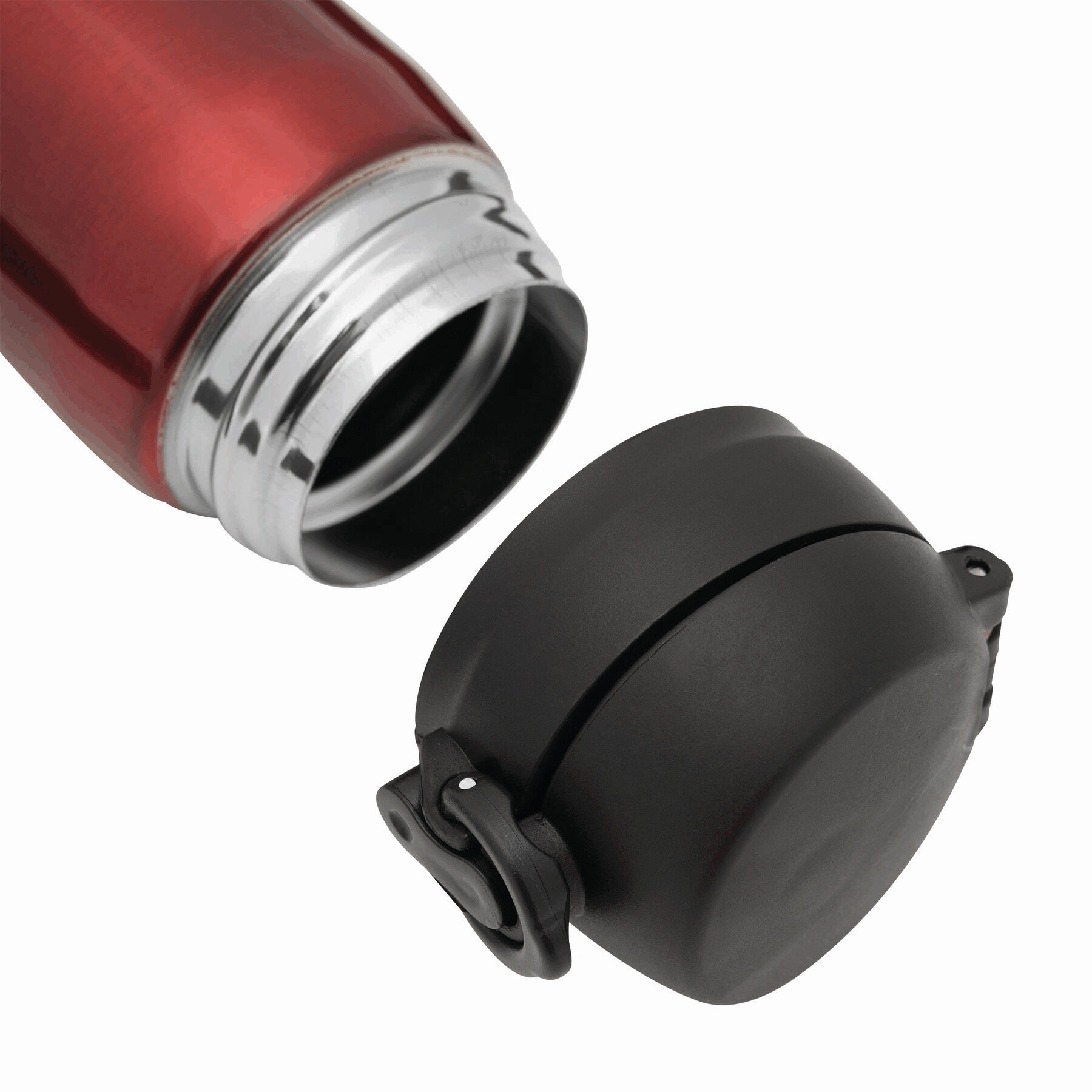 Butelka próżniowa OOLONG. Dwuścienna, wewnątrz i na zewnątrz ze stali nierdzewnej, z dzióbkiem i zakrętką, z przyciskiem i bezpiecznym zamknięciem. Pojemność ok. 400 ml.