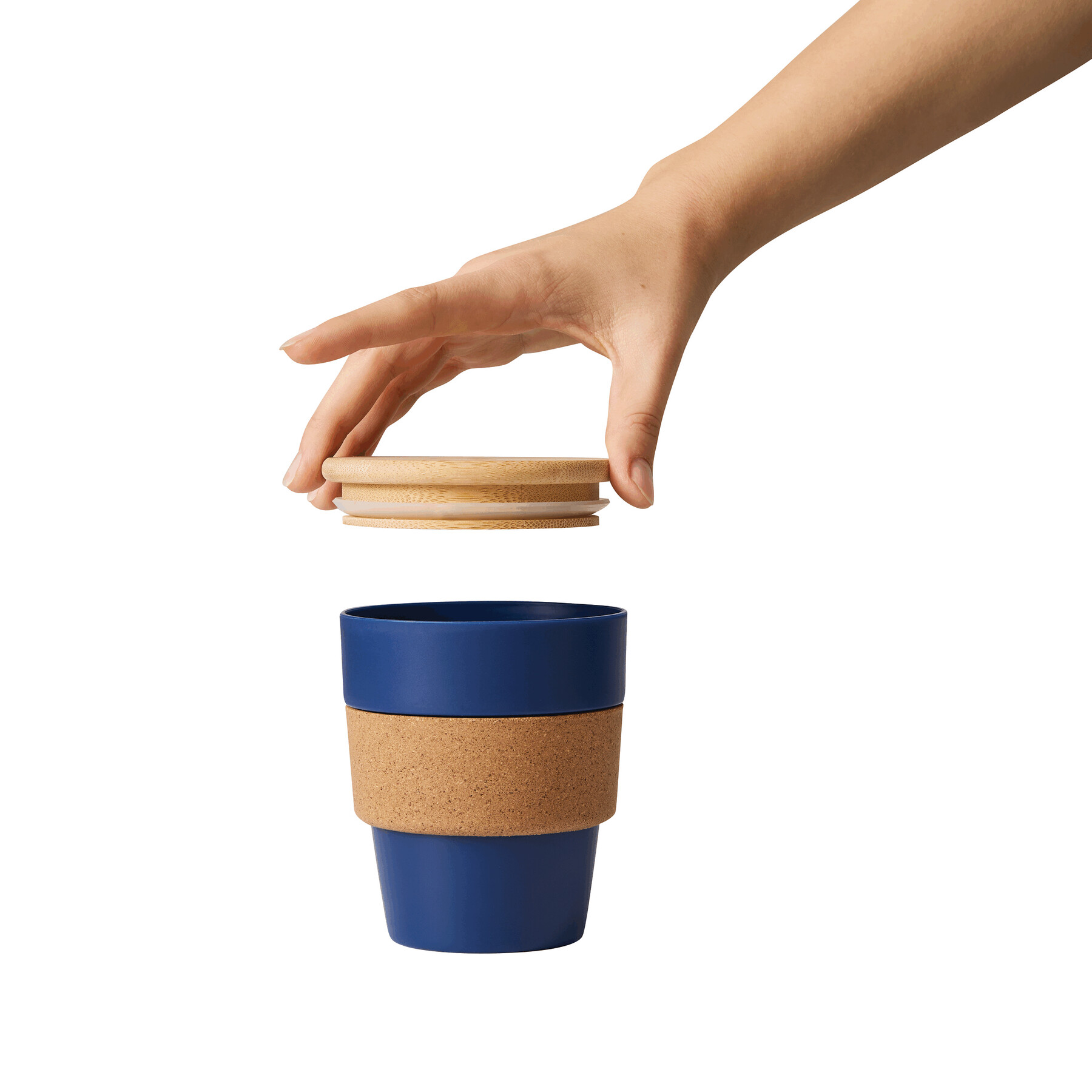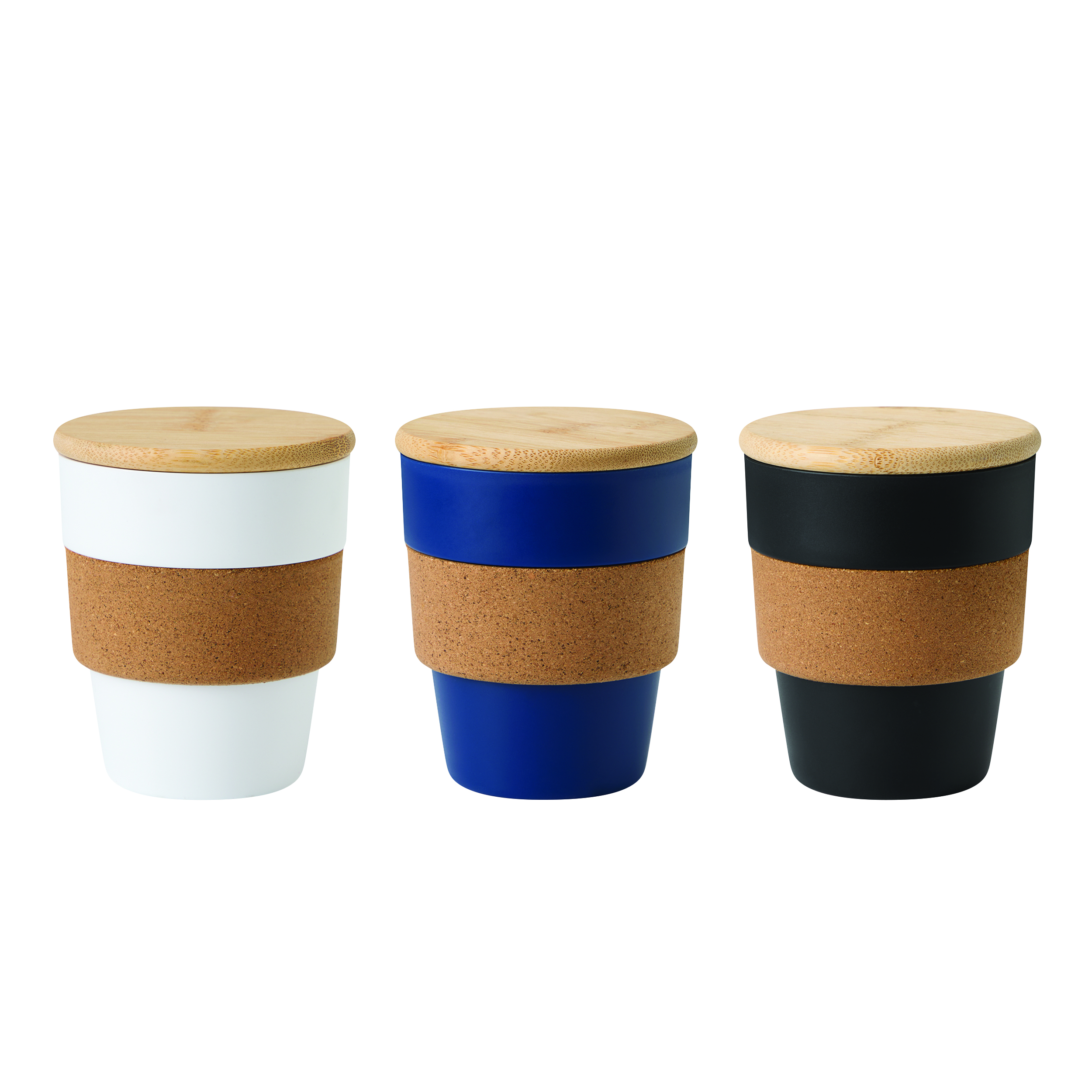 Kubek podróżny TRAVEL GRIP: wykonany jest z plastiku. Posiada korkową powierzchnia ułatwiającą trzymanie, zdejmowaną bambusową pokrywkę z silikonową uszczelką. Pojemność kubka to ok. 350 ml.