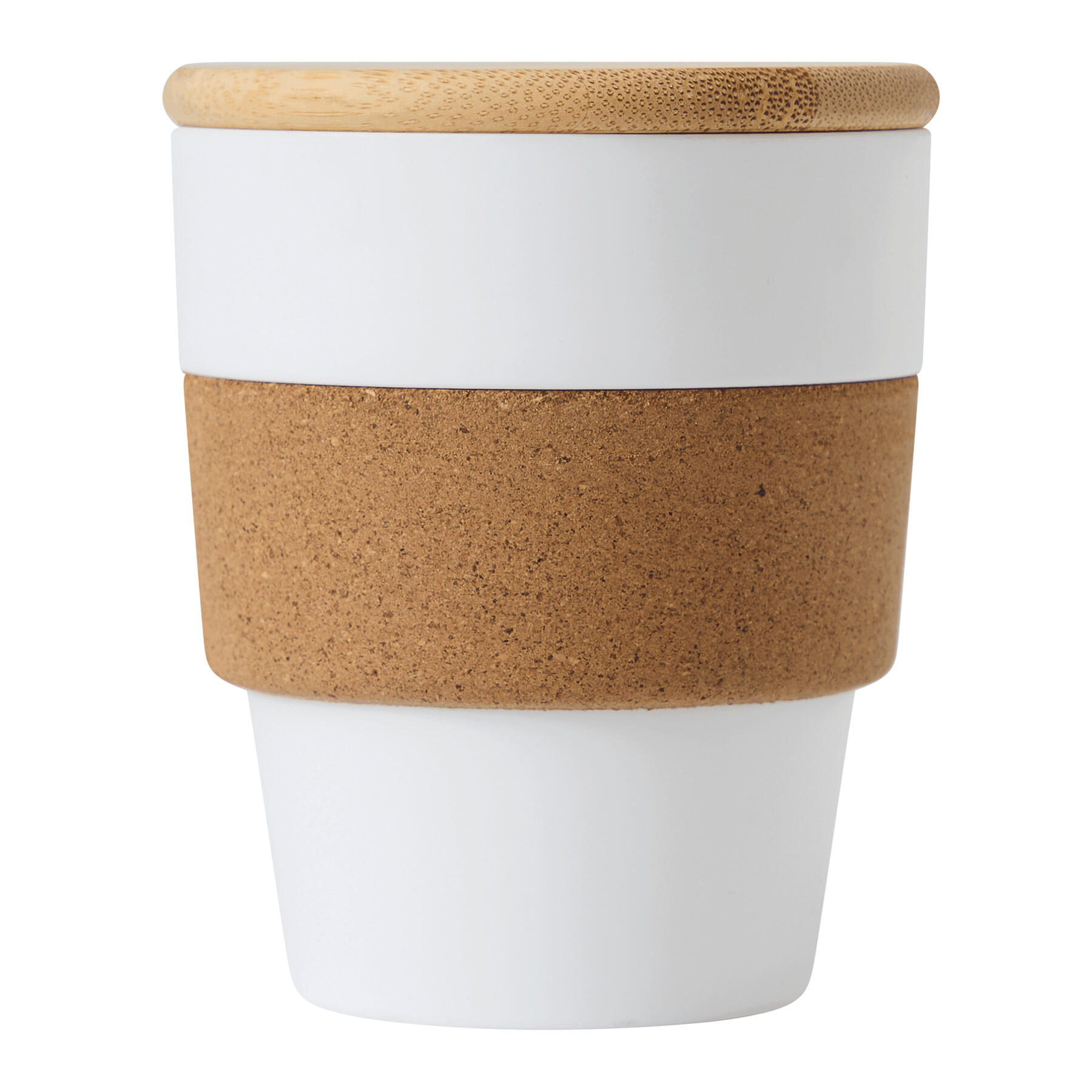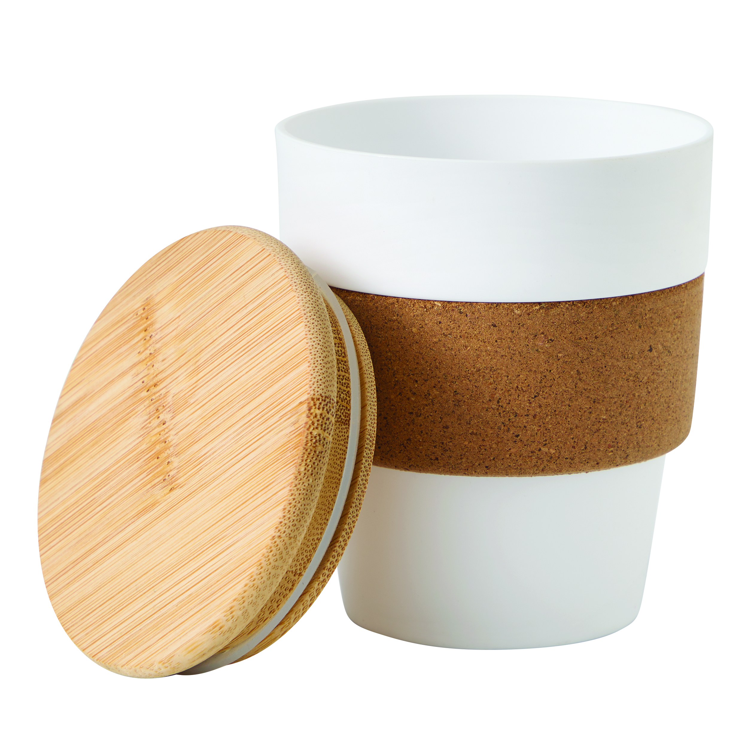 Kubek podróżny TRAVEL GRIP: wykonany jest z plastiku. Posiada korkową powierzchnia ułatwiającą trzymanie, zdejmowaną bambusową pokrywkę z silikonową uszczelką. Pojemność kubka to ok. 350 ml.
