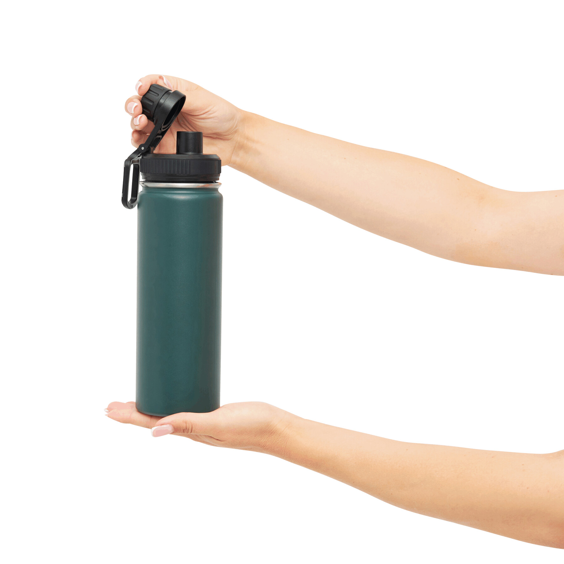 Próżniowa butelka do picia ARMY STYLE, dwuścienna: wewnątrz i na zewnątrz wykonana ze stali nierdzewnej, czarna, szczelna zakrętka, pojemność ok. 600 ml, utrzymuje ciepło napoju przez ok. 8 godzin i zimno do 12 godzin.