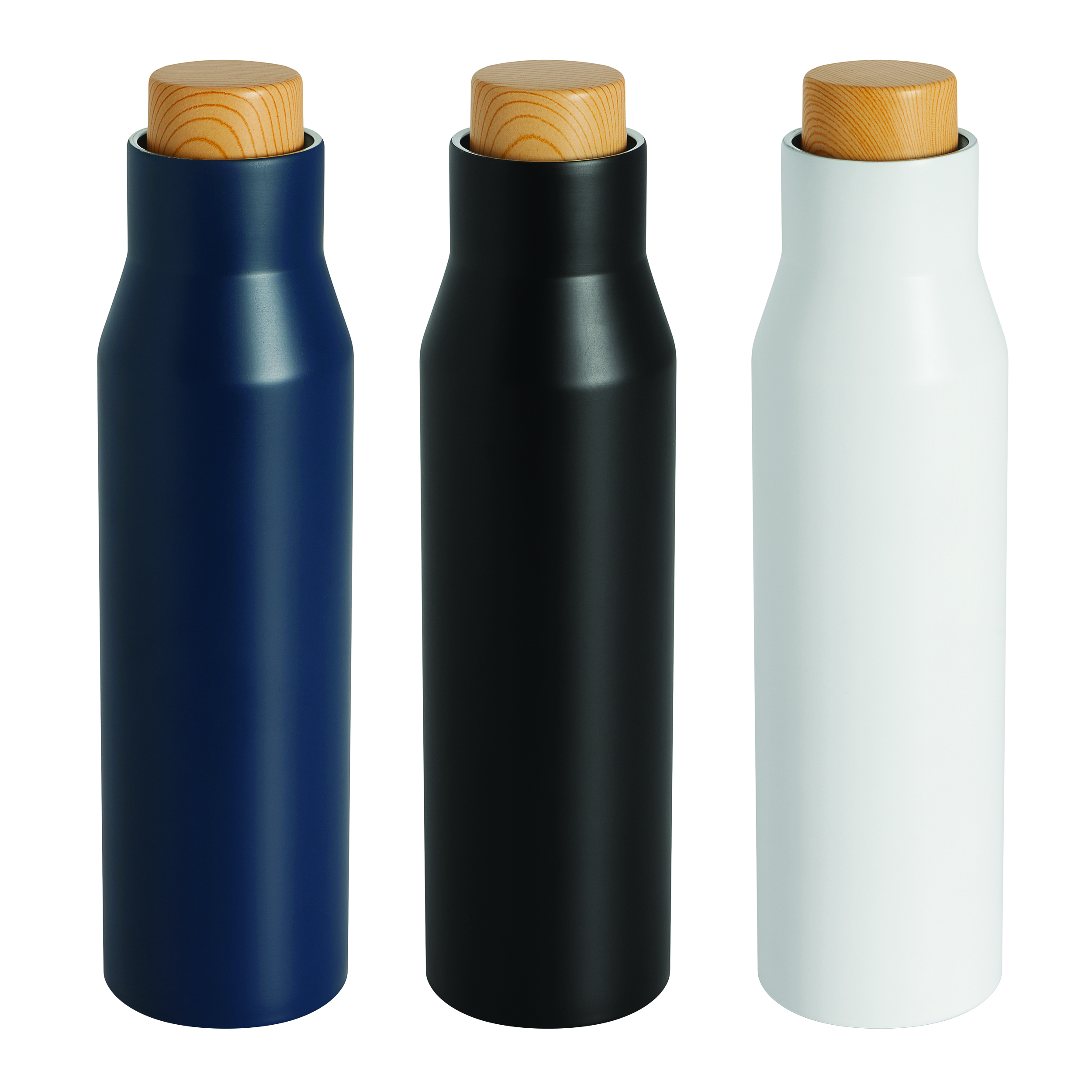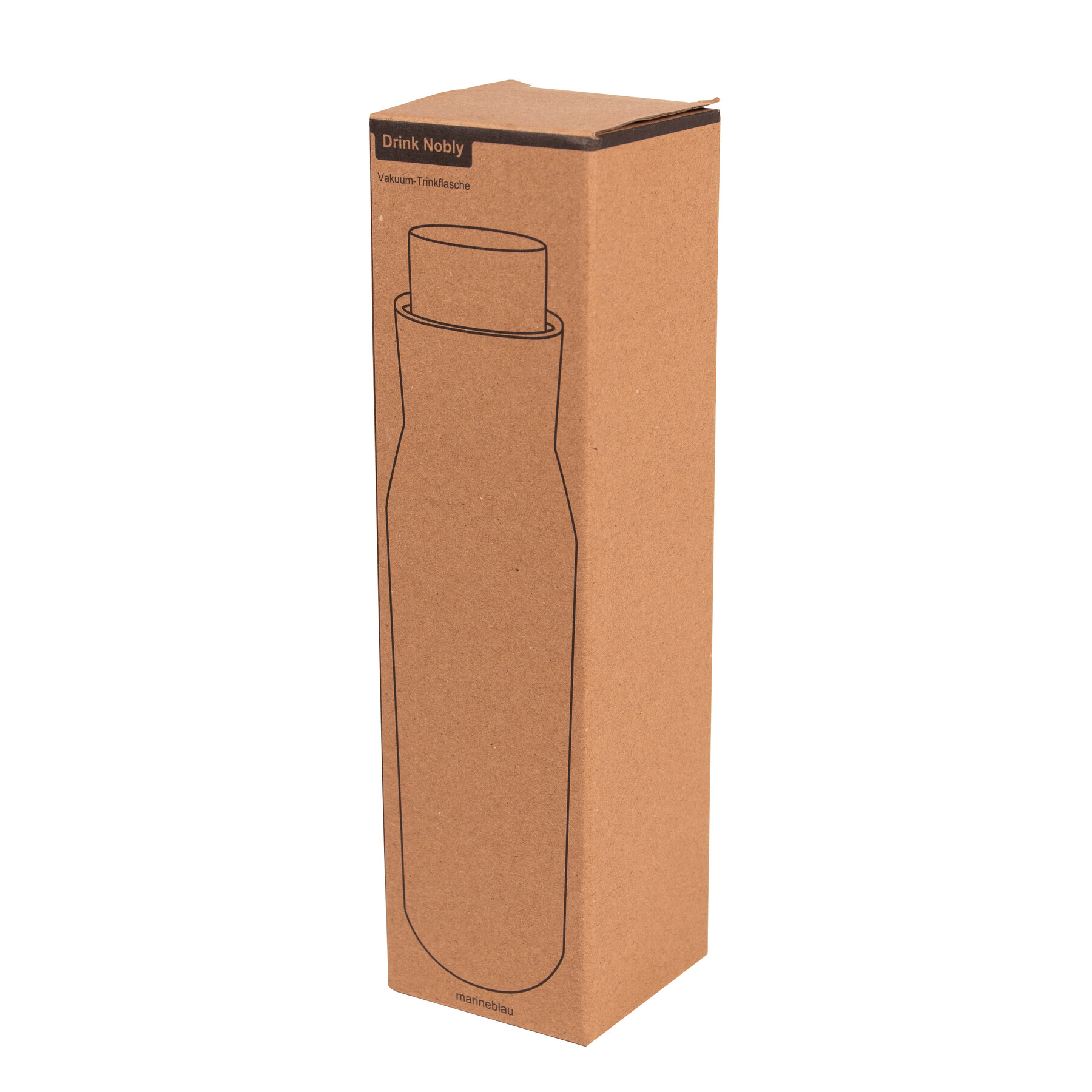 Próżniowa butelka do picia DRINK NOBLY. Z podwójną izolacją – na zewnątrz i wewnątrz wykonana jest ze stali nierdzewnej. Zakrętka zrobiona jest z imitacji bambusa z dodatkowym silikonowym pierścieniem uszczelniającym. Pojemność butelki to ok. 500 ml.