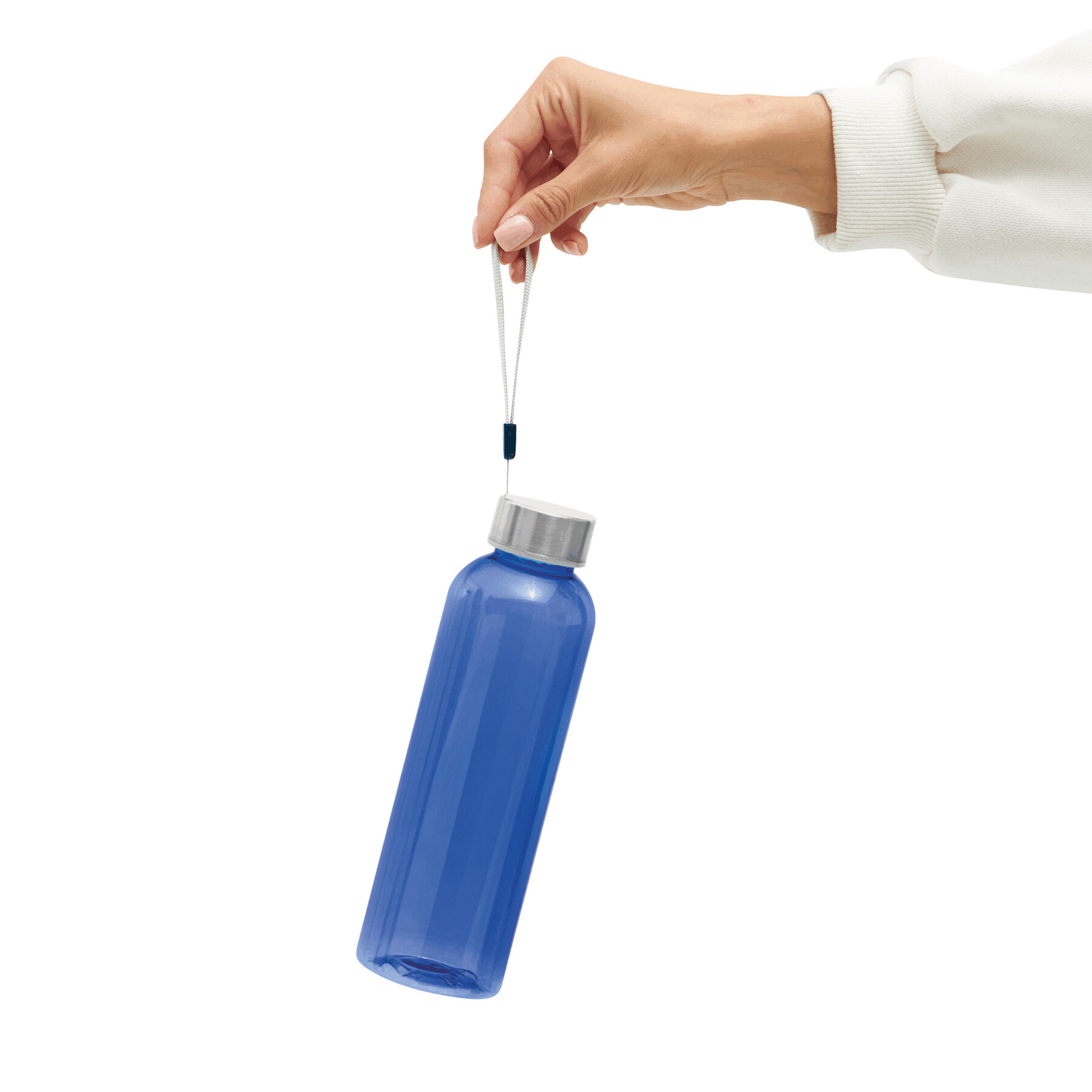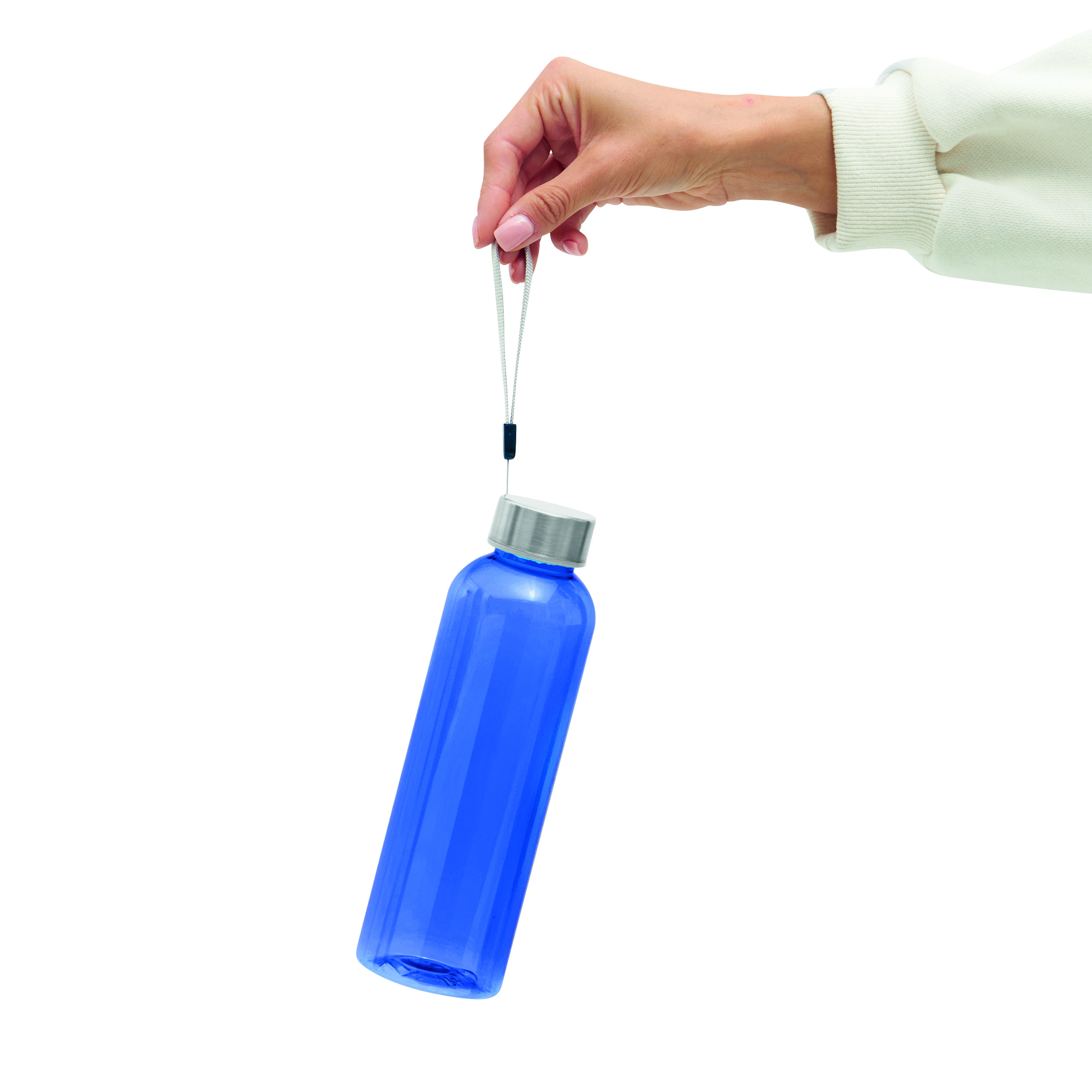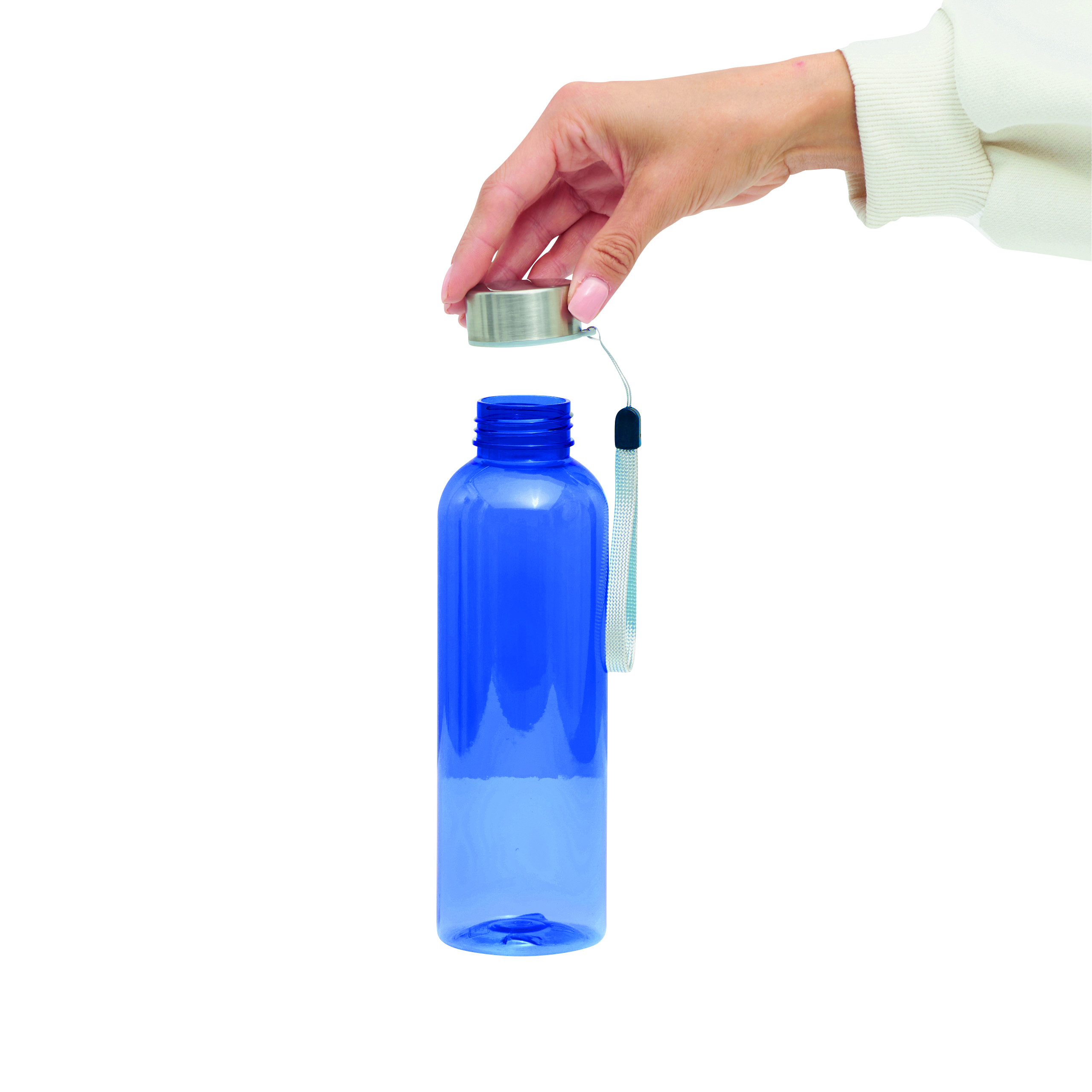 Butelka do picia SIMPLE ECO z PET. Nakrętka ze stali nierdzewnej, pętelka do przenoszenia. Pojemność ok. 500 ml.