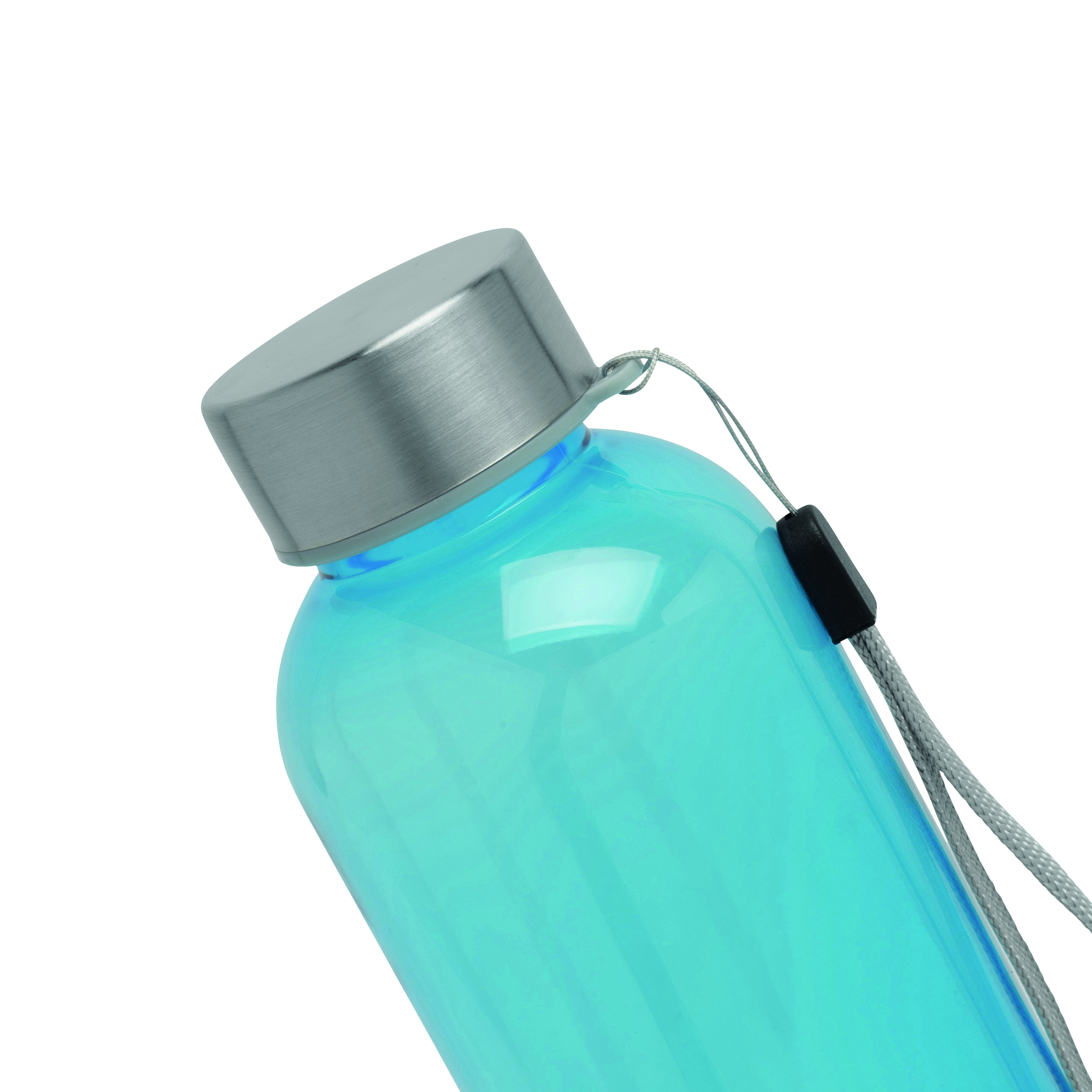 Butelka do picia SIMPLE ECO z PET. Nakrętka ze stali nierdzewnej, pętelka do przenoszenia. Pojemność ok. 500 ml.