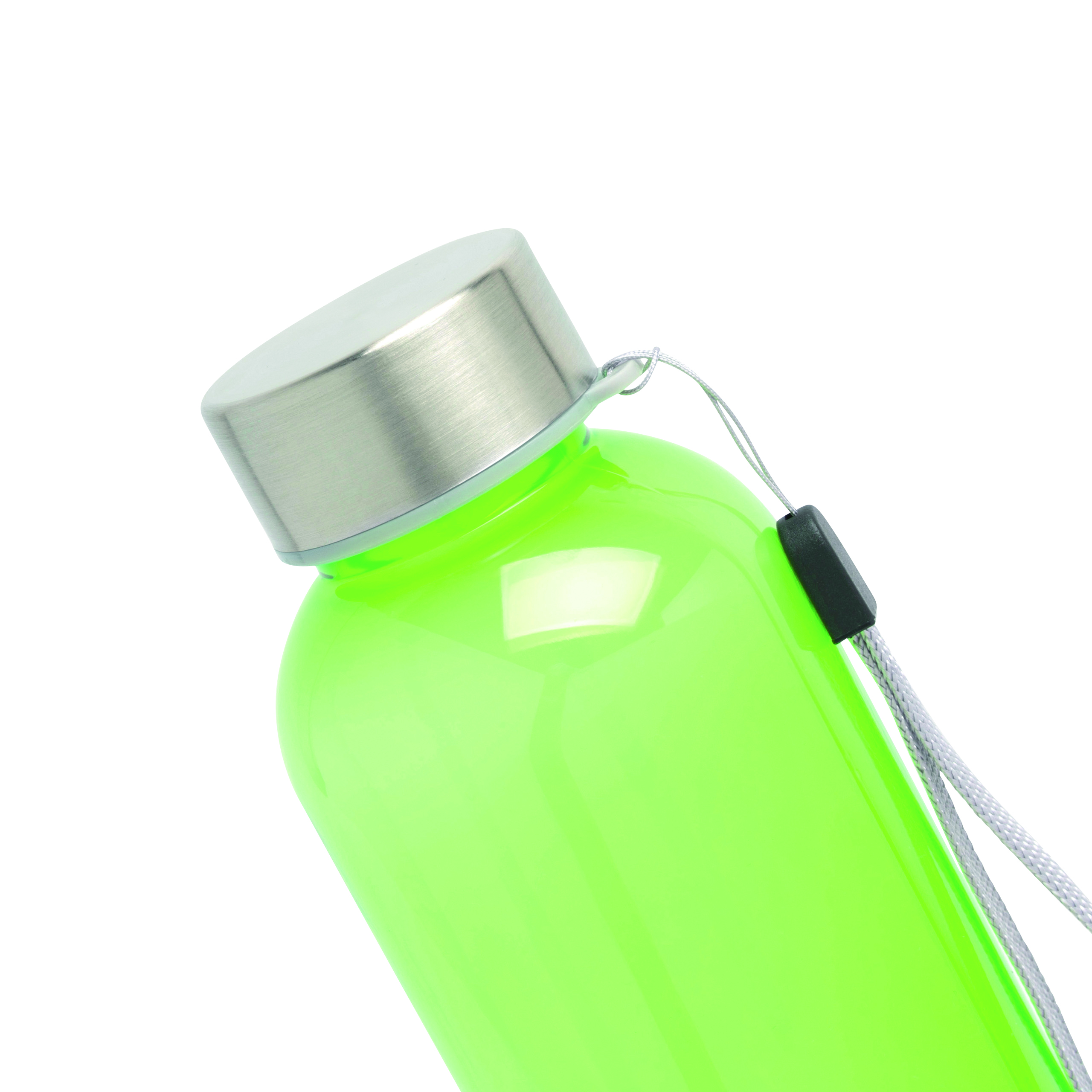 Butelka do picia SIMPLE ECO z PET. Nakrętka ze stali nierdzewnej, pętelka do przenoszenia. Pojemność ok. 500 ml.