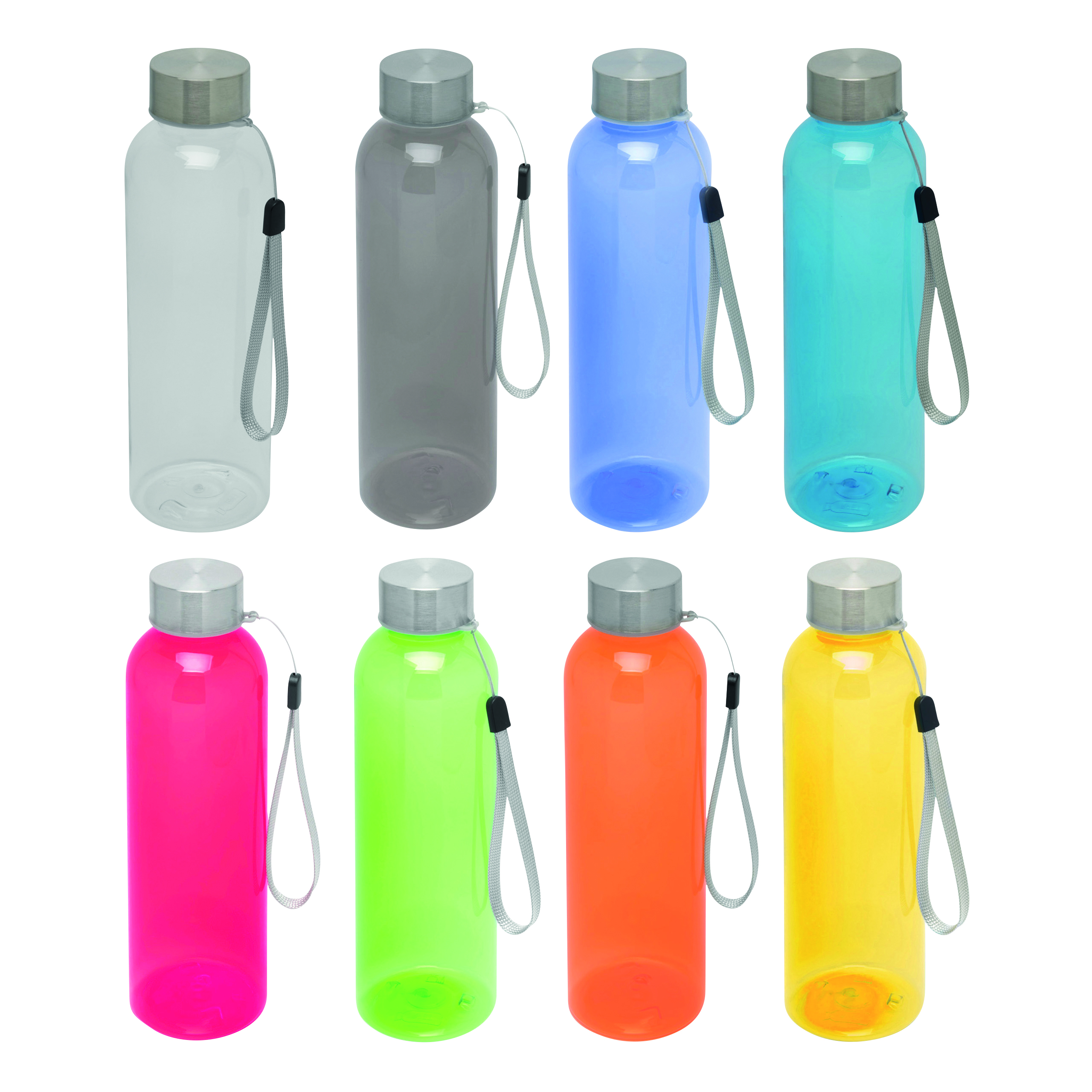Butelka do picia SIMPLE ECO z PET. Nakrętka ze stali nierdzewnej, pętelka do przenoszenia. Pojemność ok. 500 ml.