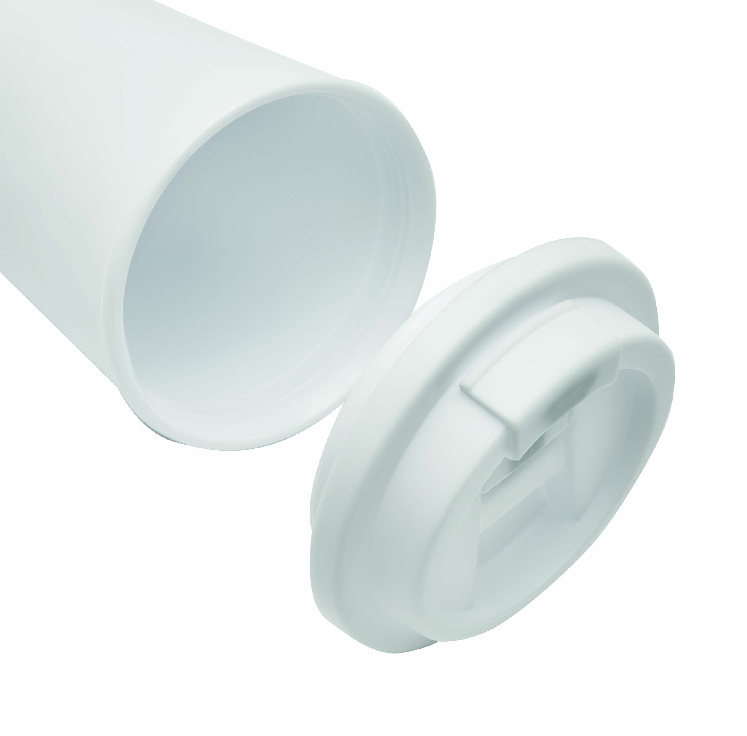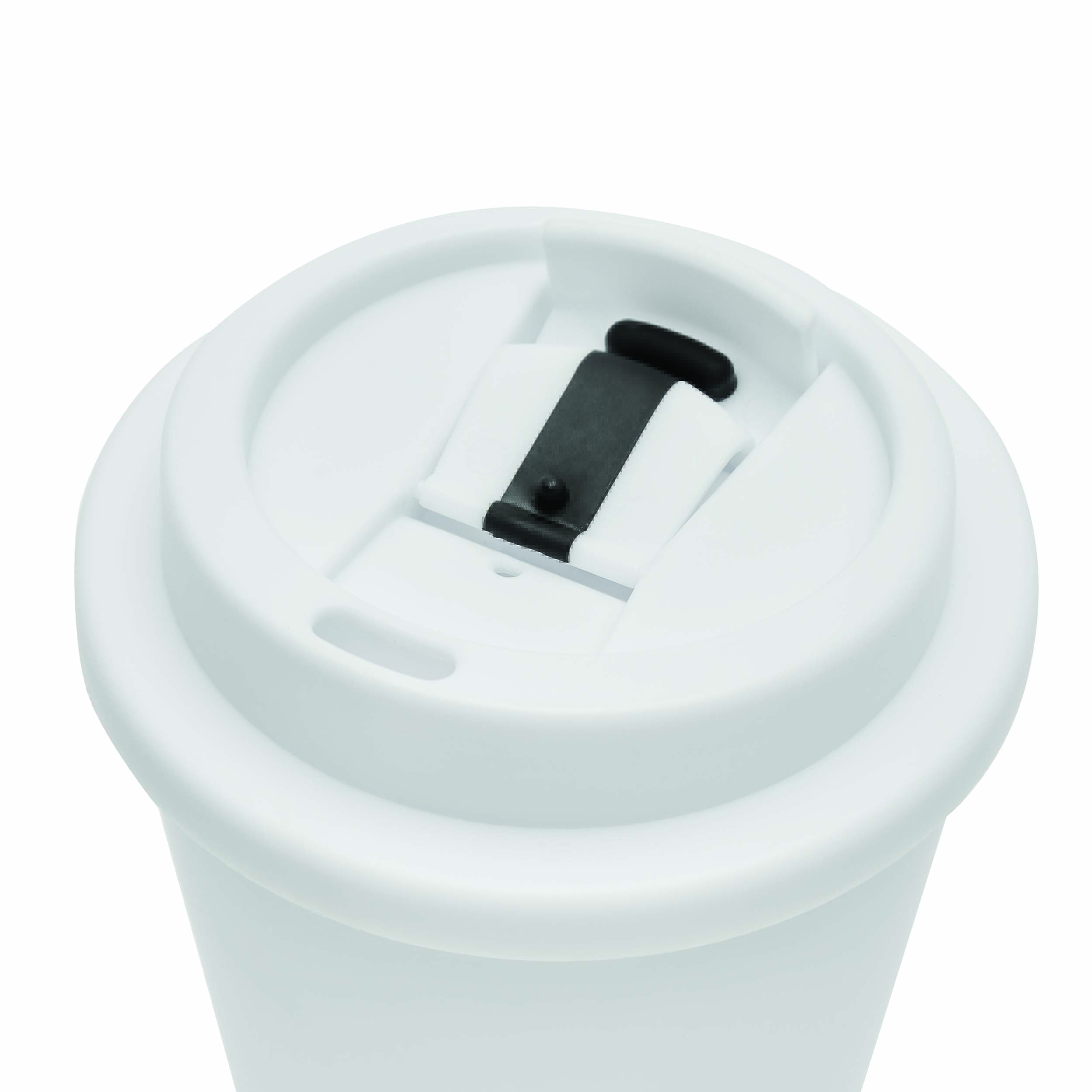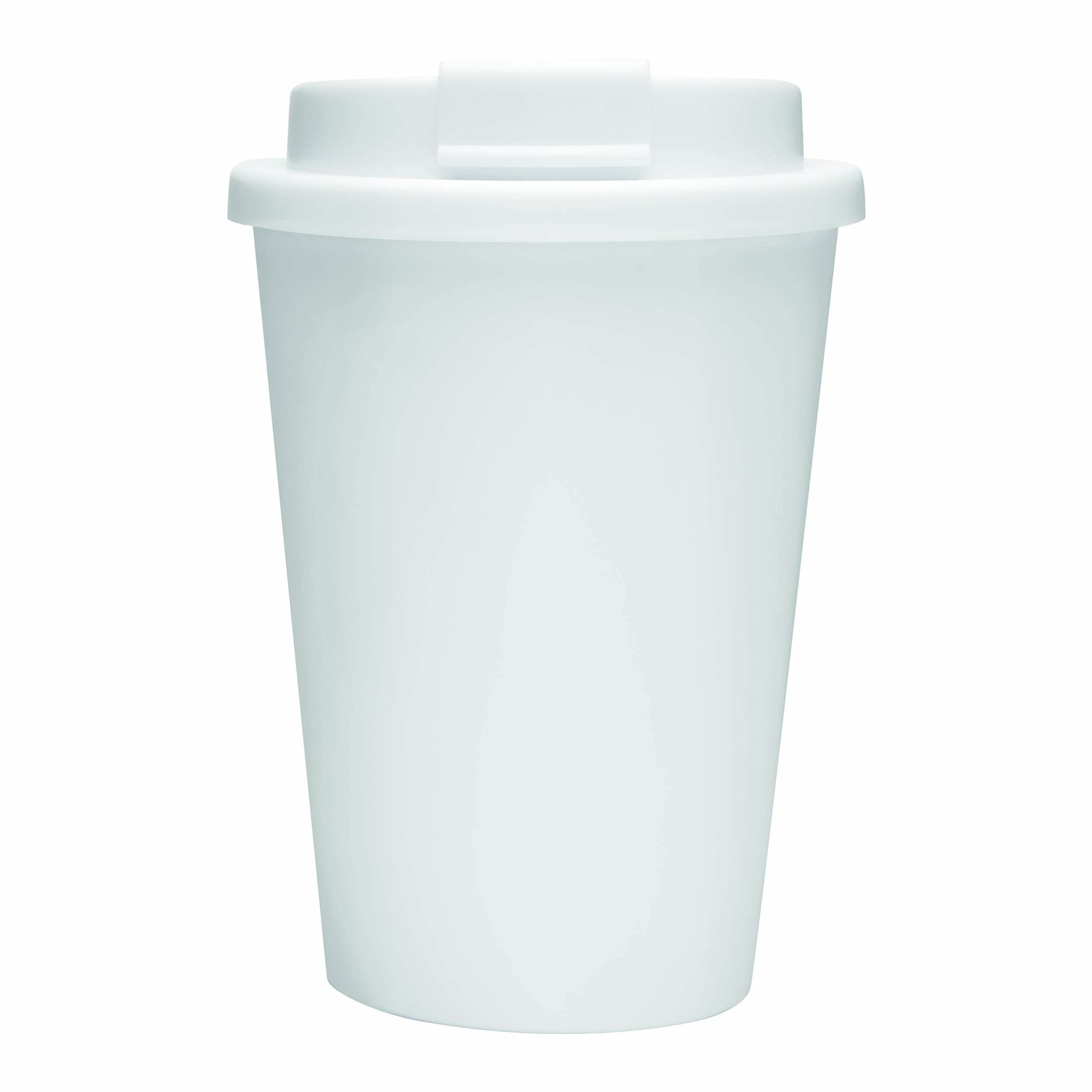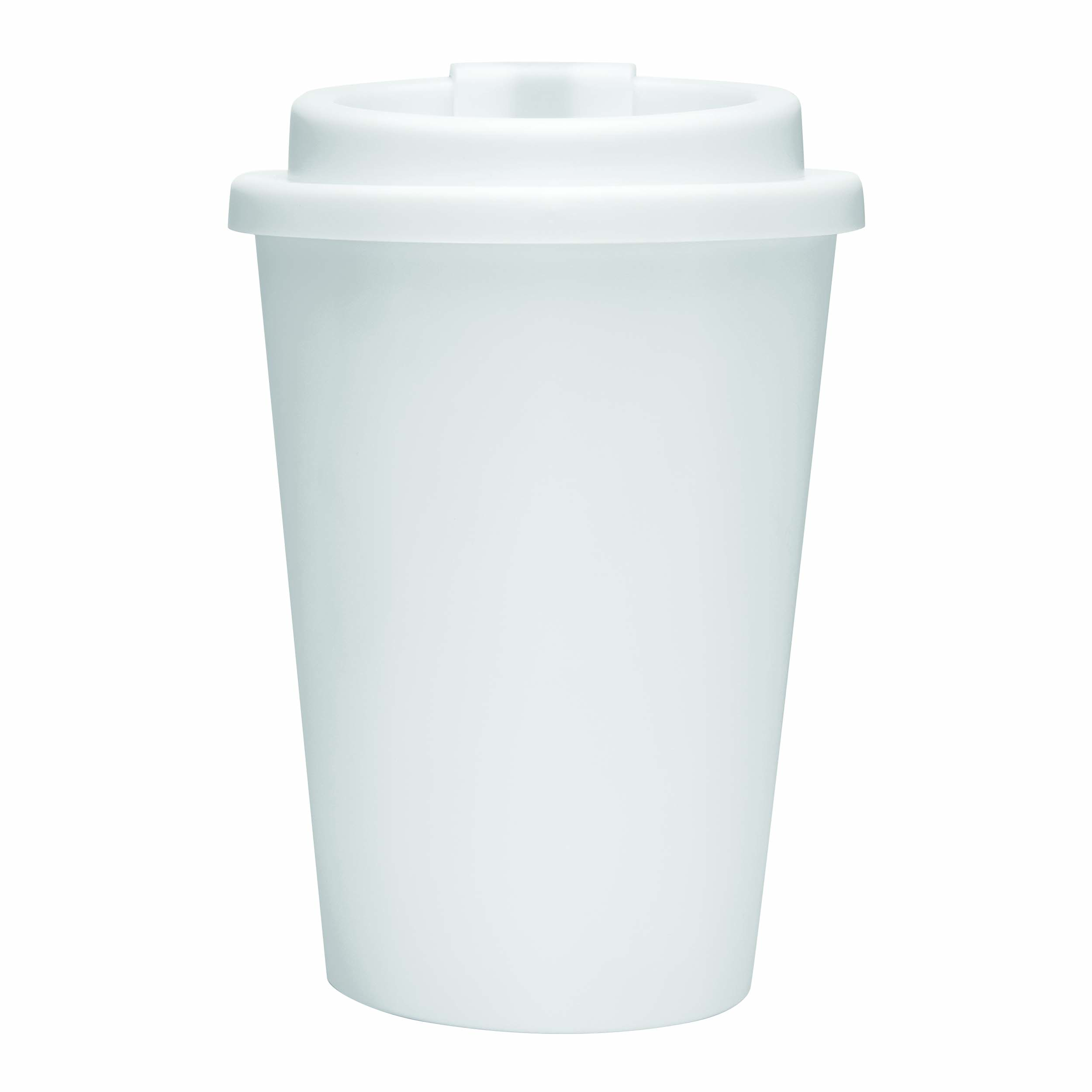 Kubek termiczny RE-USE, dwuścienny: bezpieczna zakrętka z silikonową uszczelką i zintegrowanym otworem do picia na zatrzask, pojemność ok. 300 ml, utrzymuje ciepło do 2 godzin i zimno do 4 godzin.