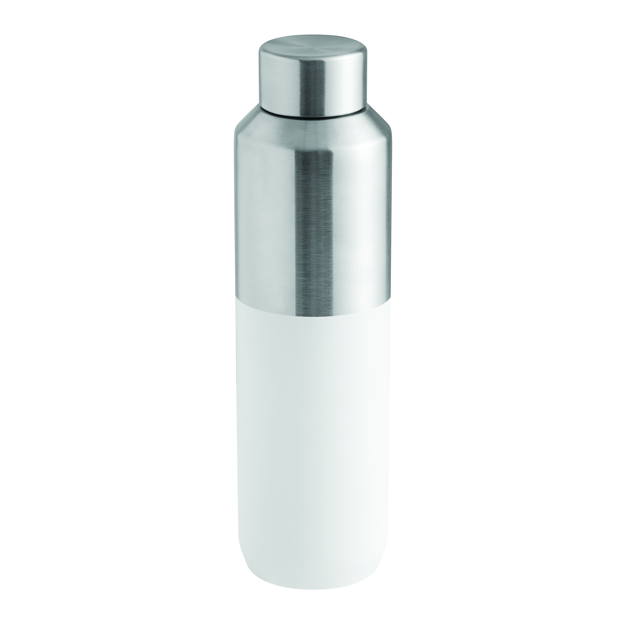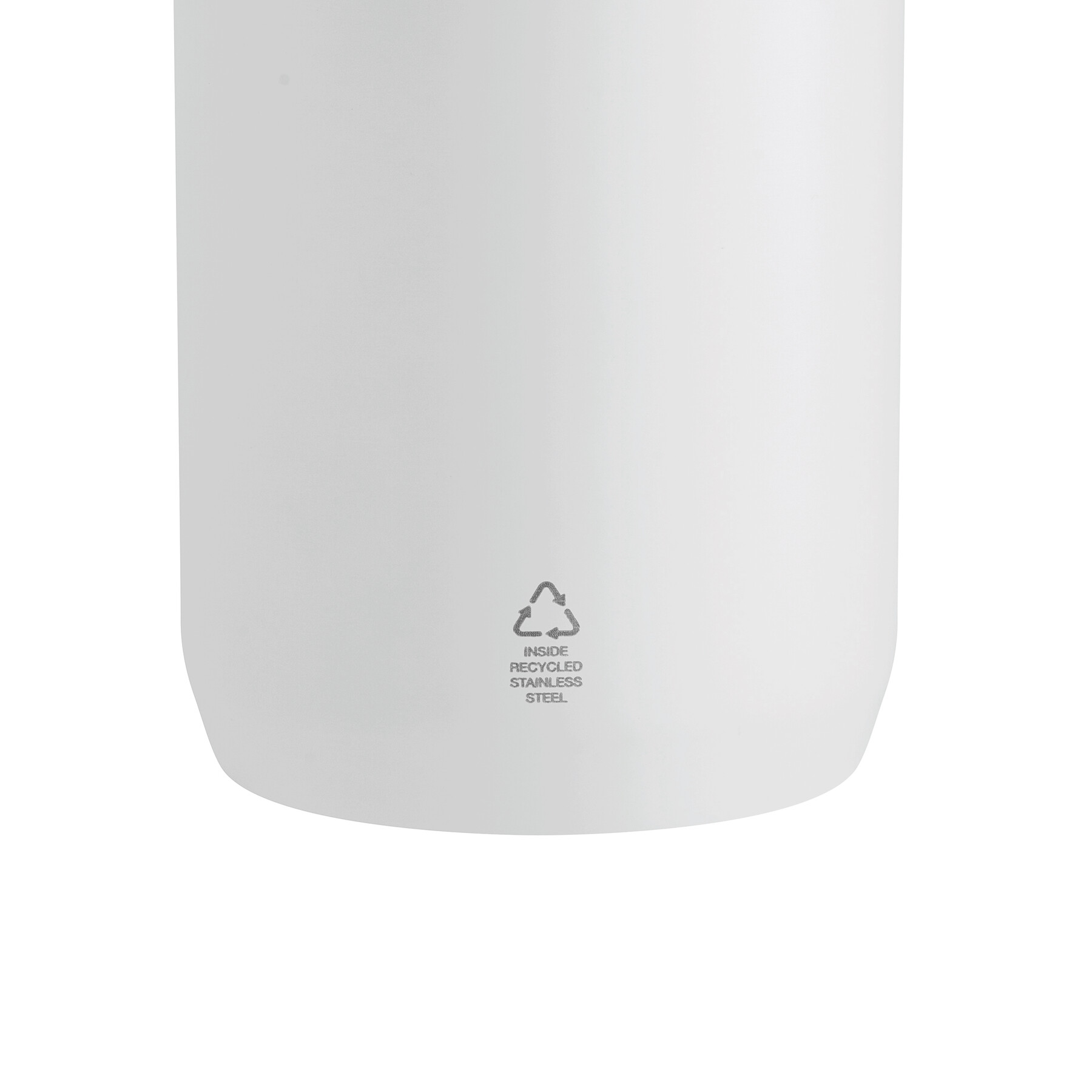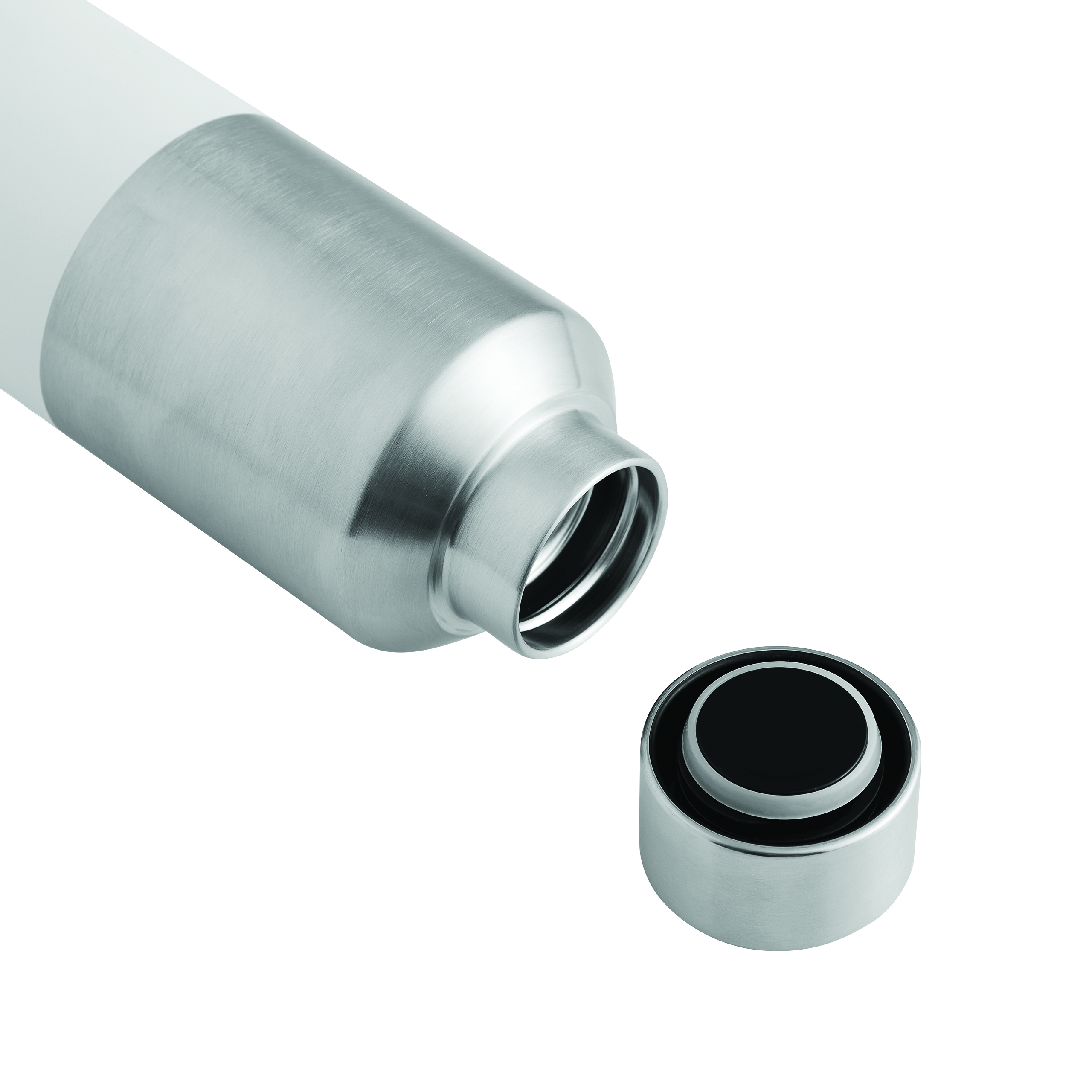 Próżniowa butelka STEECO z podwójną izolacją. Wewnątrz wykonana ze stali nierdzewnej z recyklingu, na zewnątrz ze stali nierdzewnej. Posiada pokrywkę z bezpieczną zakrętką i silikonowym pierścieniem uszczelniającym. O pojemności ok. 600 ml. Utrzymuje ciepło przez ok. 8 godzin i zimno nawet do 12. Zapakowana jest w pudełko.