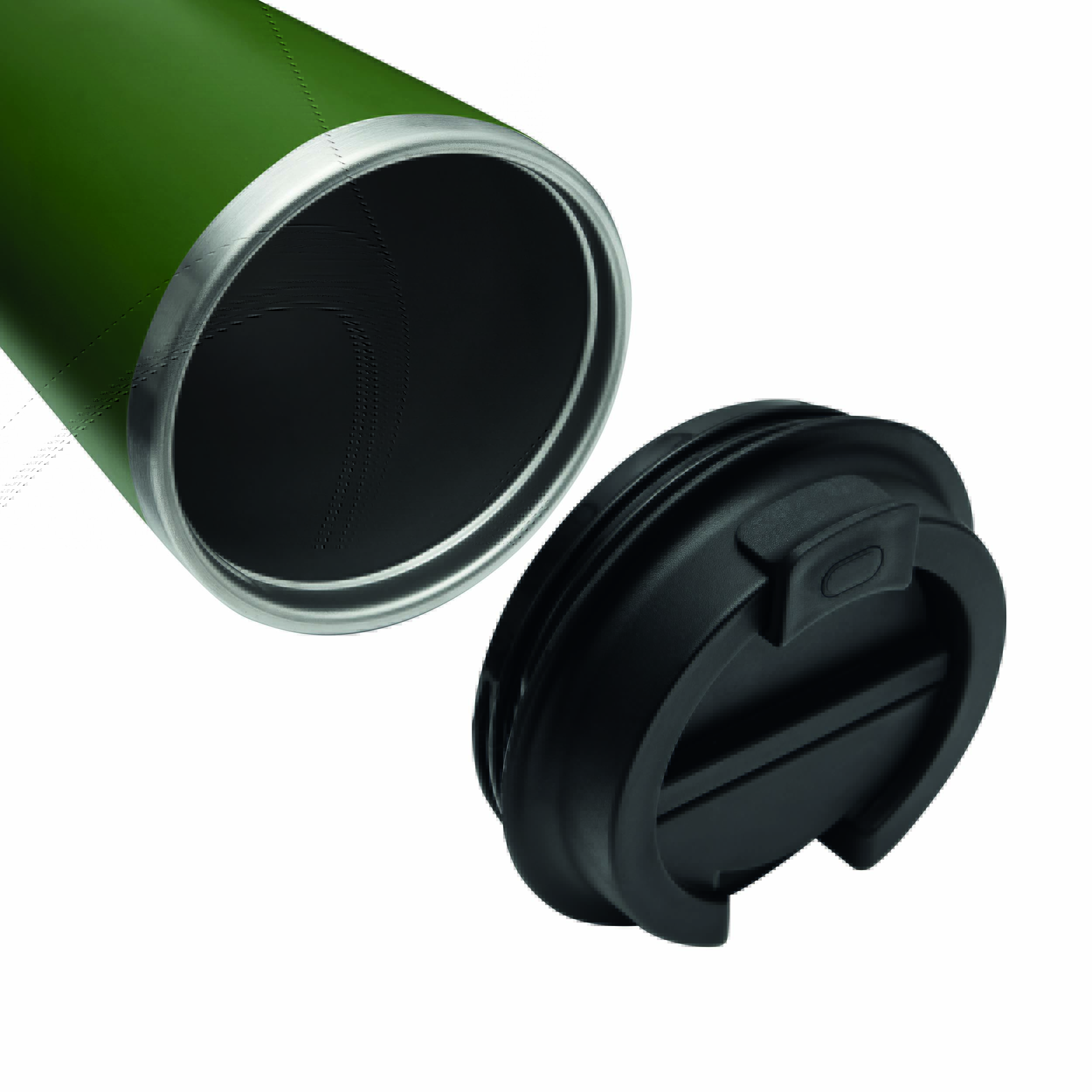 Kubek podróżny TAKE & GO dwuścienny: wykonany ze stali nierdzewnej wewnątrz i tworzywa sztucznego na zewnątrz, bezpiecznie zakręcana plastikowa pokrywka ze zintegrowanym otworem do picia i silikonową uszczelką, pojemność ok. 350 ml, utrzymuje ciepło napojów przez ok. 2 godziny i zimne do 4 godzin.