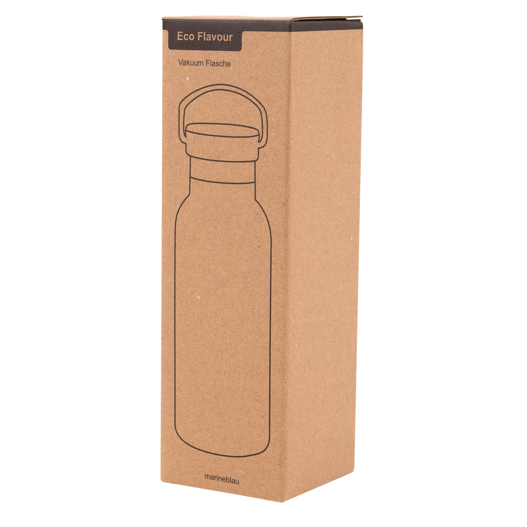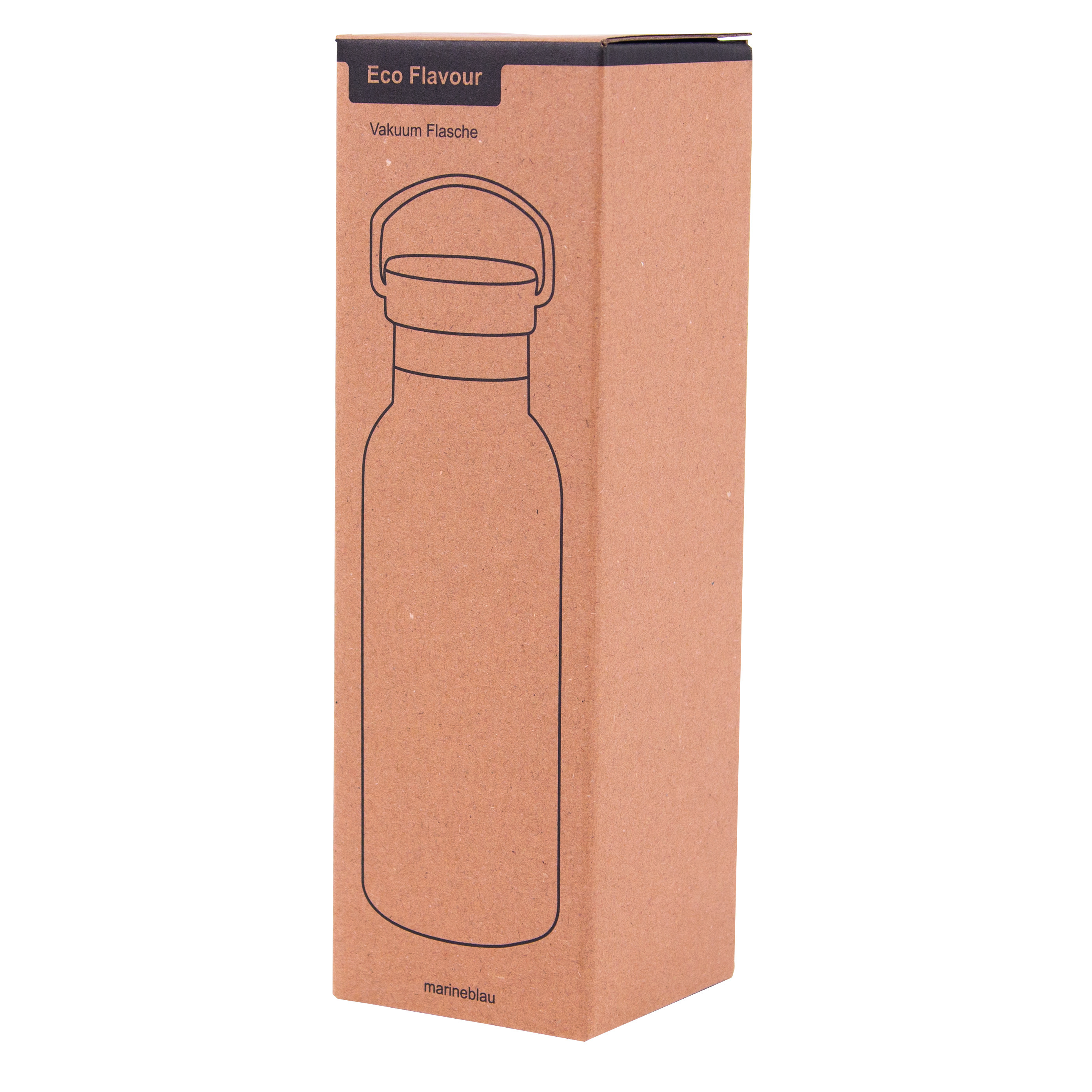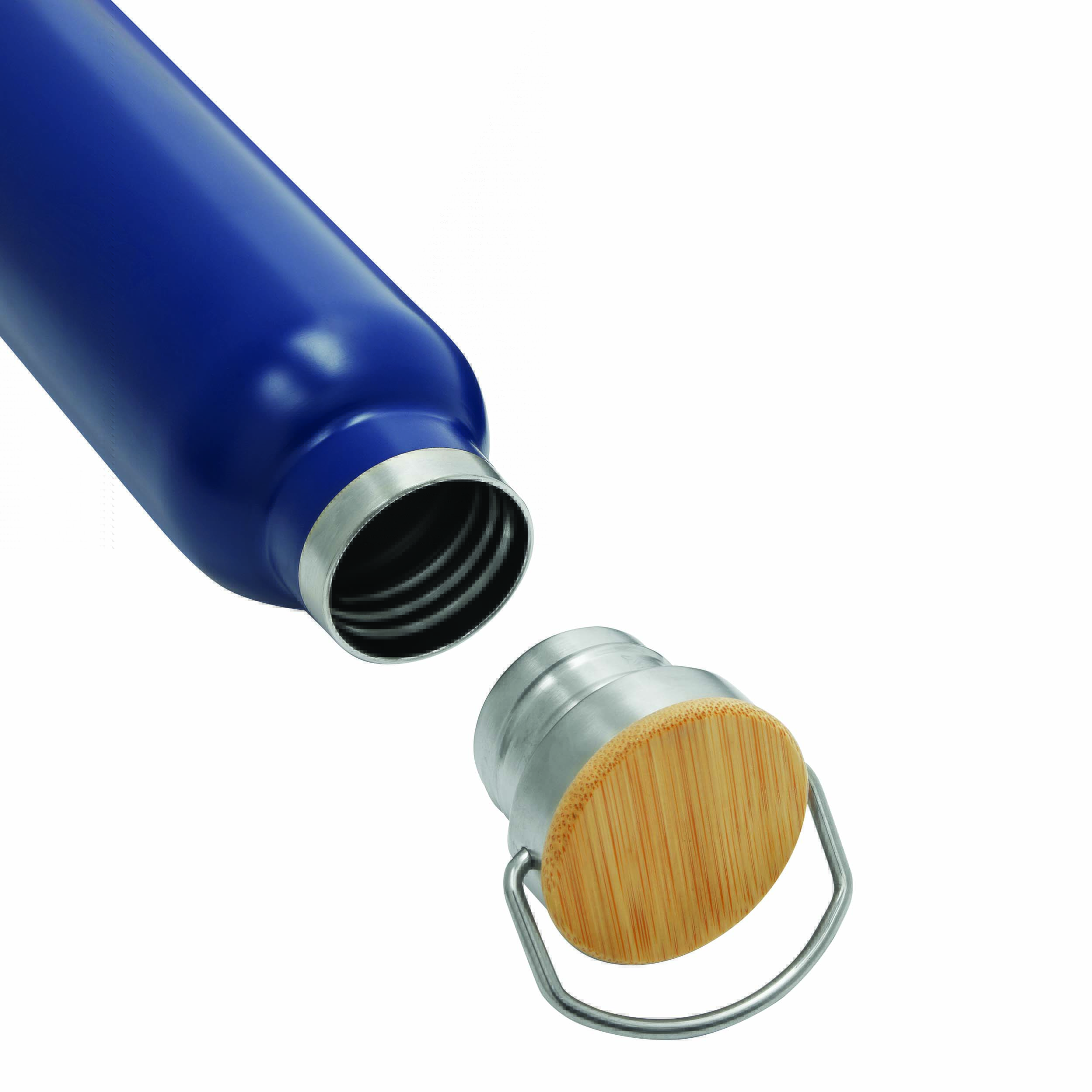 Butelka próżniowa do picia ECO FLAVOUR, dwuścienna: wewnątrz i na zewnątrz ze stali nierdzewnej, bezpieczna zakrętka z bambusa z silikonową uszczelką i pętlą do noszenia, pojemność ok. 500 ml, utrzymuje ciepło do 8 godzin i zimno do 12 godzin.
