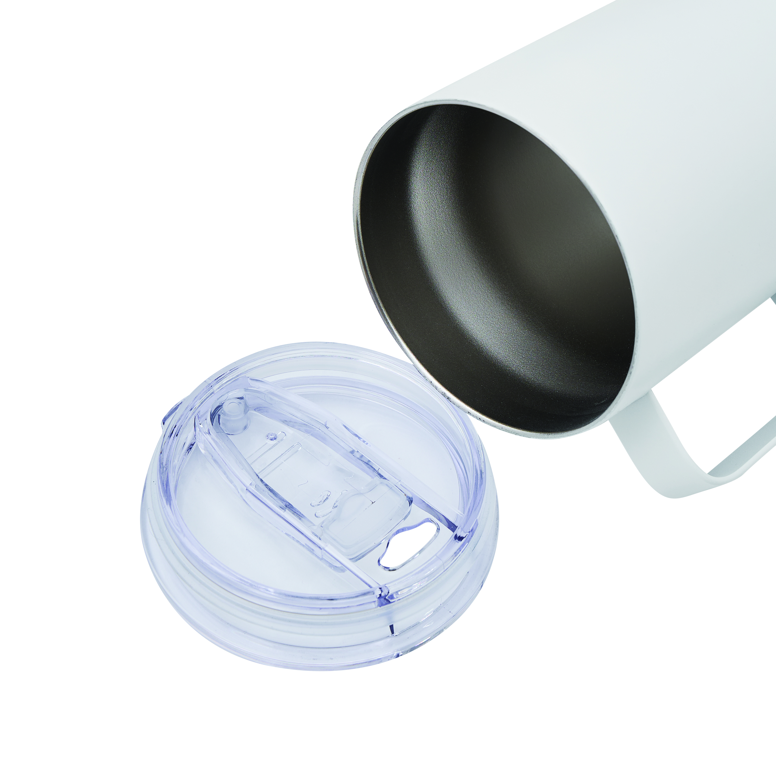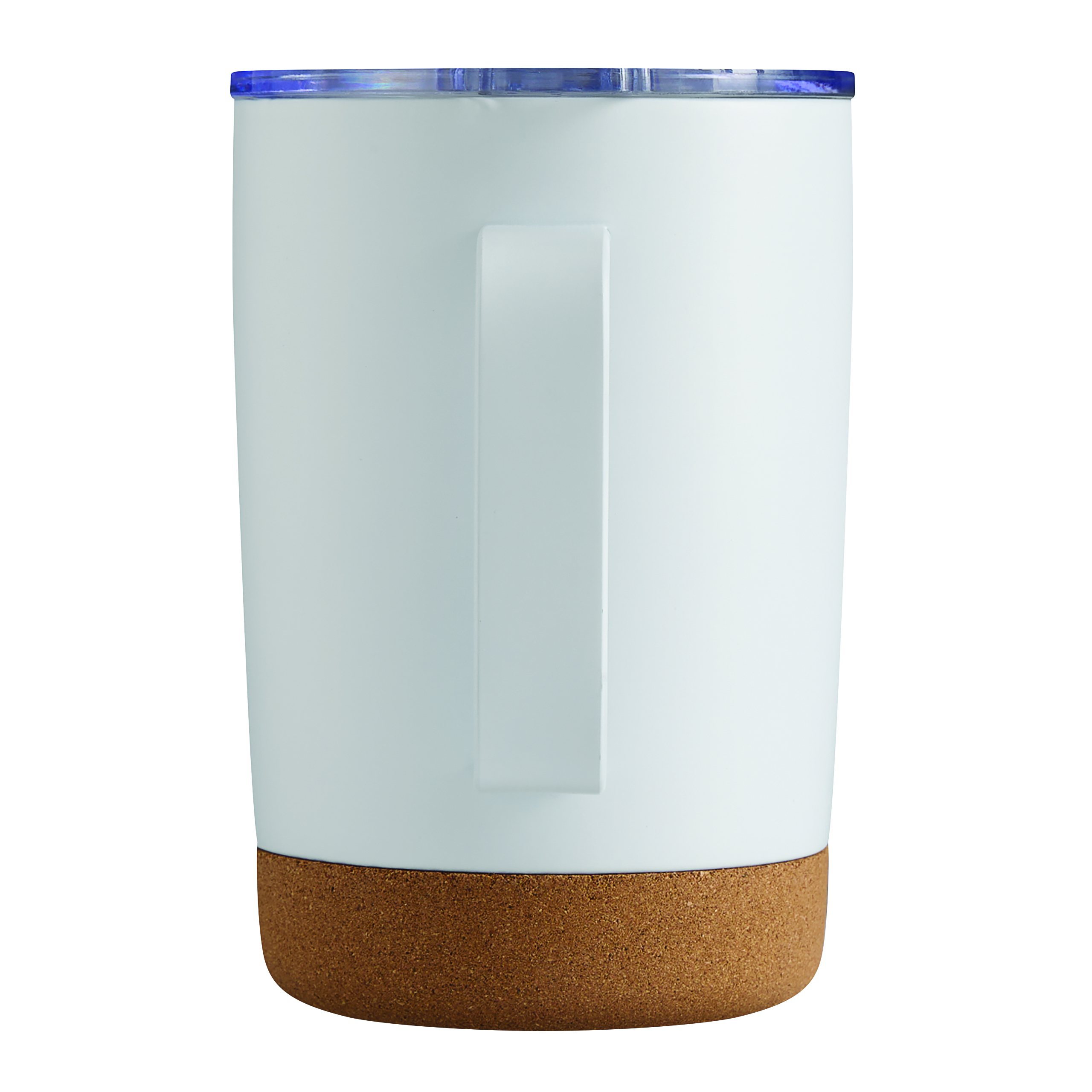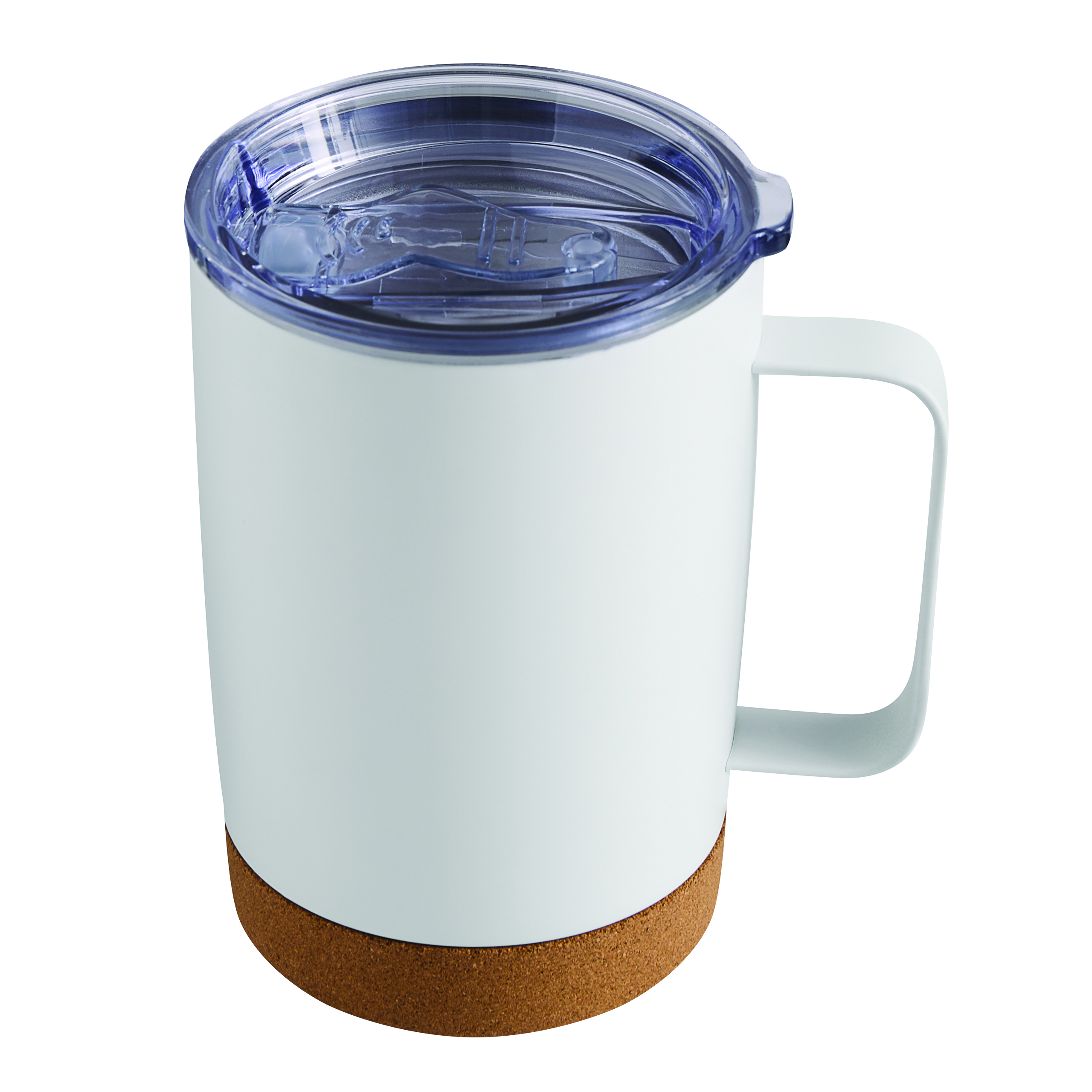 Próżniowy kubek STEELJOURNEY, z podwójną izolacją. Wewnątrz i na zewnątrz wykonany ze stali nierdzewnej, z korkowym dnem i praktycznym uchwytem. Posiada plastikową pokrywę z silikonowym pierścieniem uszczelniającym i zintegrowanym przesuwanym otworem do picia. O pojemności ok. 350 ml. Utrzymuje ciepło przez ok. 4 godziny i zimno nawet do 8. Zapakowany jest w pudełko.