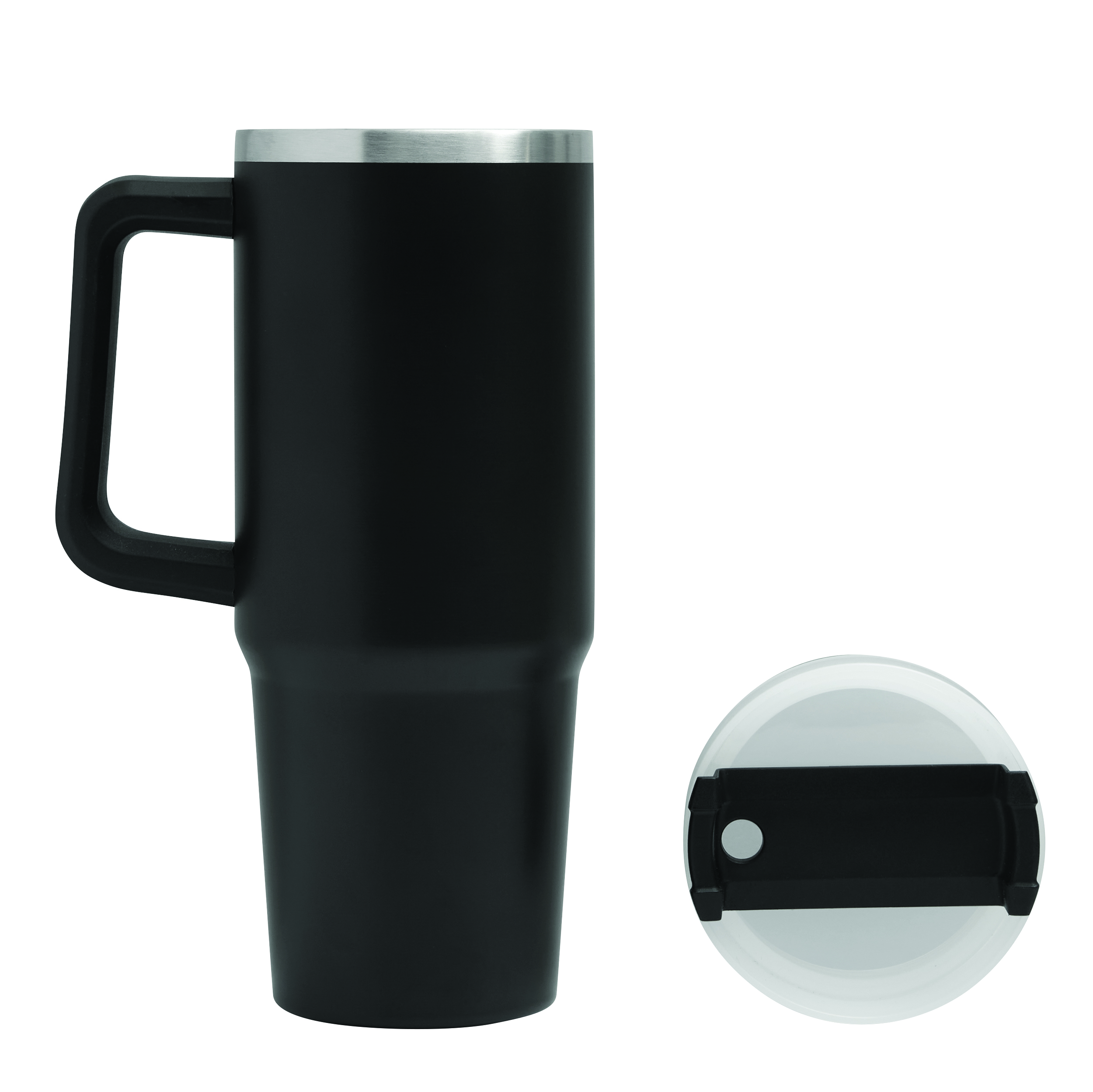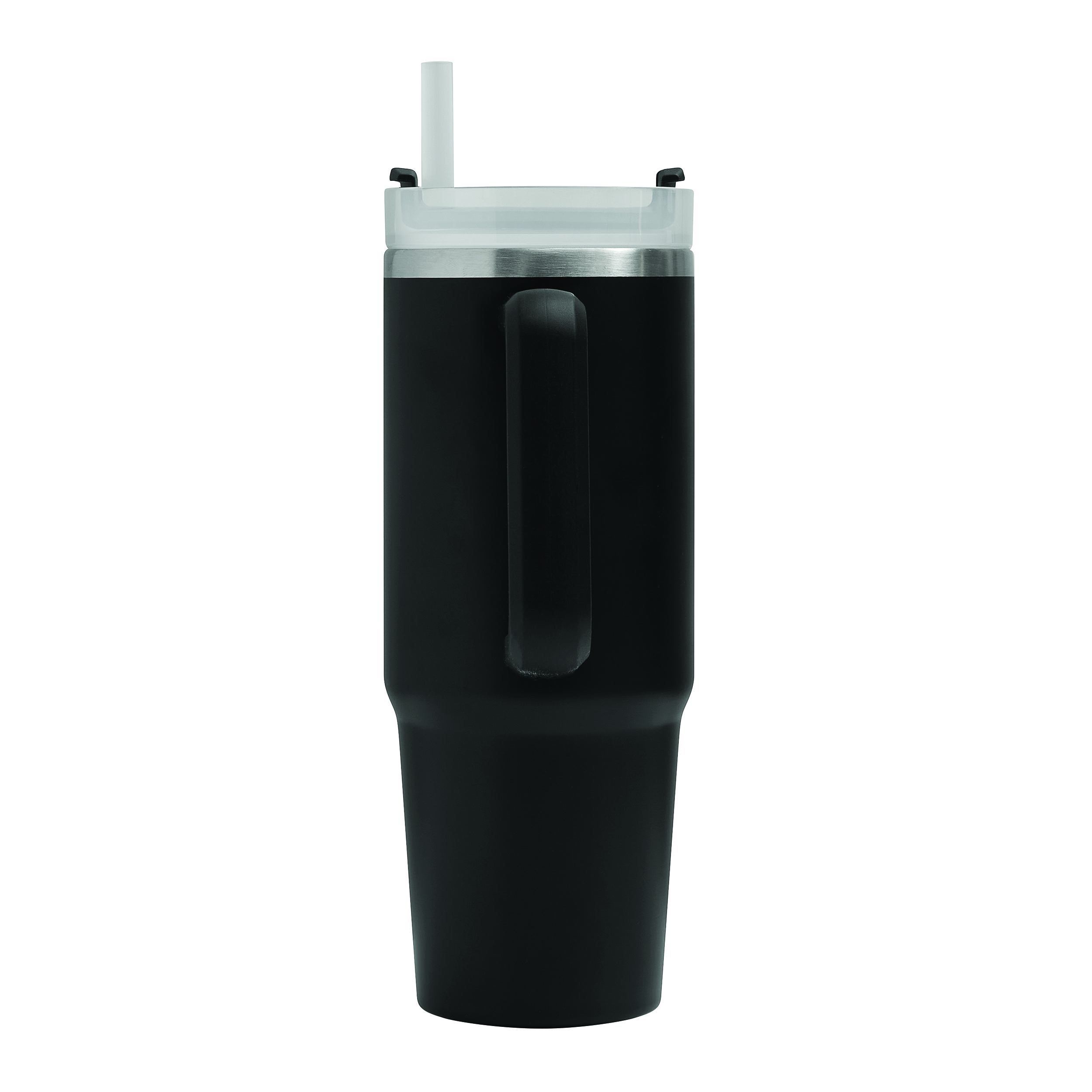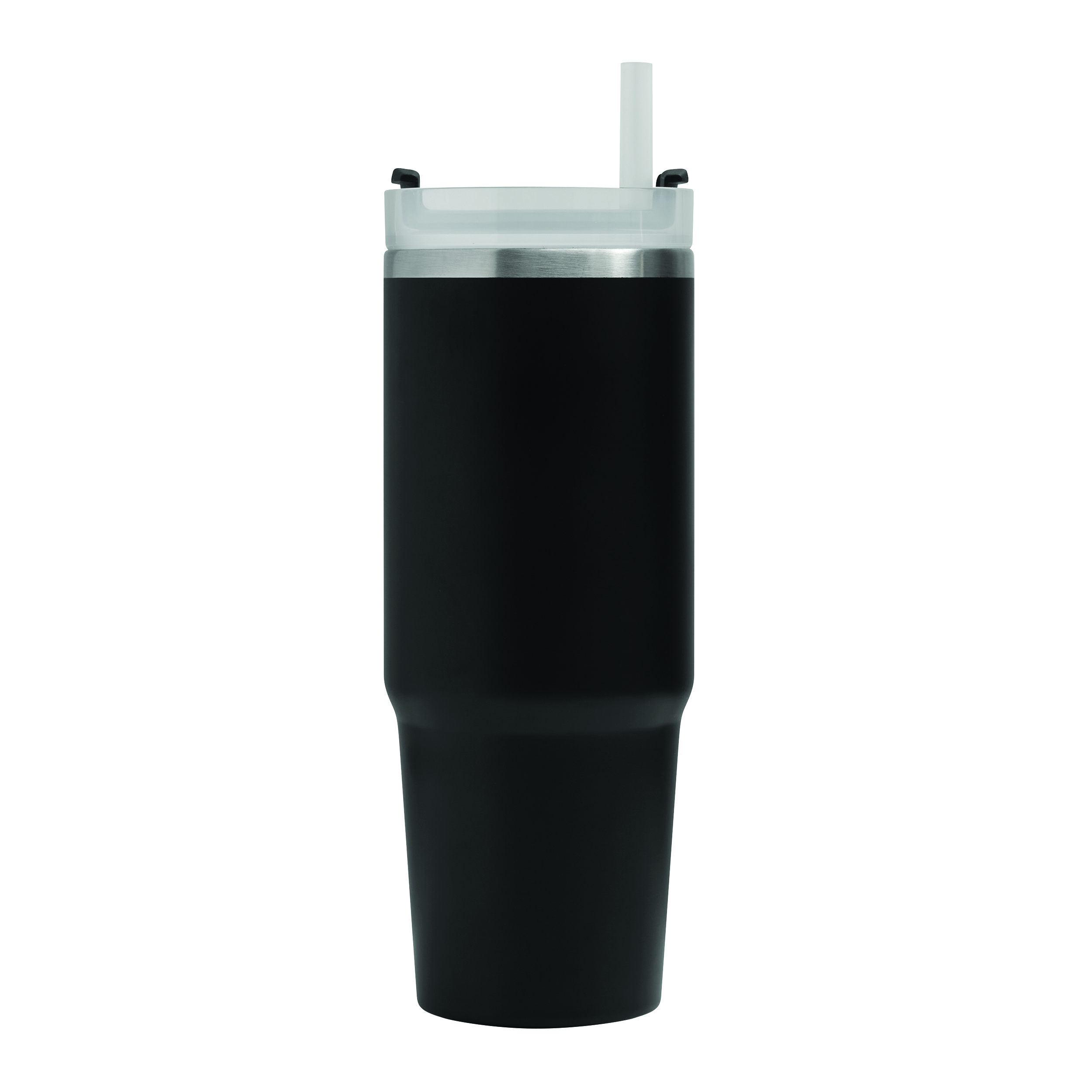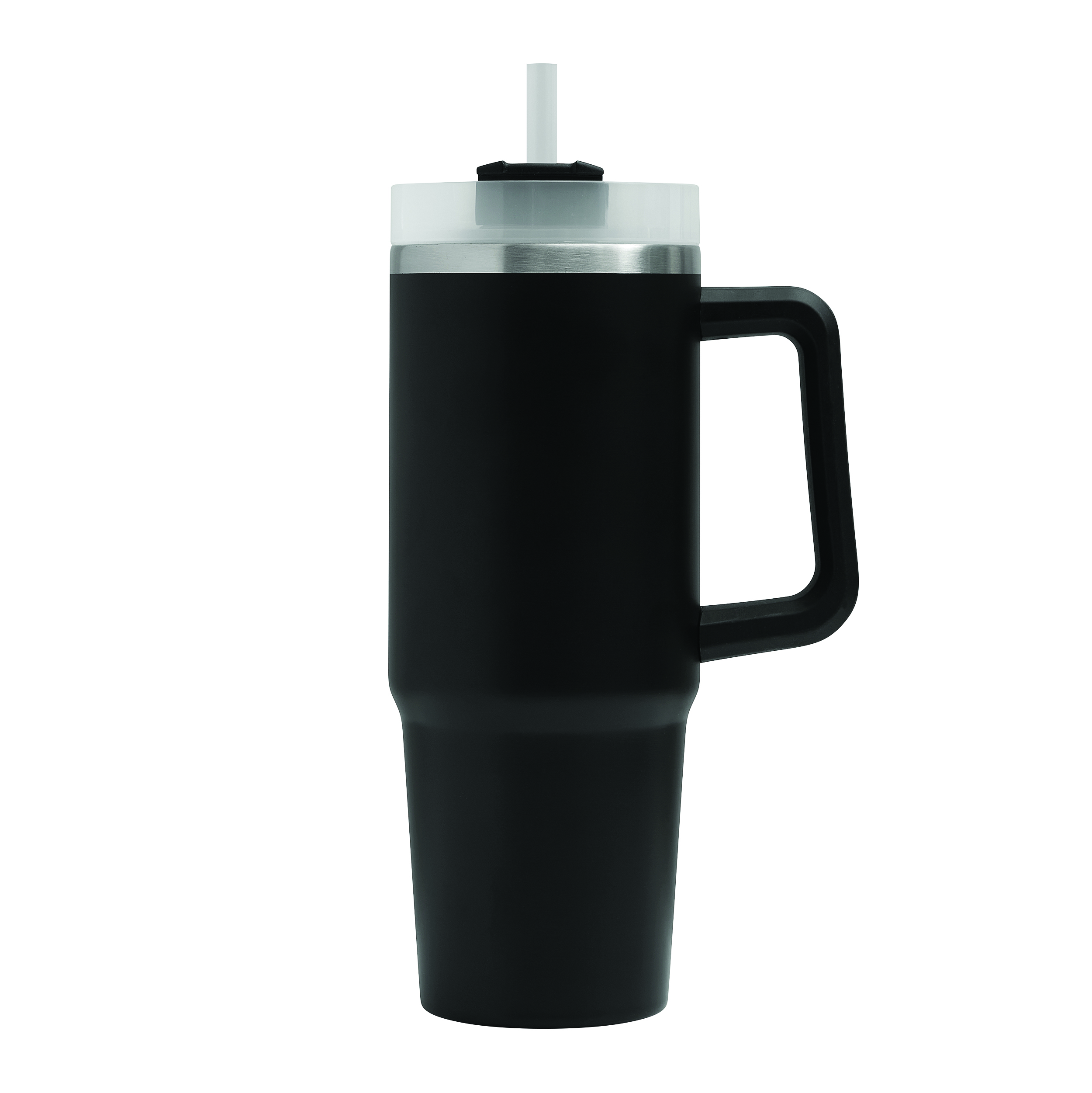 Próżniowy kubek do picia DRINK DELUXE. Z podwójną izolacją – na zewnątrz i wewnątrz wykonany jest ze stali nierdzewnej. Posiada praktyczny uchwyt i szczelną, przezroczystą, plastikową pokrywkę z silikonową uszczelką. Ma zarówno wbudowany otwór do picia, jak i słomkę. Pojemność butelki to ok. 900 ml.