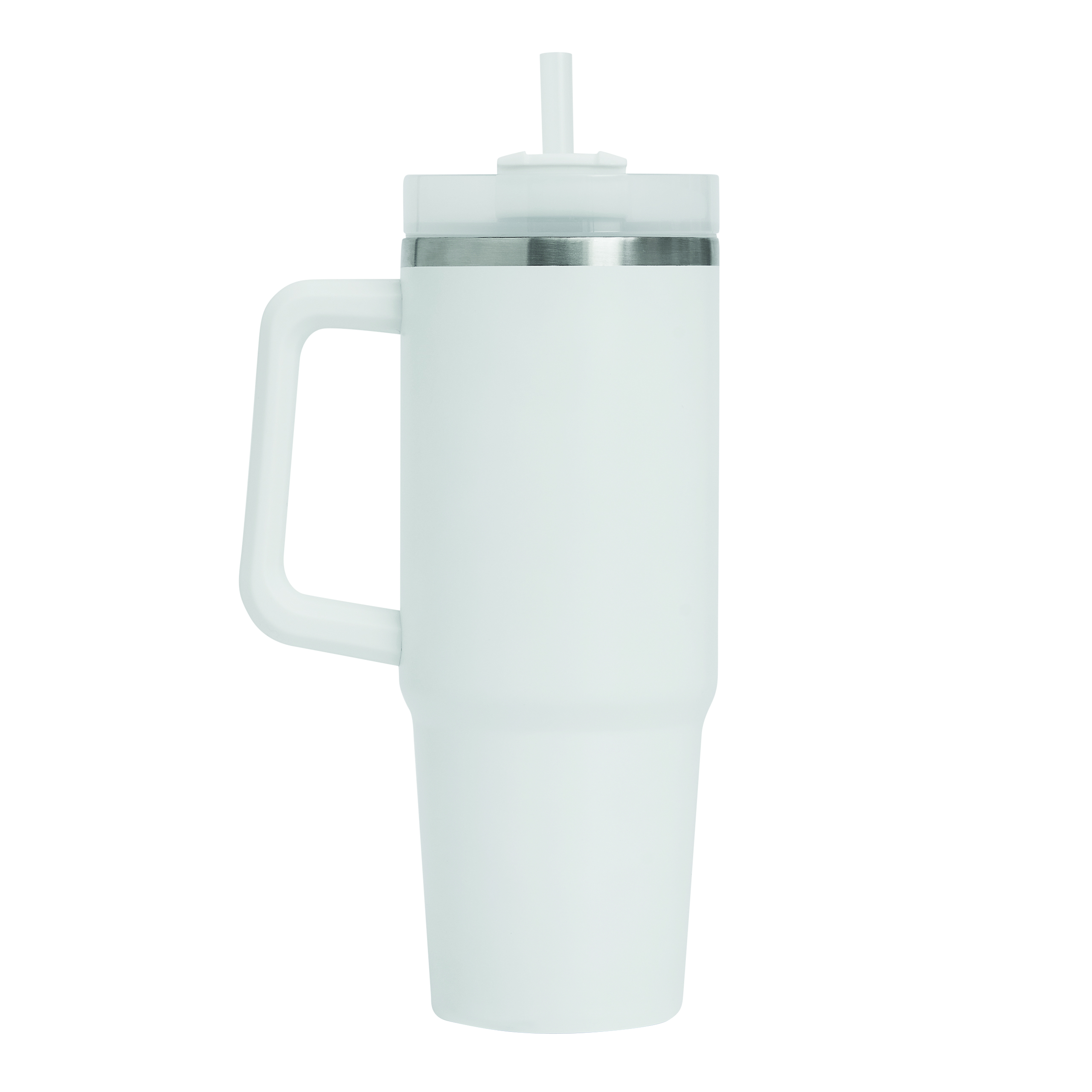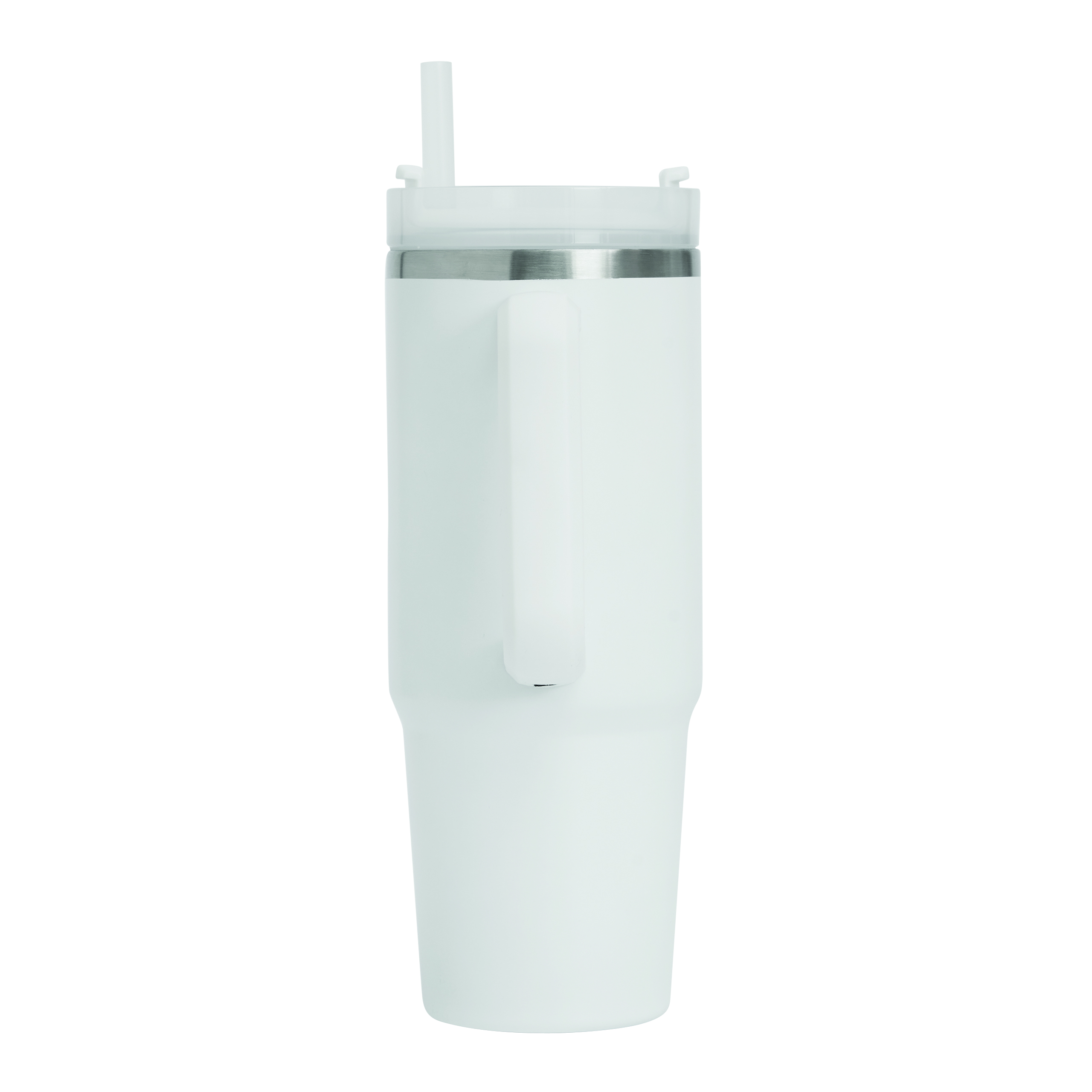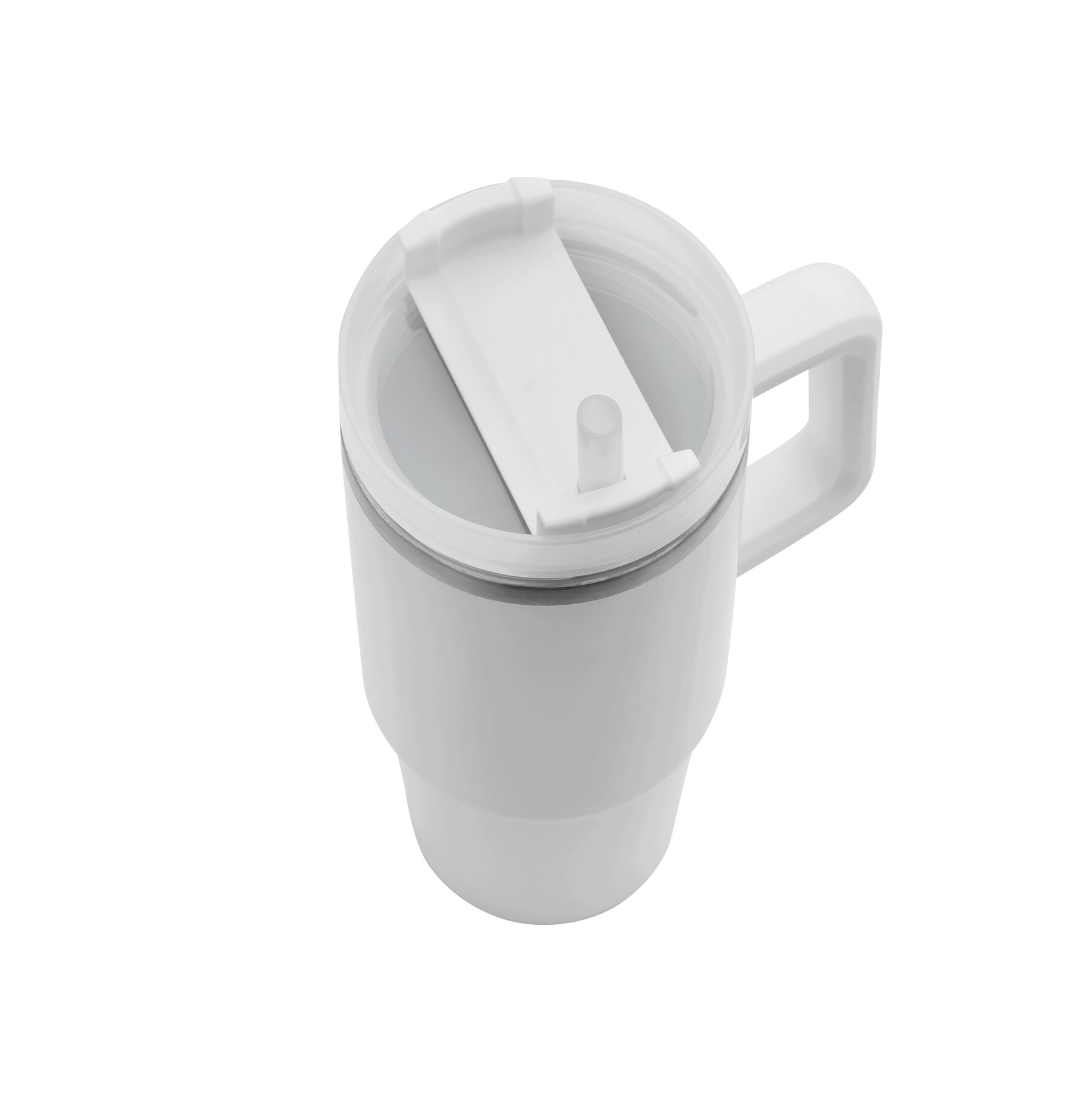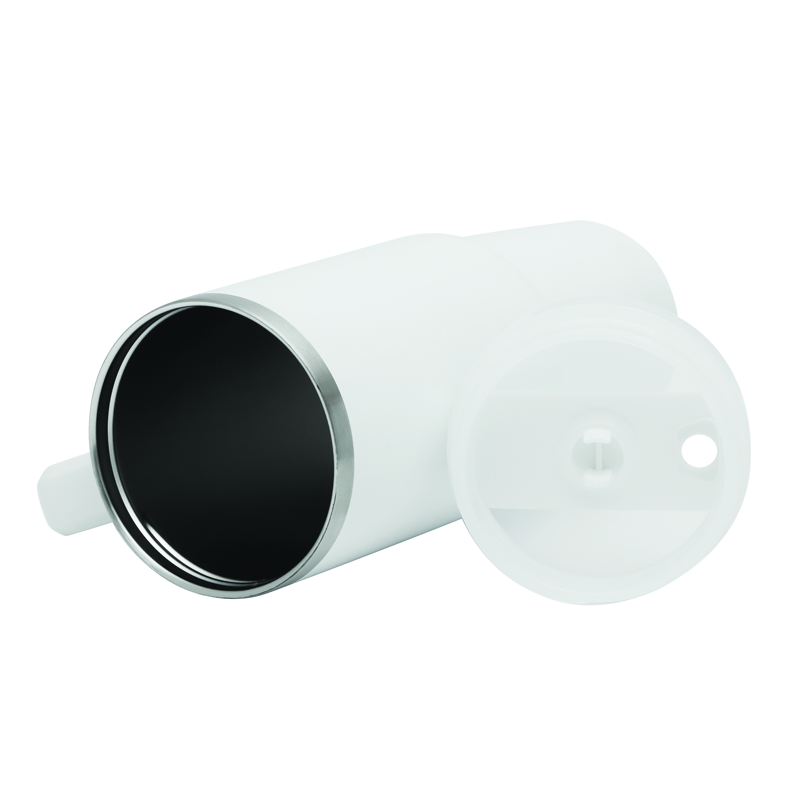 Próżniowy kubek do picia DRINK DELUXE. Z podwójną izolacją – na zewnątrz i wewnątrz wykonany jest ze stali nierdzewnej. Posiada praktyczny uchwyt i szczelną, przezroczystą, plastikową pokrywkę z silikonową uszczelką. Ma zarówno wbudowany otwór do picia, jak i słomkę. Pojemność butelki to ok. 900 ml.