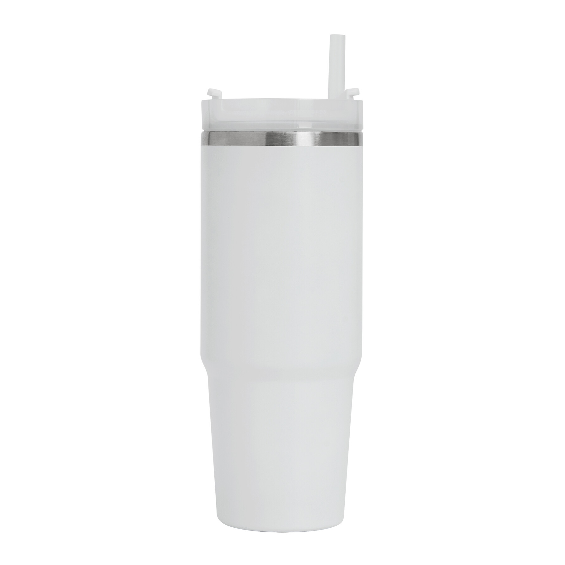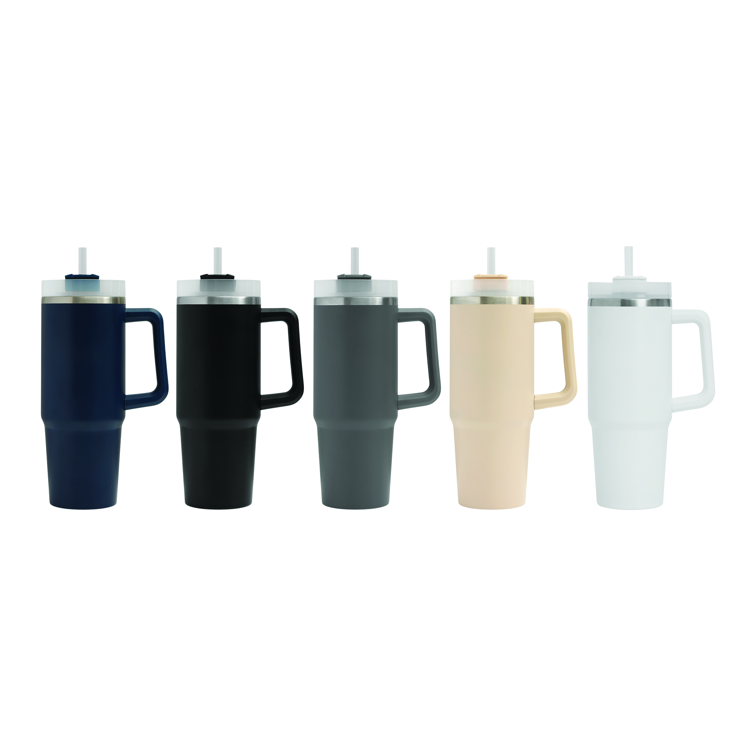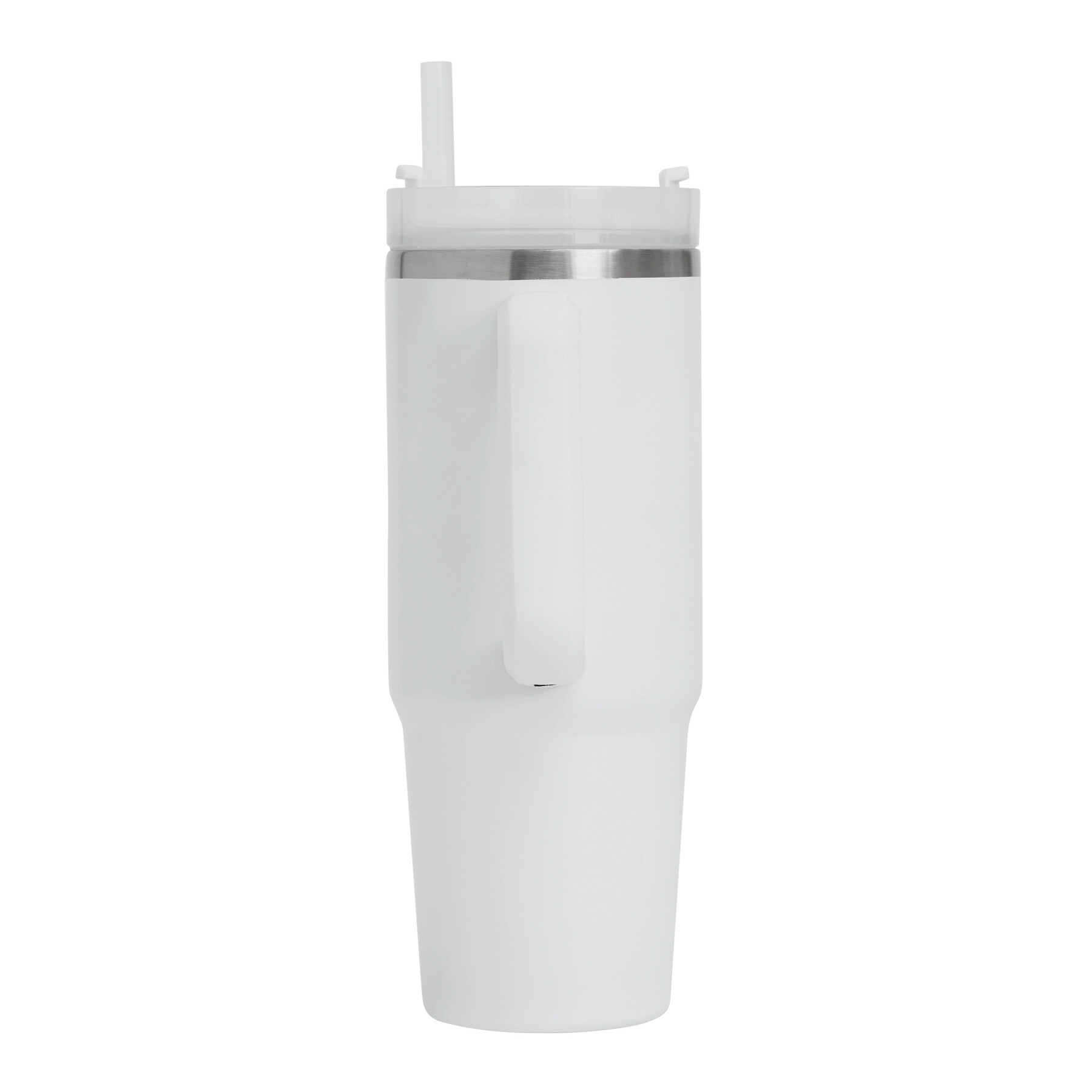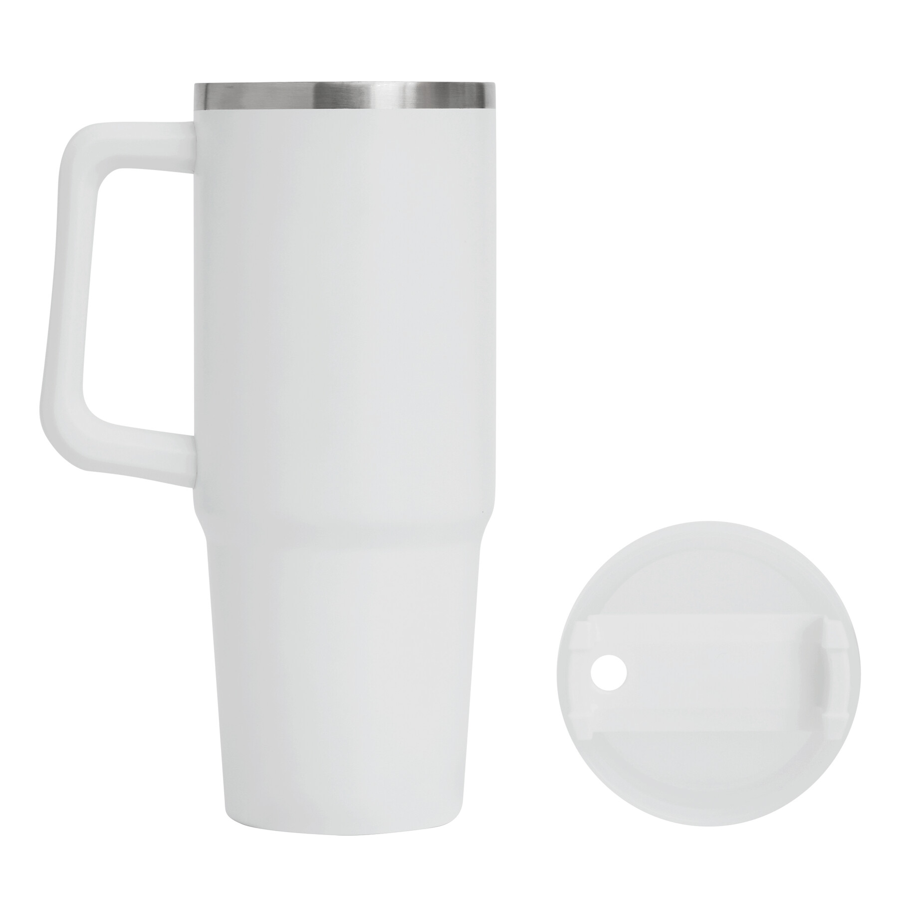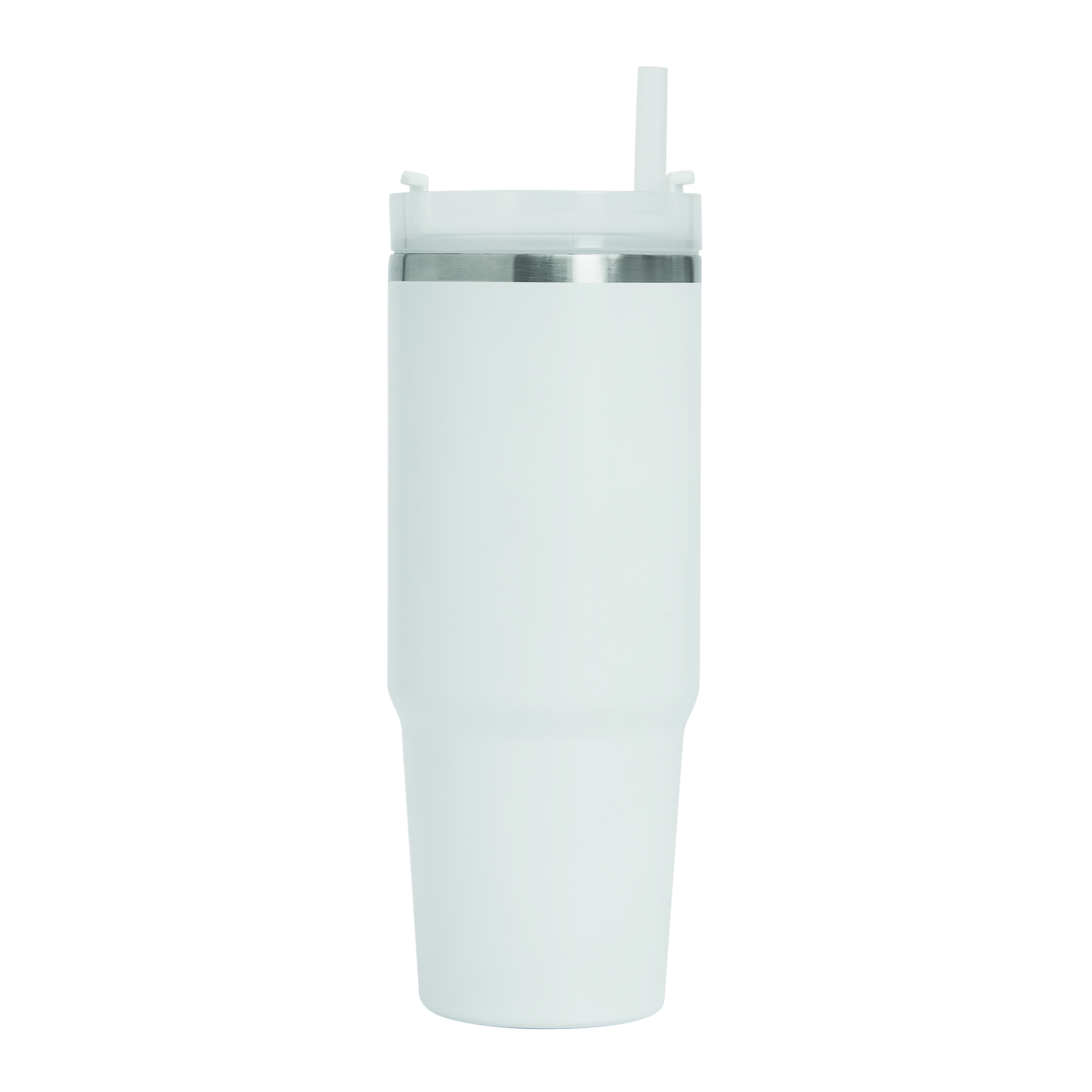 Próżniowy kubek do picia DRINK DELUXE. Z podwójną izolacją – na zewnątrz i wewnątrz wykonany jest ze stali nierdzewnej. Posiada praktyczny uchwyt i szczelną, przezroczystą, plastikową pokrywkę z silikonową uszczelką. Ma zarówno wbudowany otwór do picia, jak i słomkę. Pojemność butelki to ok. 900 ml.