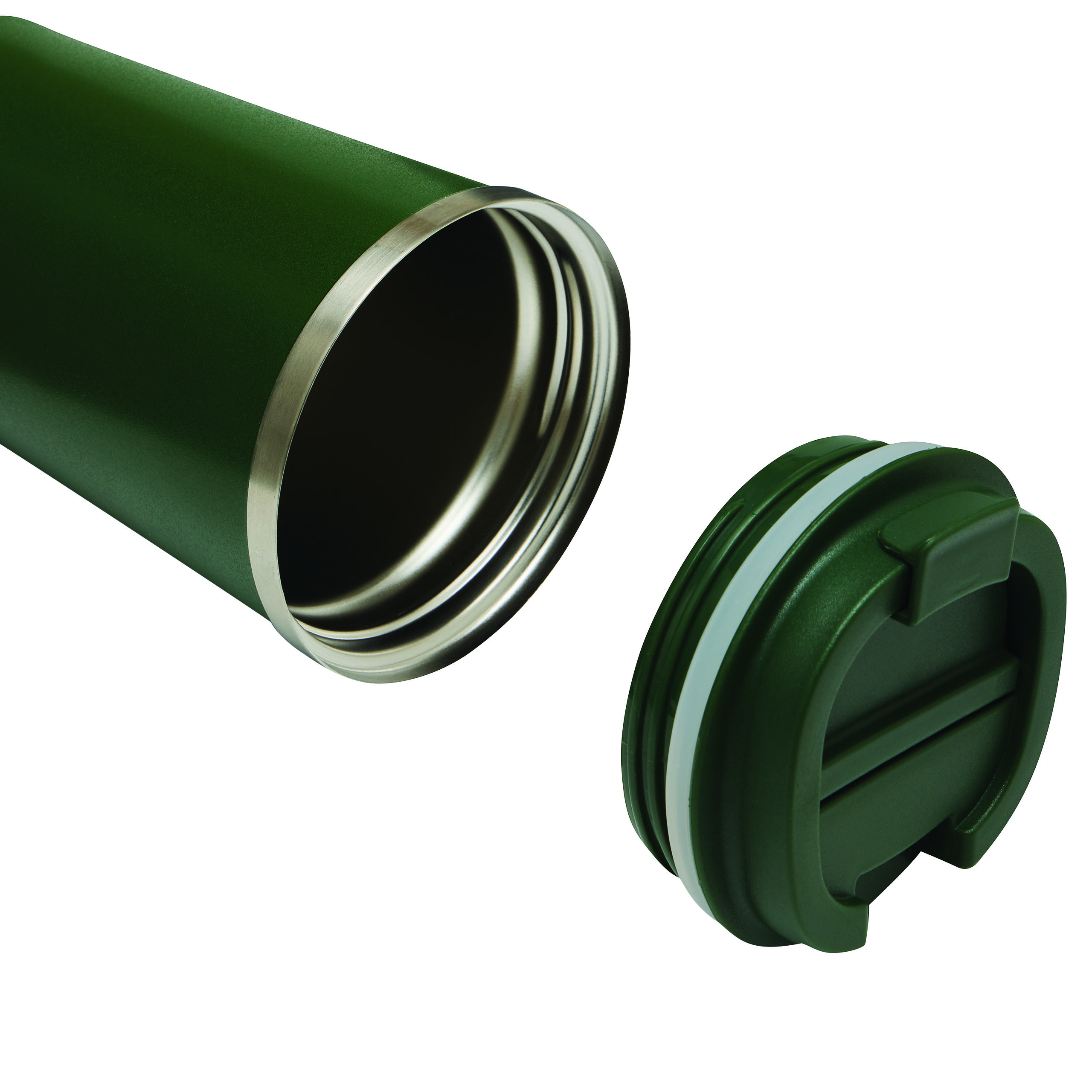 Butelka termiczna VELOMUG z podwójną izolacją. Wewnątrz wykonana jest z recyklingowanej stali nierdzewnej, a na zewnątrz ze stali nierdzewnej. Ma bezpieczną zakrętkę w dopasowanym kolorze, silikonowy pierścień uszczelniający i wbudowany otwór do picia. Posiada powlekane dno zapewniające dobrą przyczepność i pojemność ok. 350 ml. Utrzymuje ciepło przez ok. 8 godzin, a zimno do 12. Zapakowana jest w pudełko.