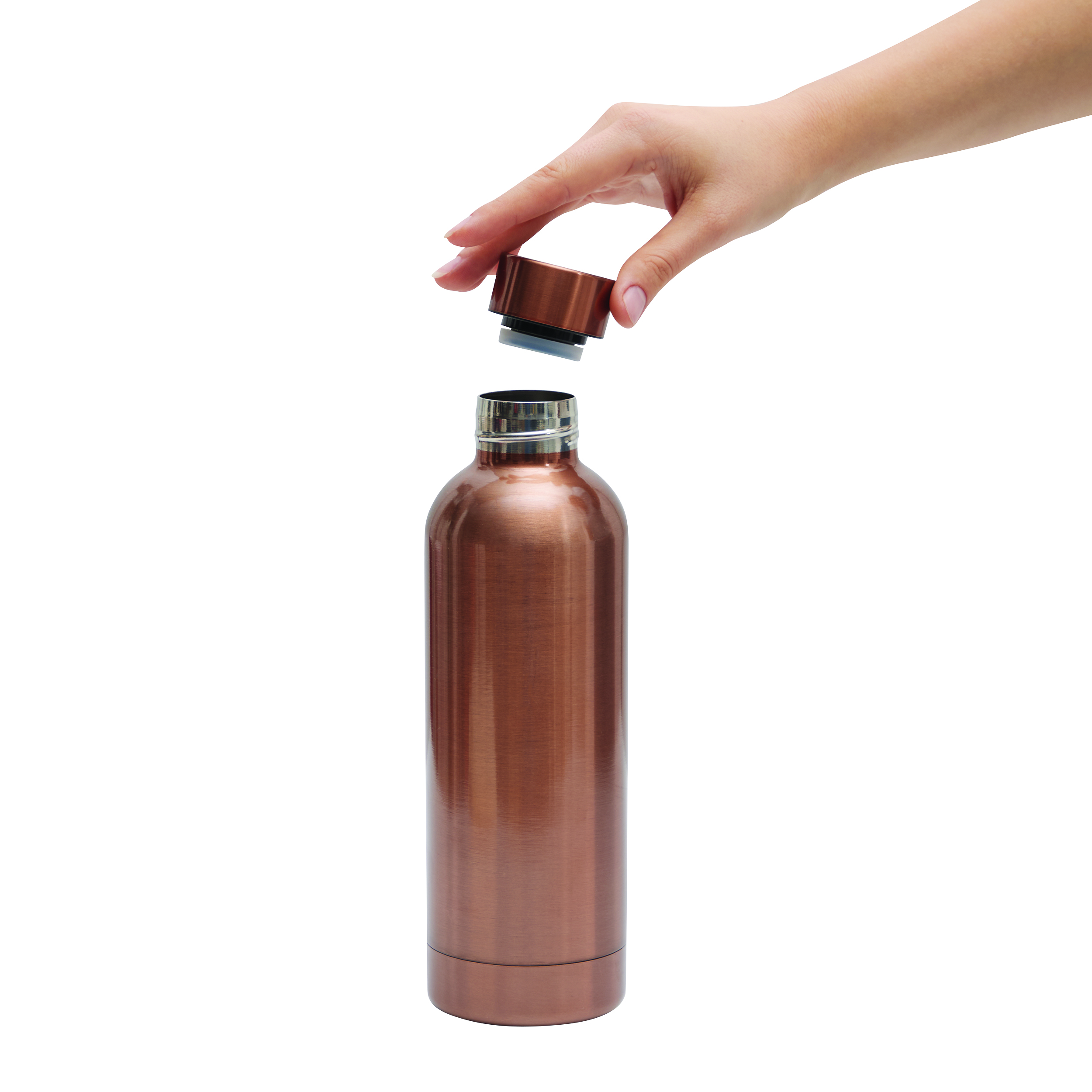 Próżniowa butelka termiczna GET WARM, z podwójną izolacją: wewnątrz i na zewnątrz wykonana jest ze stali nierdzewnej. Posiada dopasowaną kolorystycznie plastikową pokrywkę z bezpieczną zakrętką i silikonowym pierścieniem uszczelniającym. Pojemność butelki to ok. 500 ml. Utrzymuje ciepło przez ok. 8 godzin, a zimno nawet do 12.