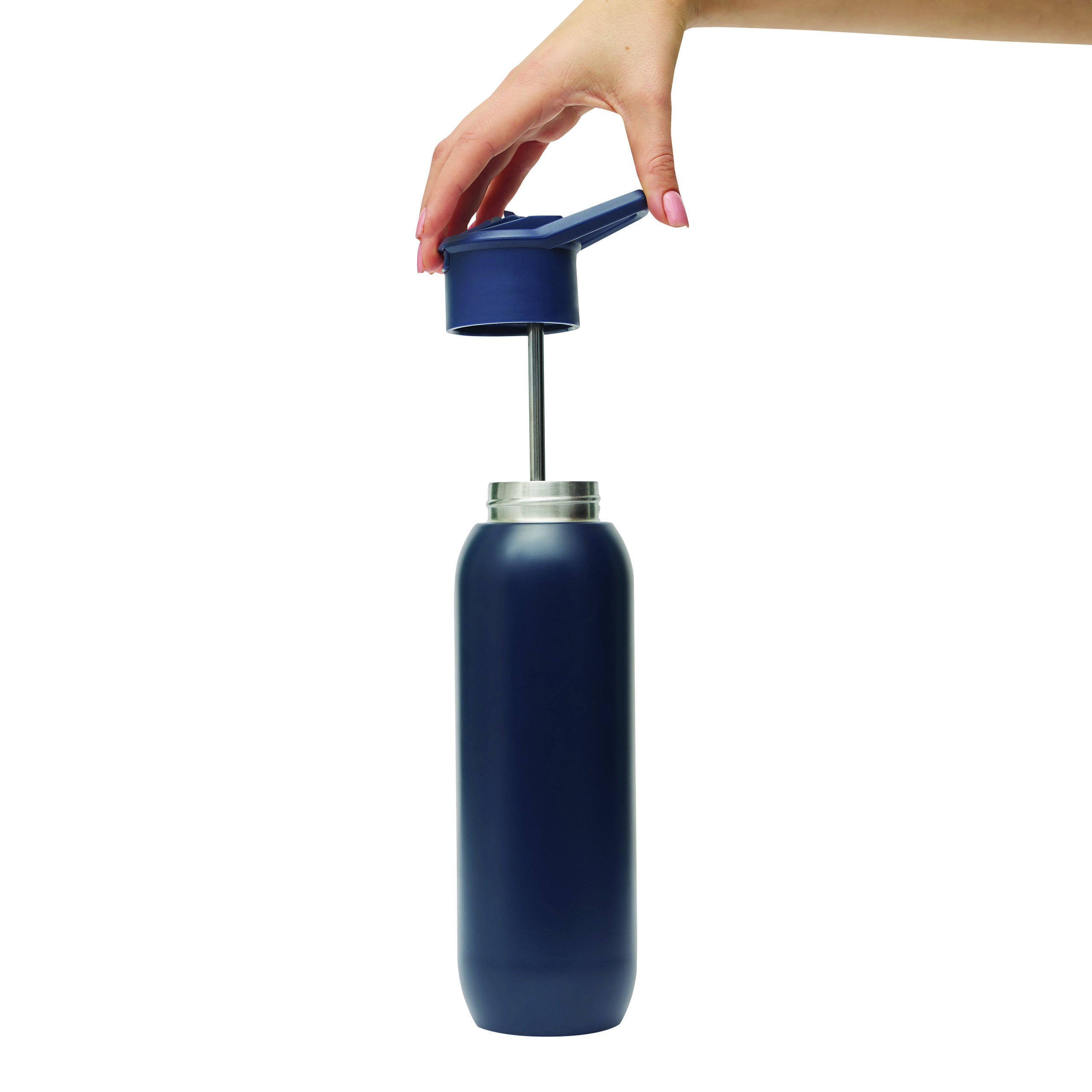 Butelka termiczna TREKSTEEL z podwójną izolacją. Wewnątrz i na zewnątrz wykonana jest ze stali nierdzewnej. Ma bezpieczną plastikową zakrętkę w dopasowanym kolorze, silikonowy pierścień uszczelniający i uchwyt do przenoszenia. Nakrętka typu flip-top ułatwia otwaranie jedną ręką. Posiada wbudowaną słomkę ze stali nierdzewnej z miękkim silikonowym ustnikiem i pojemność ok. 600 ml. Utrzymuje ciepło przez ok. 8 godzin, a zimno do 12. Zapakowana jest w pudełko.