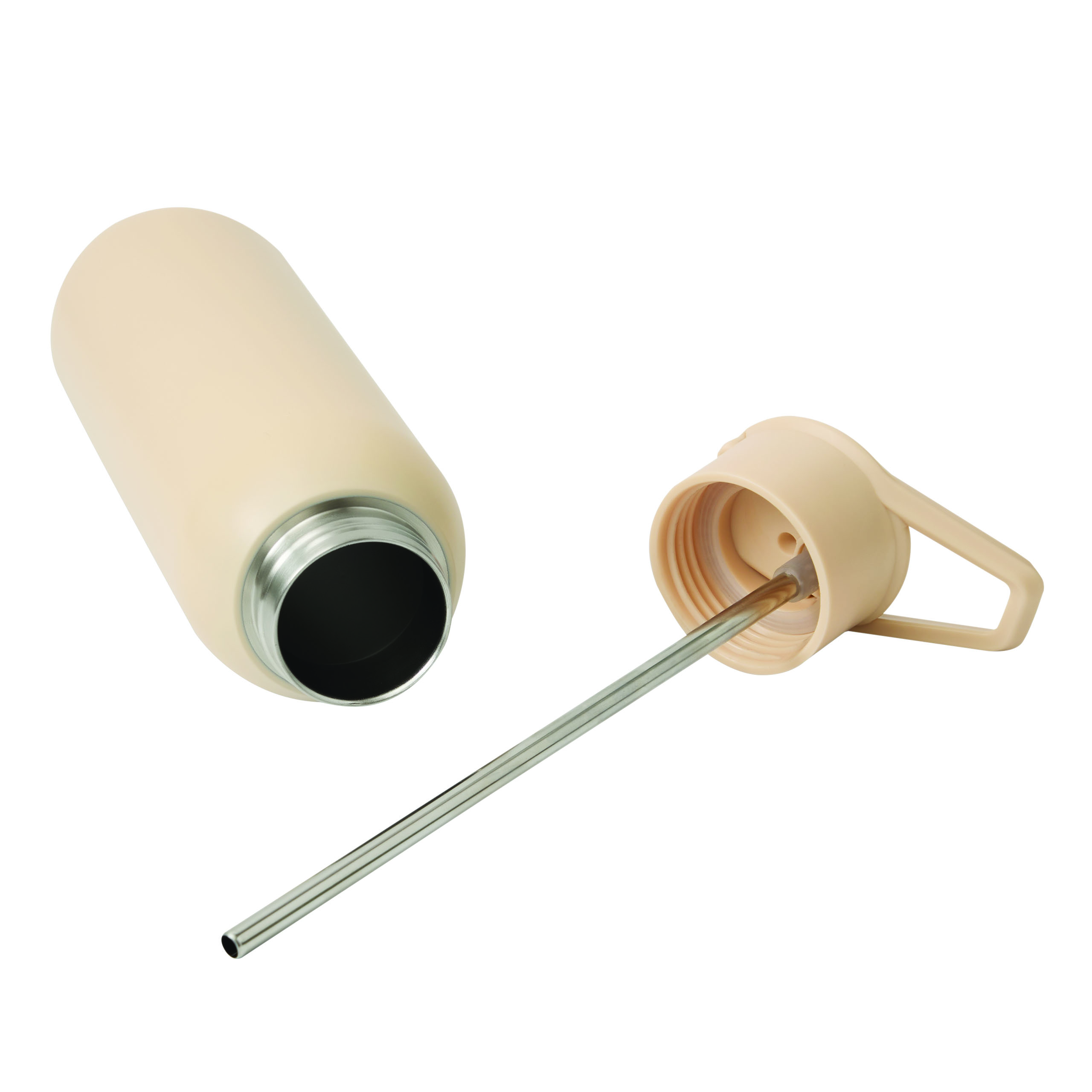 Butelka termiczna TREKSTEEL z podwójną izolacją. Wewnątrz i na zewnątrz wykonana jest ze stali nierdzewnej. Ma bezpieczną plastikową zakrętkę w dopasowanym kolorze, silikonowy pierścień uszczelniający i uchwyt do przenoszenia. Nakrętka typu flip-top ułatwia otwaranie jedną ręką. Posiada wbudowaną słomkę ze stali nierdzewnej z miękkim silikonowym ustnikiem i pojemność ok. 600 ml. Utrzymuje ciepło przez ok. 8 godzin, a zimno do 12. Zapakowana jest w pudełko.