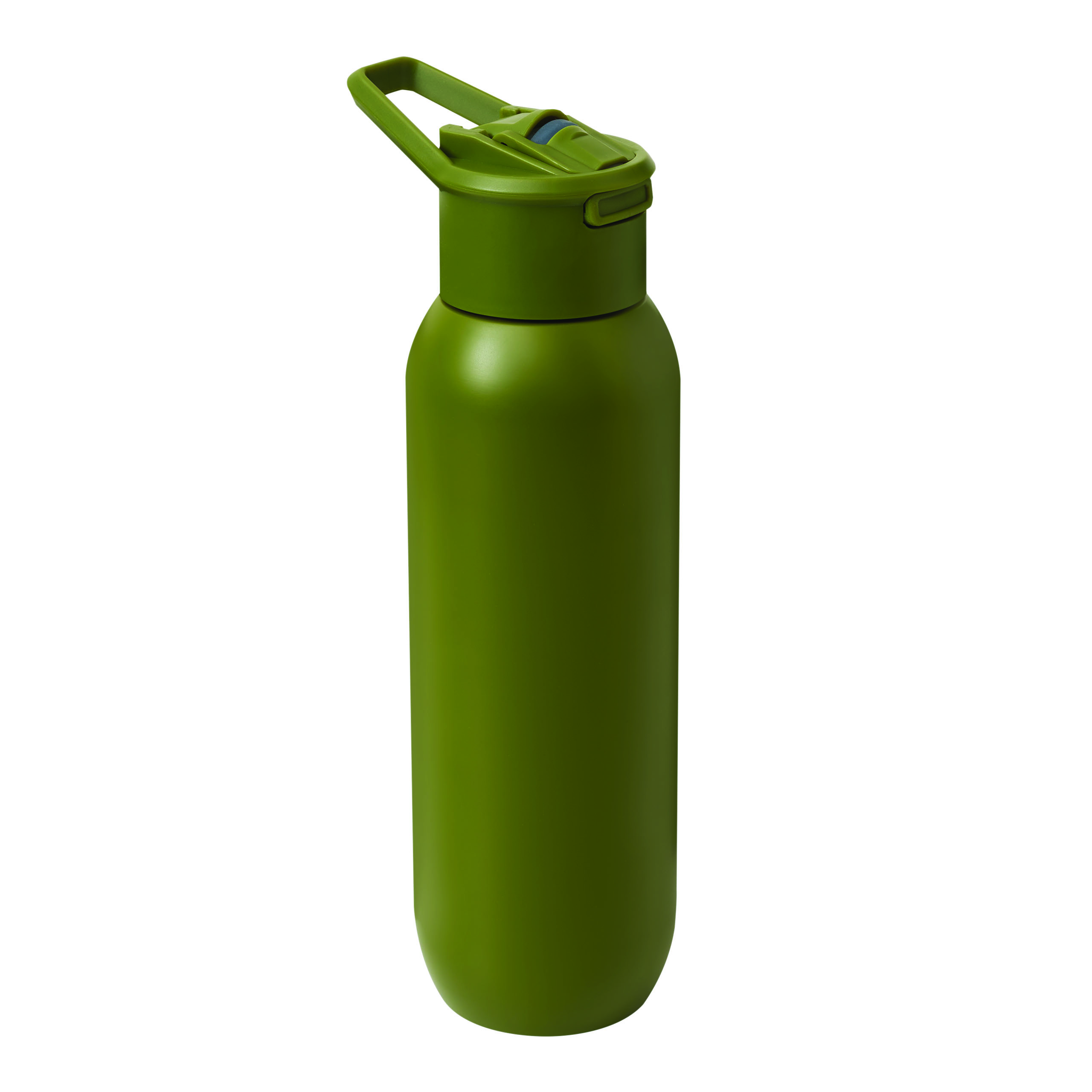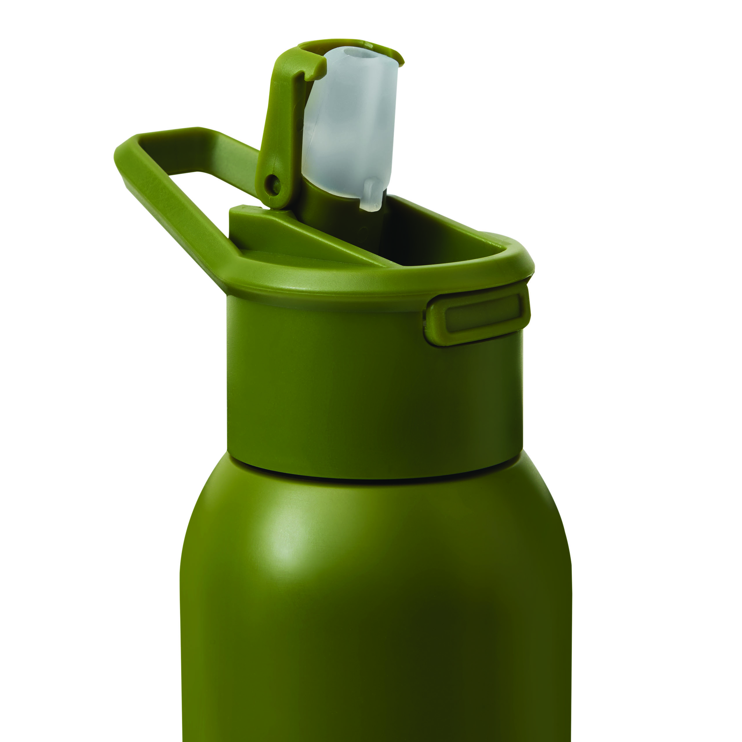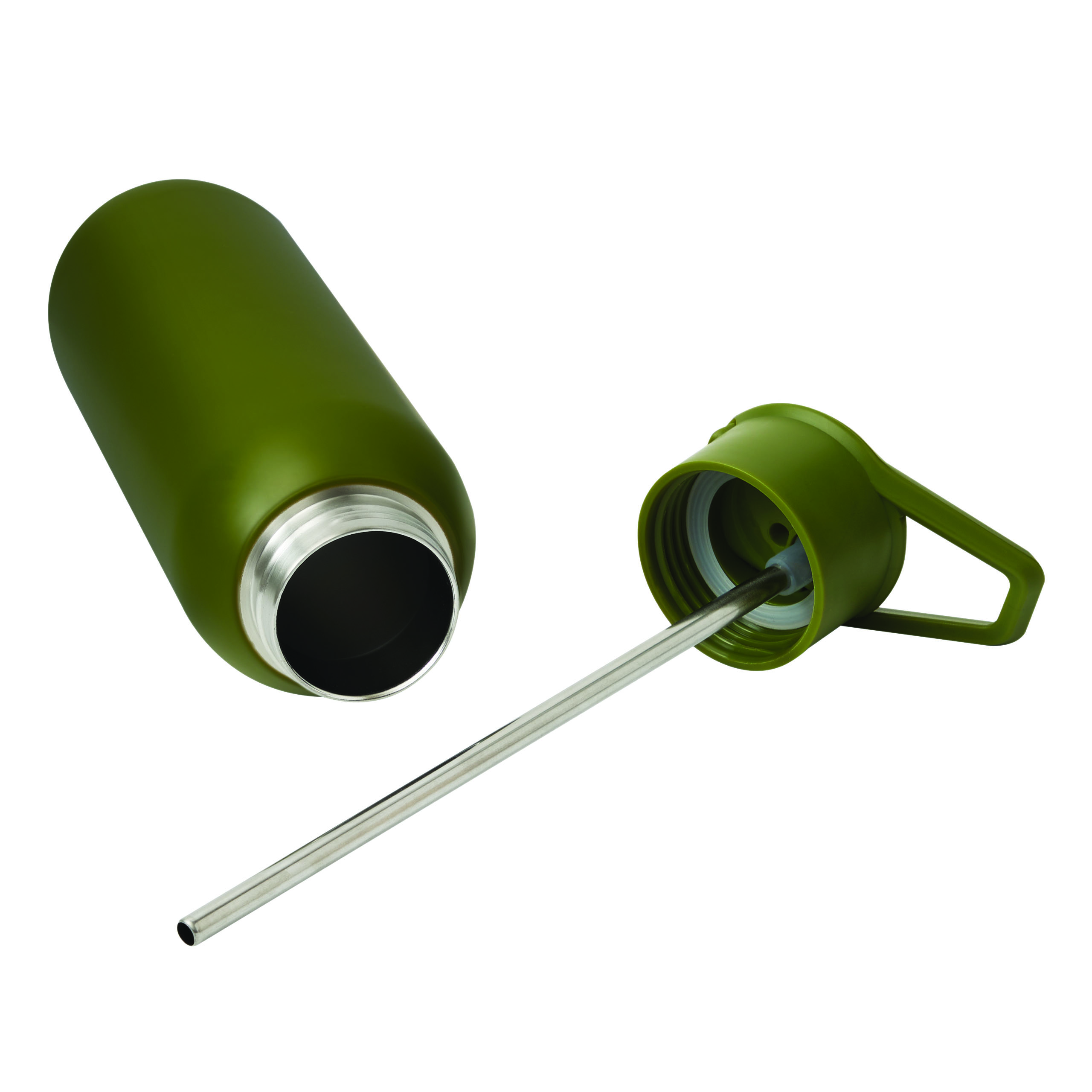 Butelka termiczna TREKSTEEL z podwójną izolacją. Wewnątrz i na zewnątrz wykonana jest ze stali nierdzewnej. Ma bezpieczną plastikową zakrętkę w dopasowanym kolorze, silikonowy pierścień uszczelniający i uchwyt do przenoszenia. Nakrętka typu flip-top ułatwia otwaranie jedną ręką. Posiada wbudowaną słomkę ze stali nierdzewnej z miękkim silikonowym ustnikiem i pojemność ok. 600 ml. Utrzymuje ciepło przez ok. 8 godzin, a zimno do 12. Zapakowana jest w pudełko.