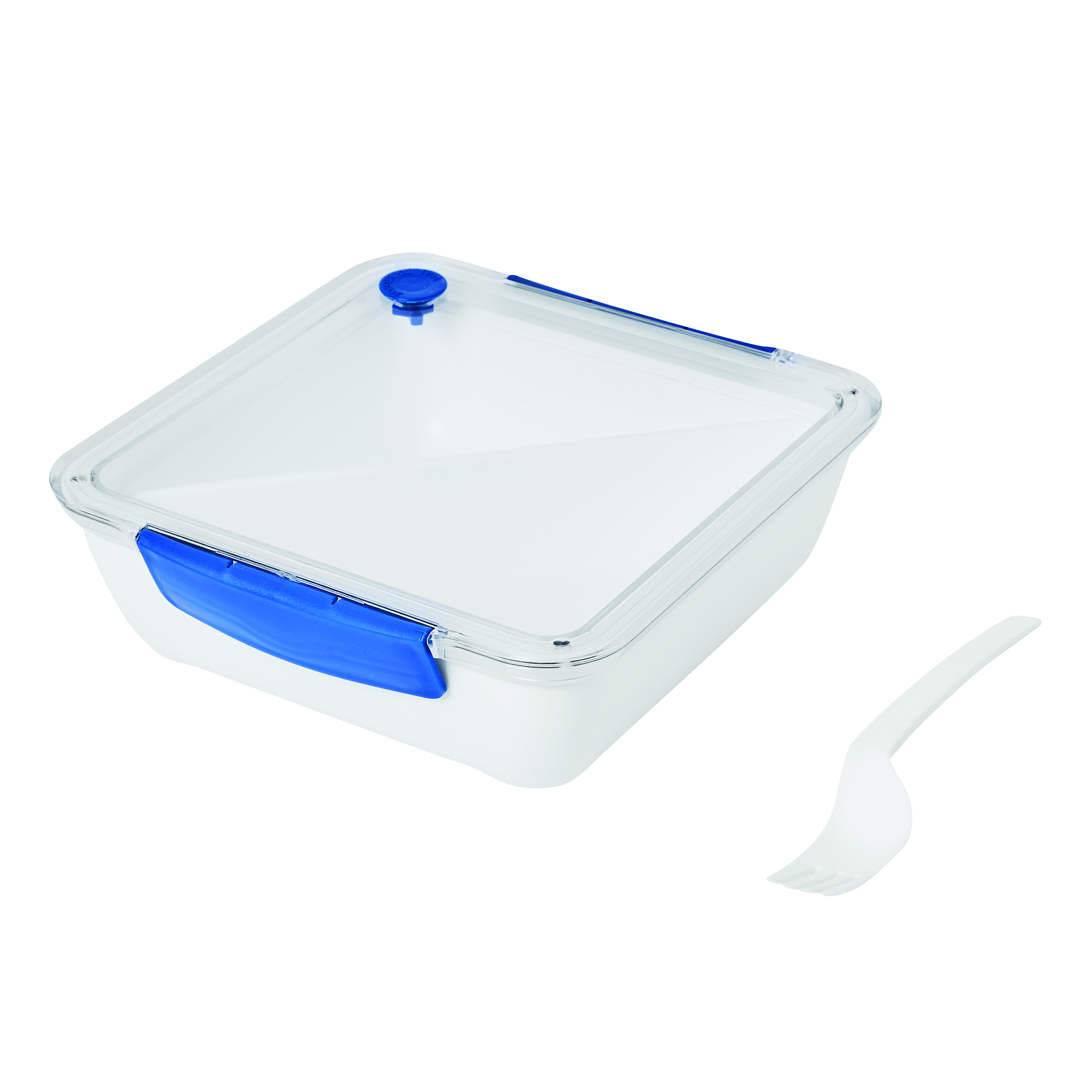 Pojemnik na lunch DELICIOUS z wydzieloną przegrodą (ok. 400 ml), plastikowym widelcem w zestawie. Całkowita pojemność ok. 1000 ml, posiada wywietrznik w pokrywie.
