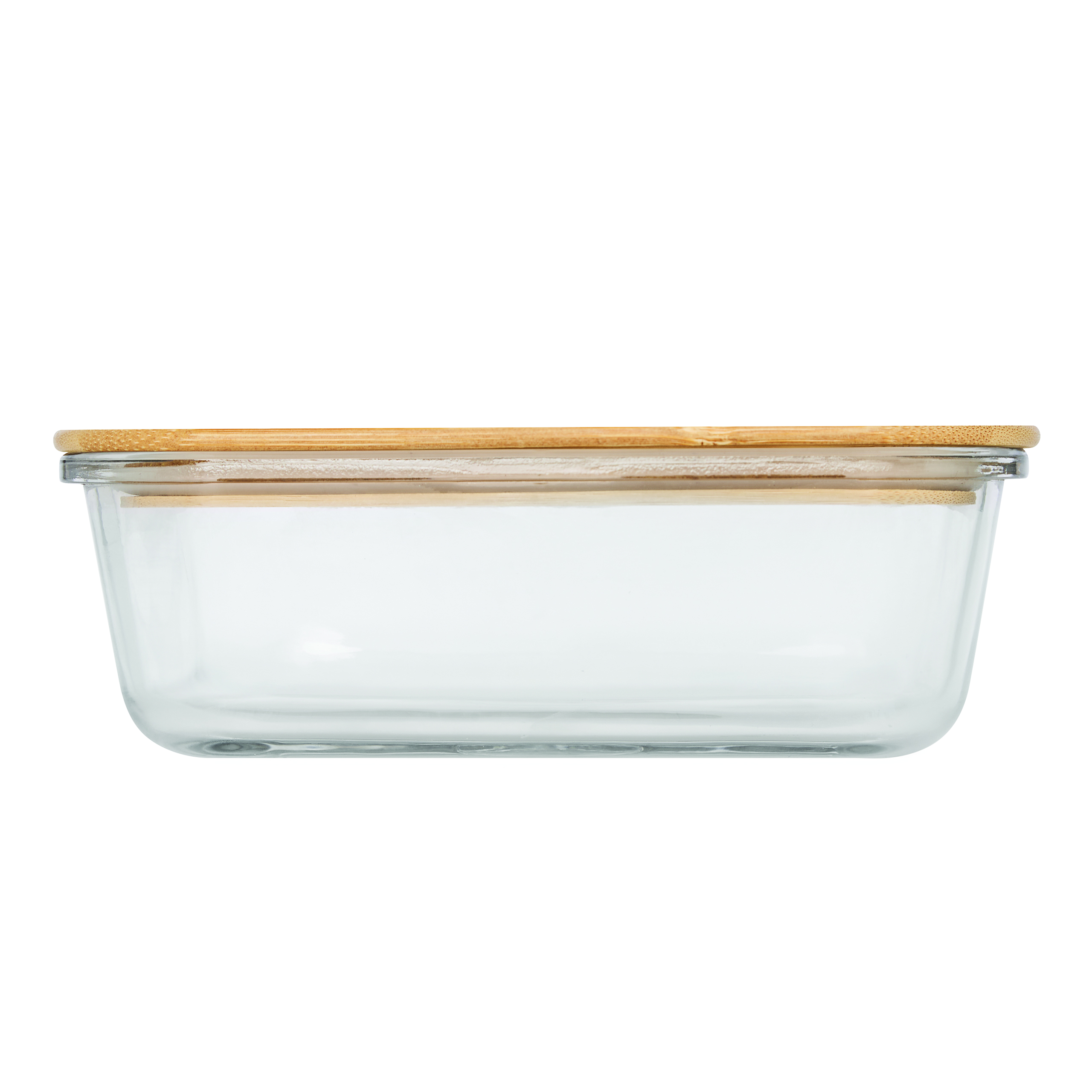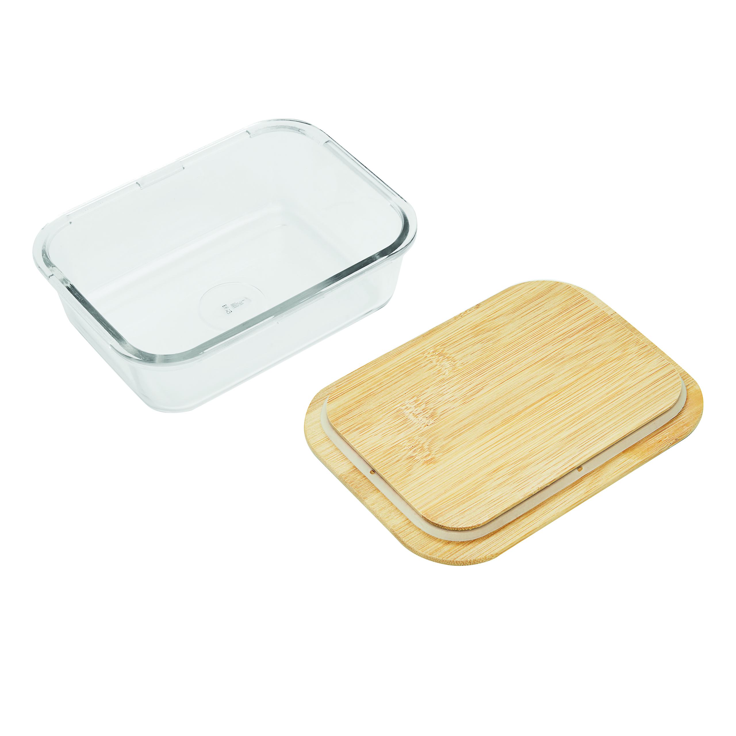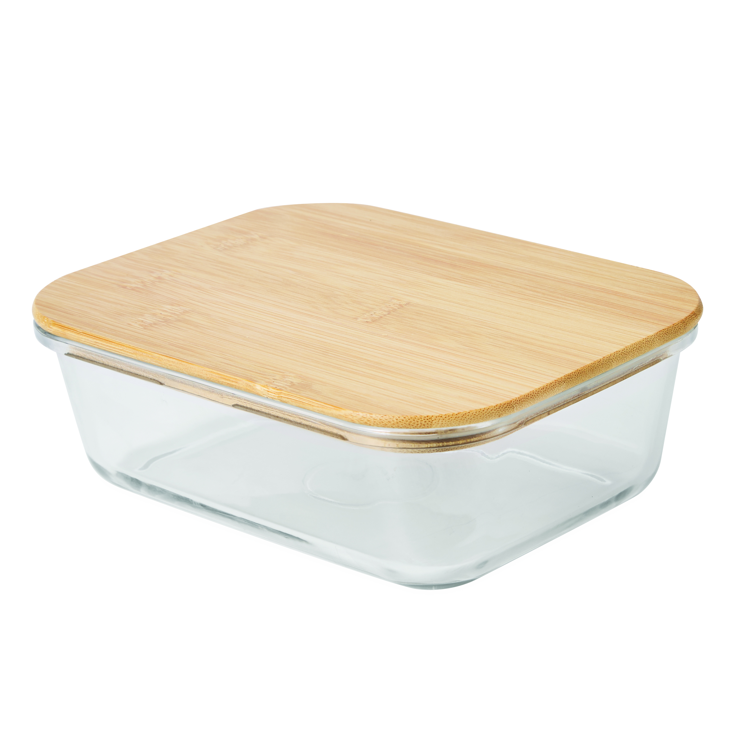 Pudełko na lunch ROSILI L z bambusową pokrywką. Pojemność ok. 1060 ml. Szklane naczynie nadaje się do kuchenki mikrofalowej i piekarnika.