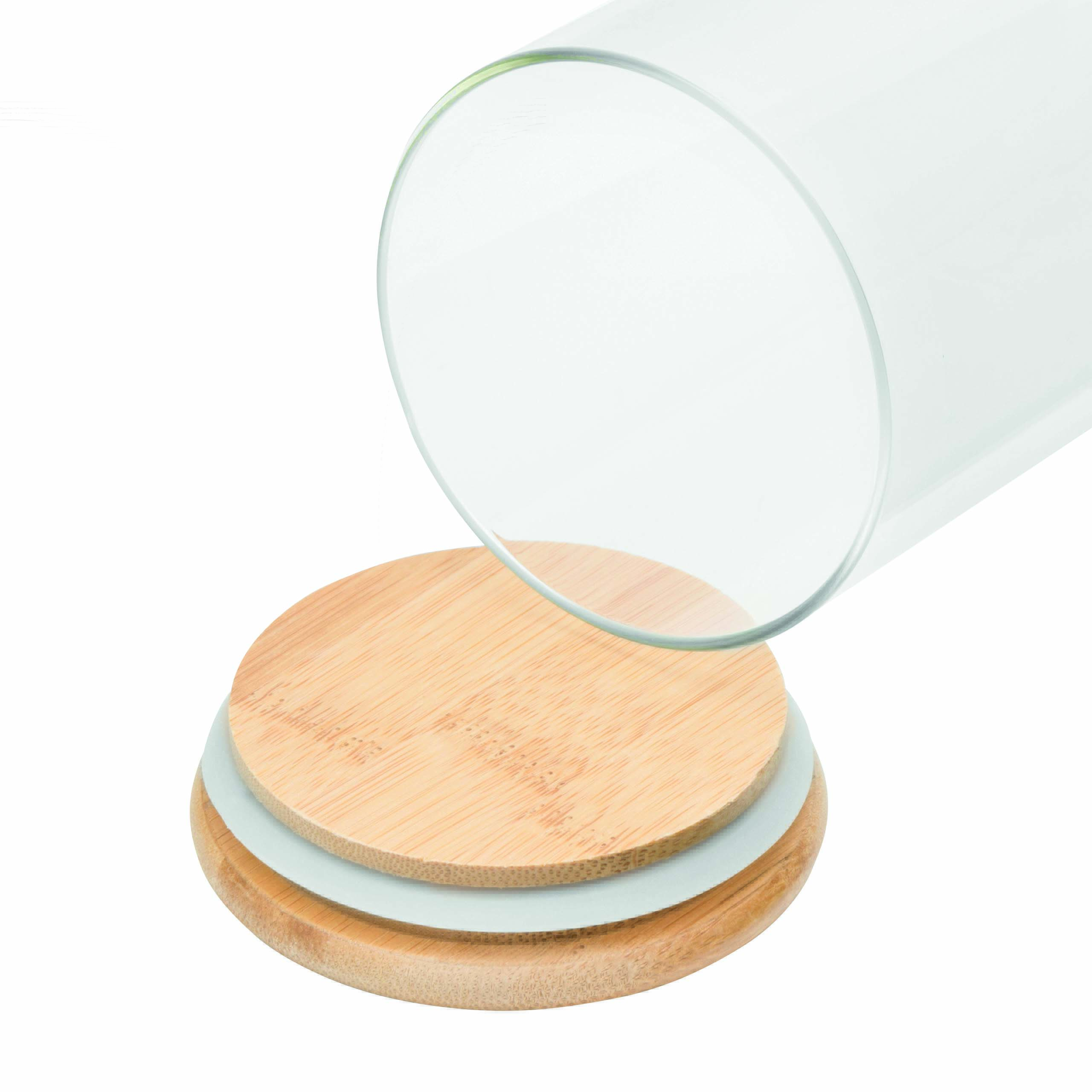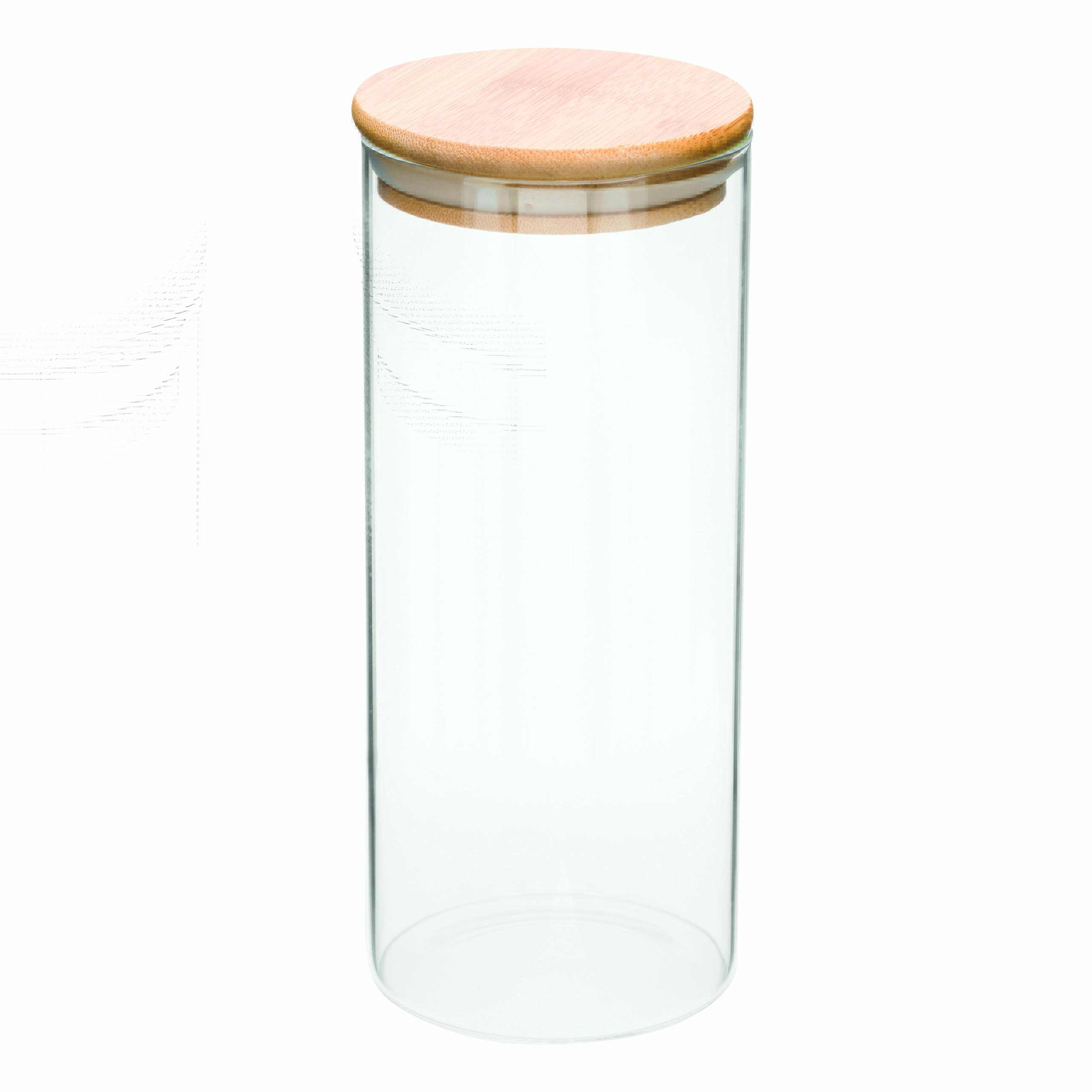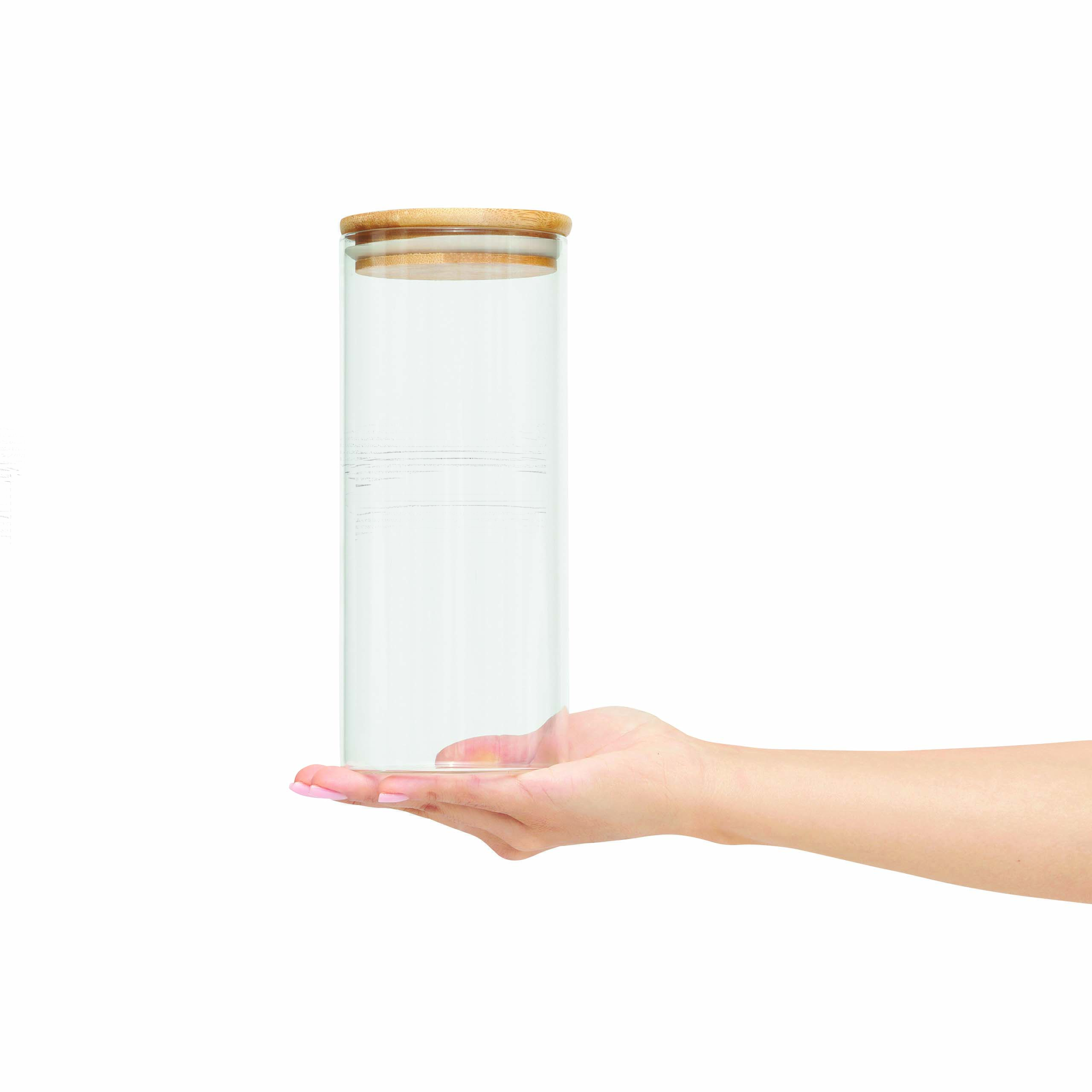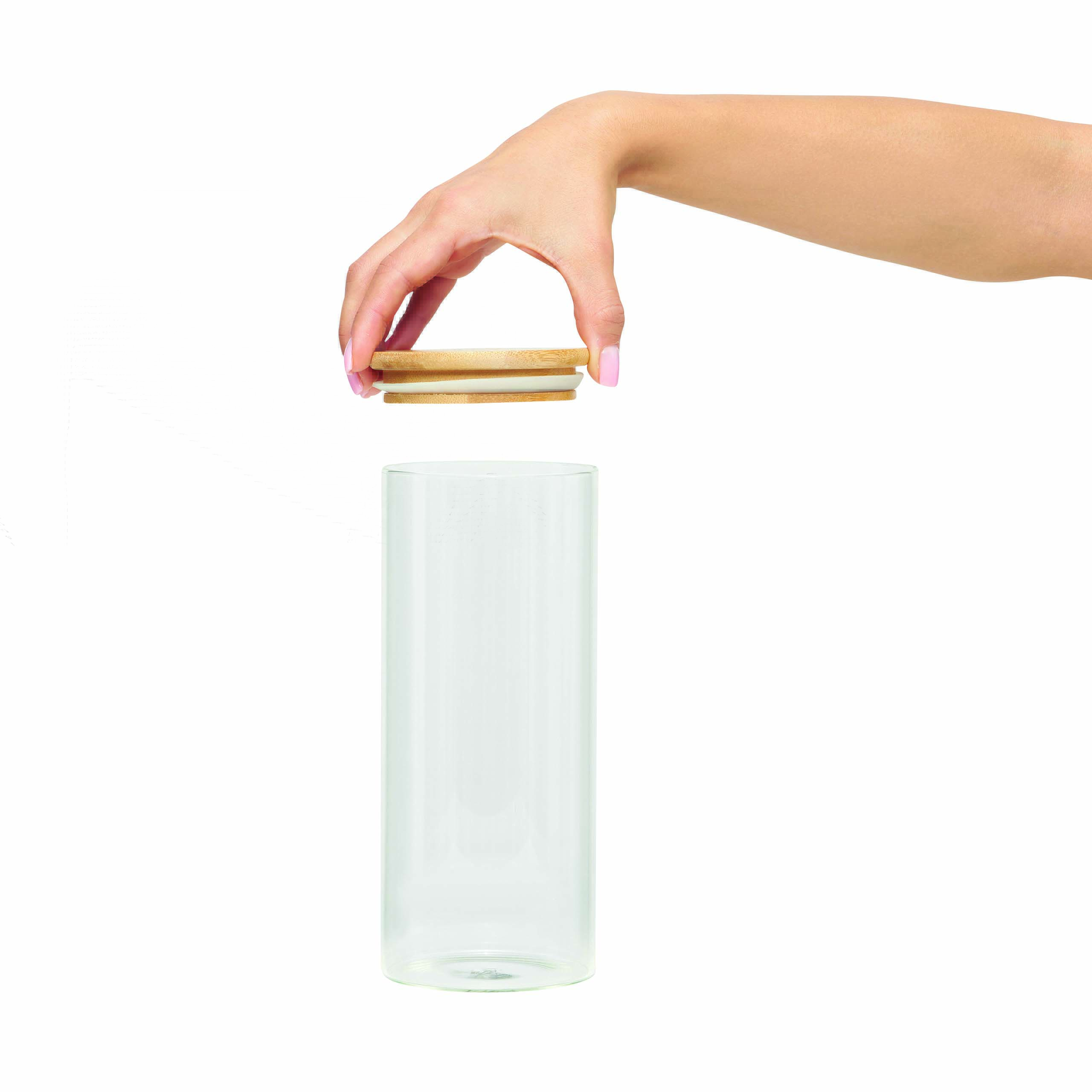 Szklany słoik ECO STORAGE L z hermetyczną pokrywką z bambusa. Do przechowywania makaronu, płatków śniadaniowych, przypraw, herbaty lub kawy. Pojemność ok. 1.000 ml.