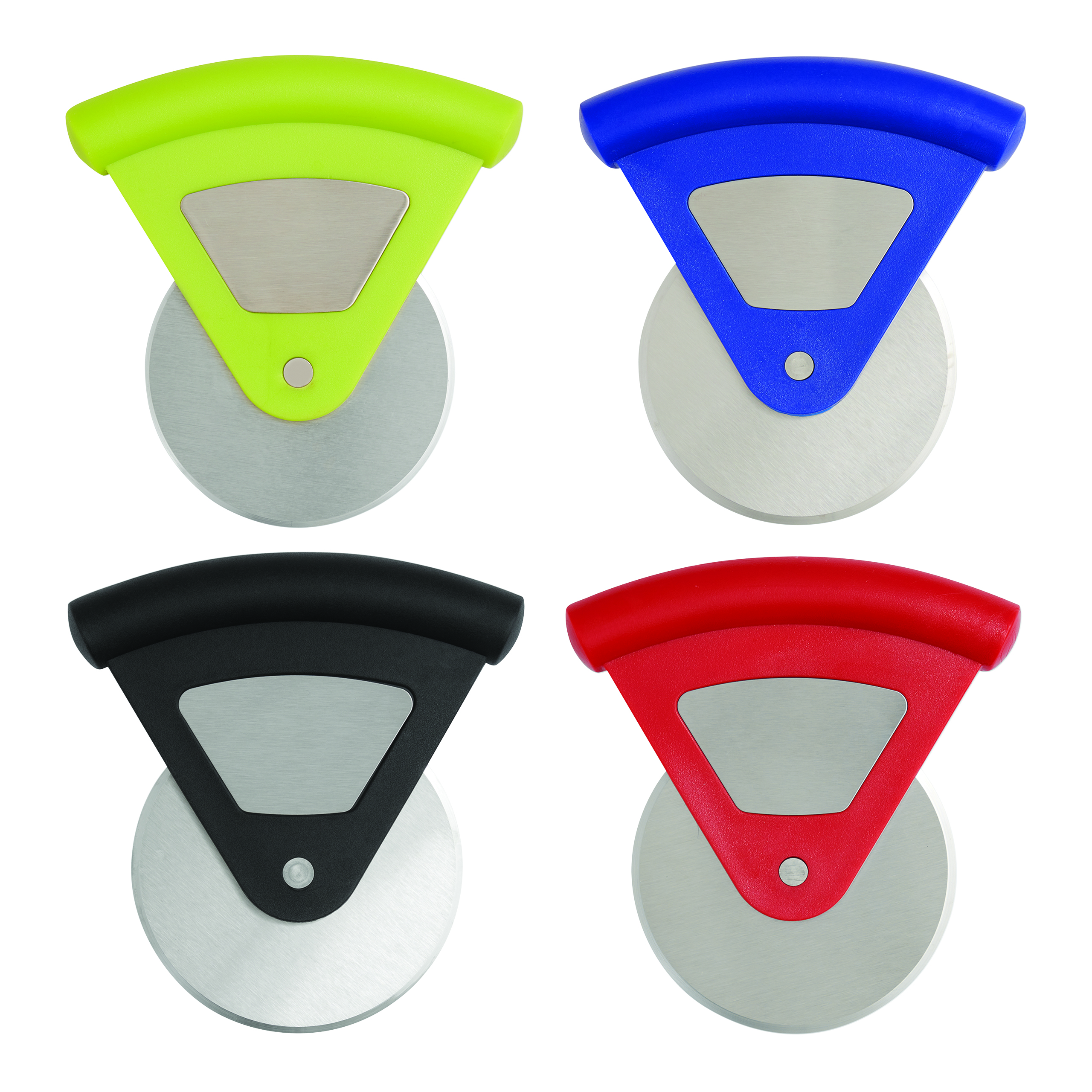 Nóż do pizzy USEFUL z kółkiem krojącym ze stali nierdzewnej, solidną, plastikową rączką z miejscem na reklamę, pakowany w pudełko.