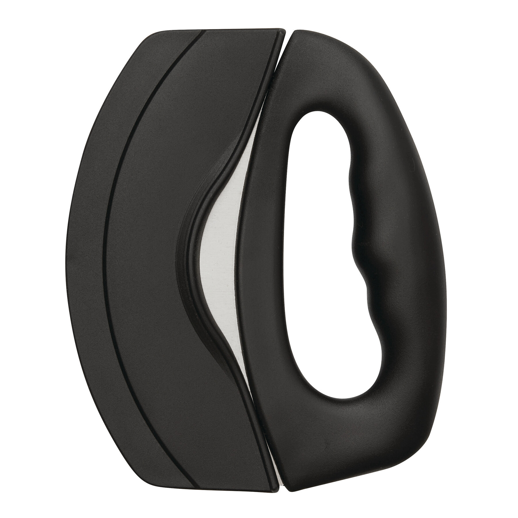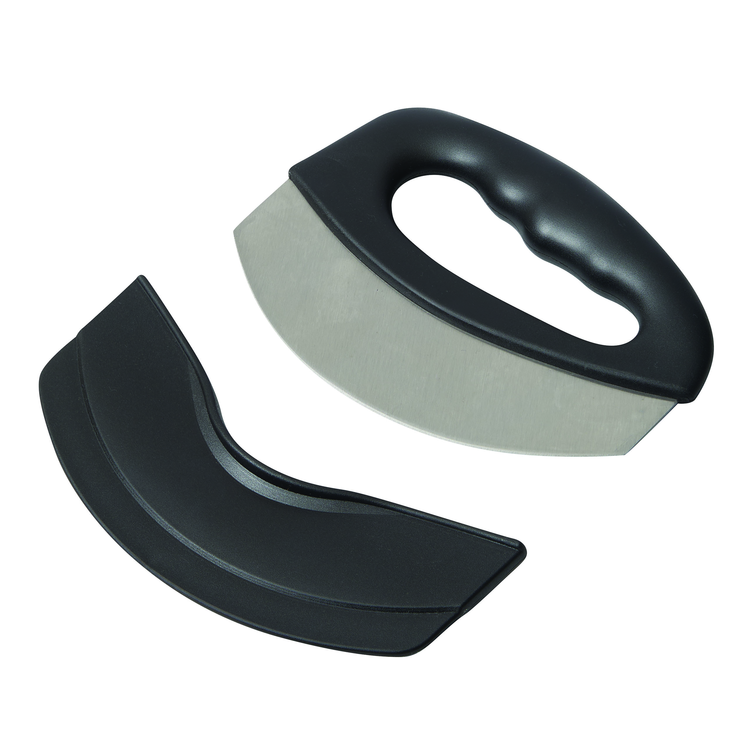 Nóż do pizzy SLICEMASTER. Nóż wykonany jest ze stali nierdzewnej z solidną plastikową rączką. W zestawie jest także osłona ostrza. Zapakowany jest w pudełko.