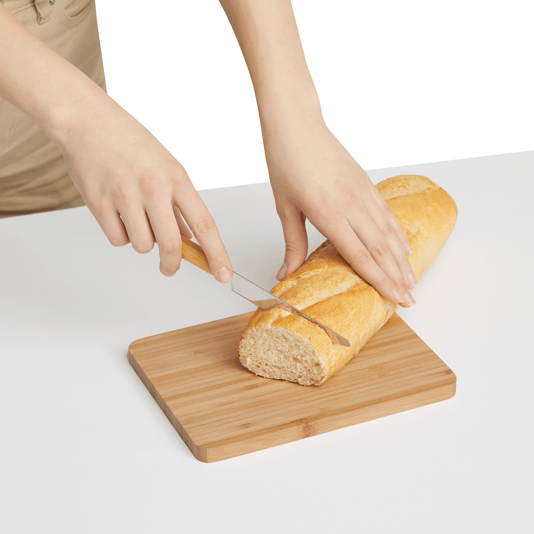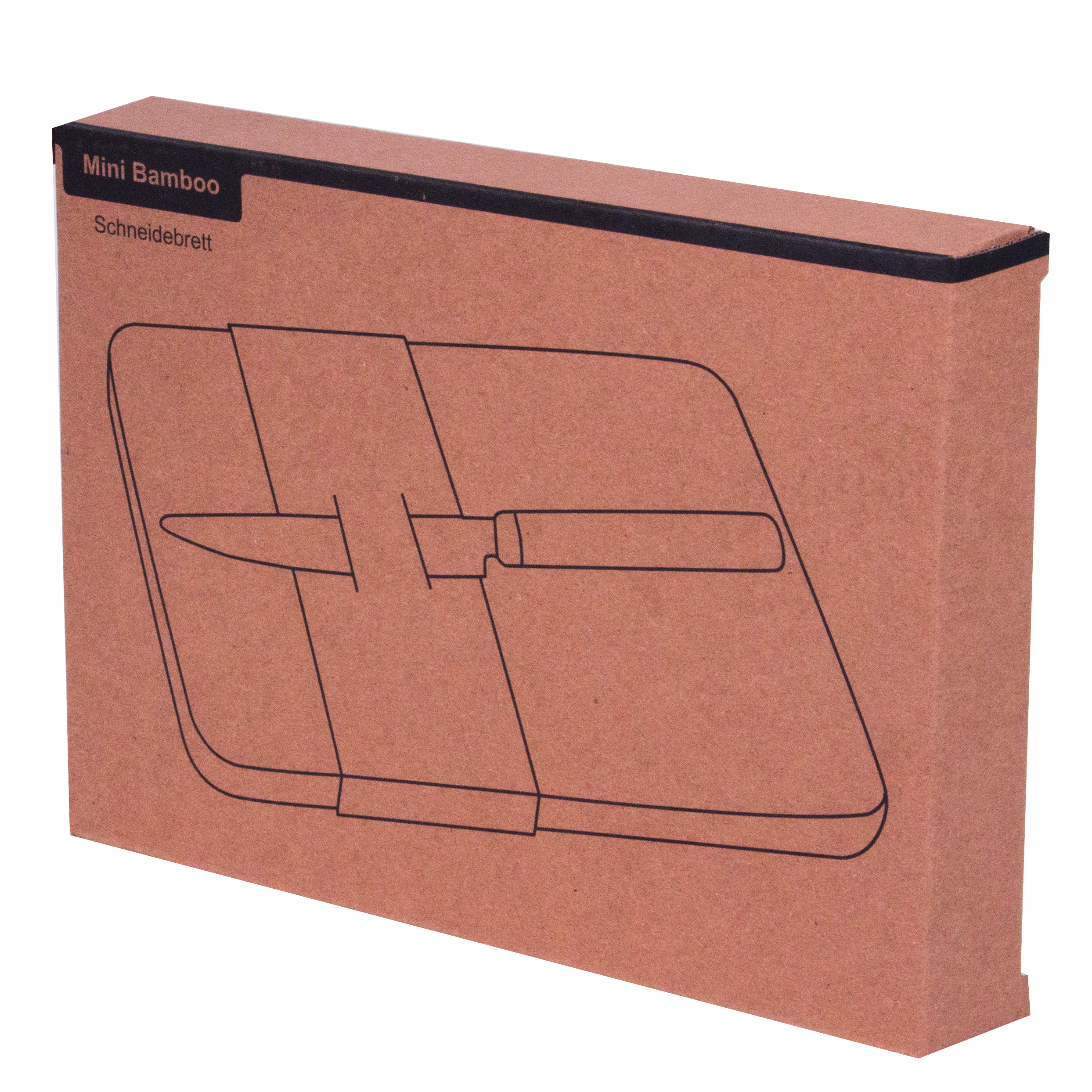 Deska do krojenia MINI BAMBOO. Bambusowa deska do krojenia, nóż ze stali nierdzewnej z uchwytem z bambusa, papierowa nakładka z miejscem na wsunięcie noża.