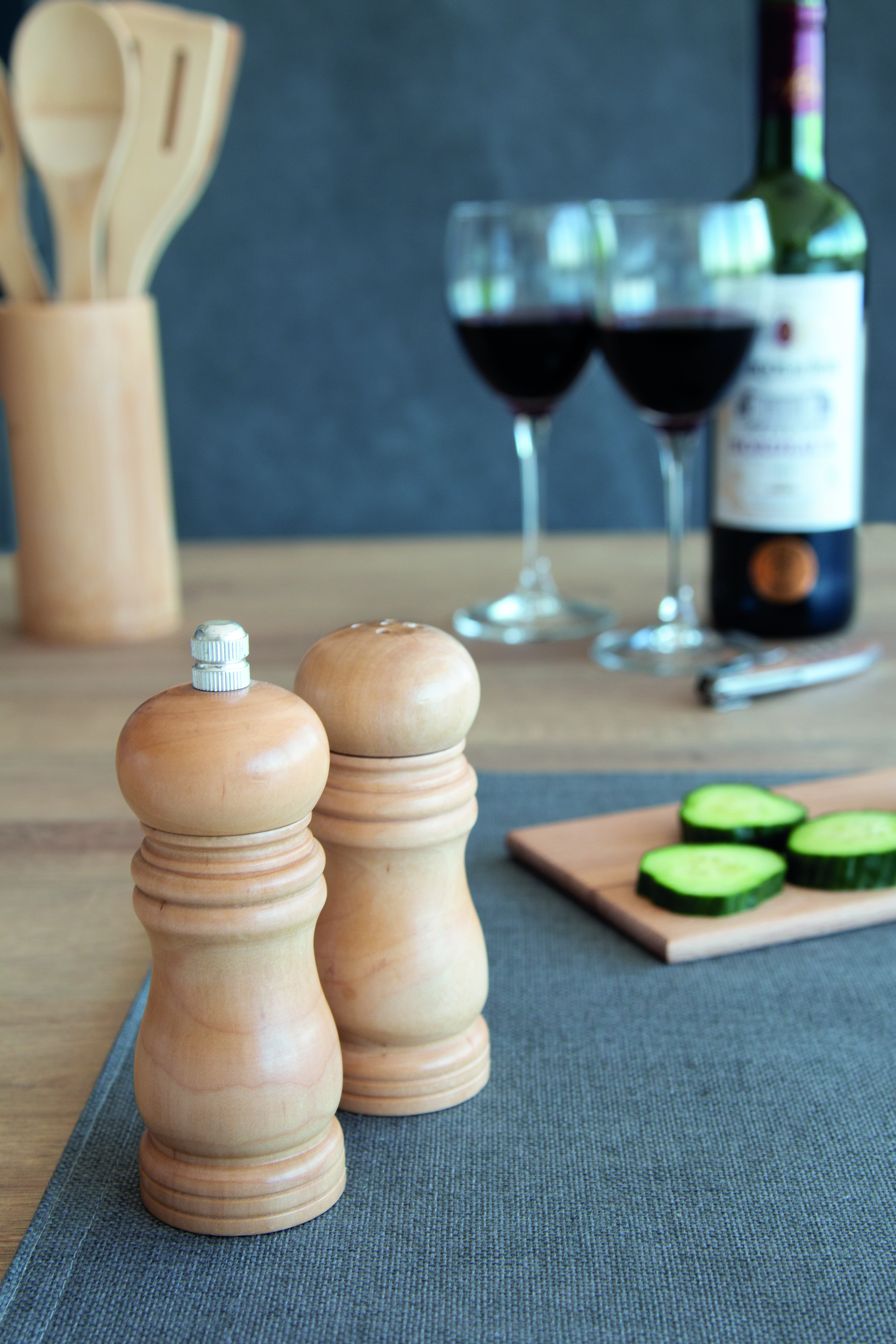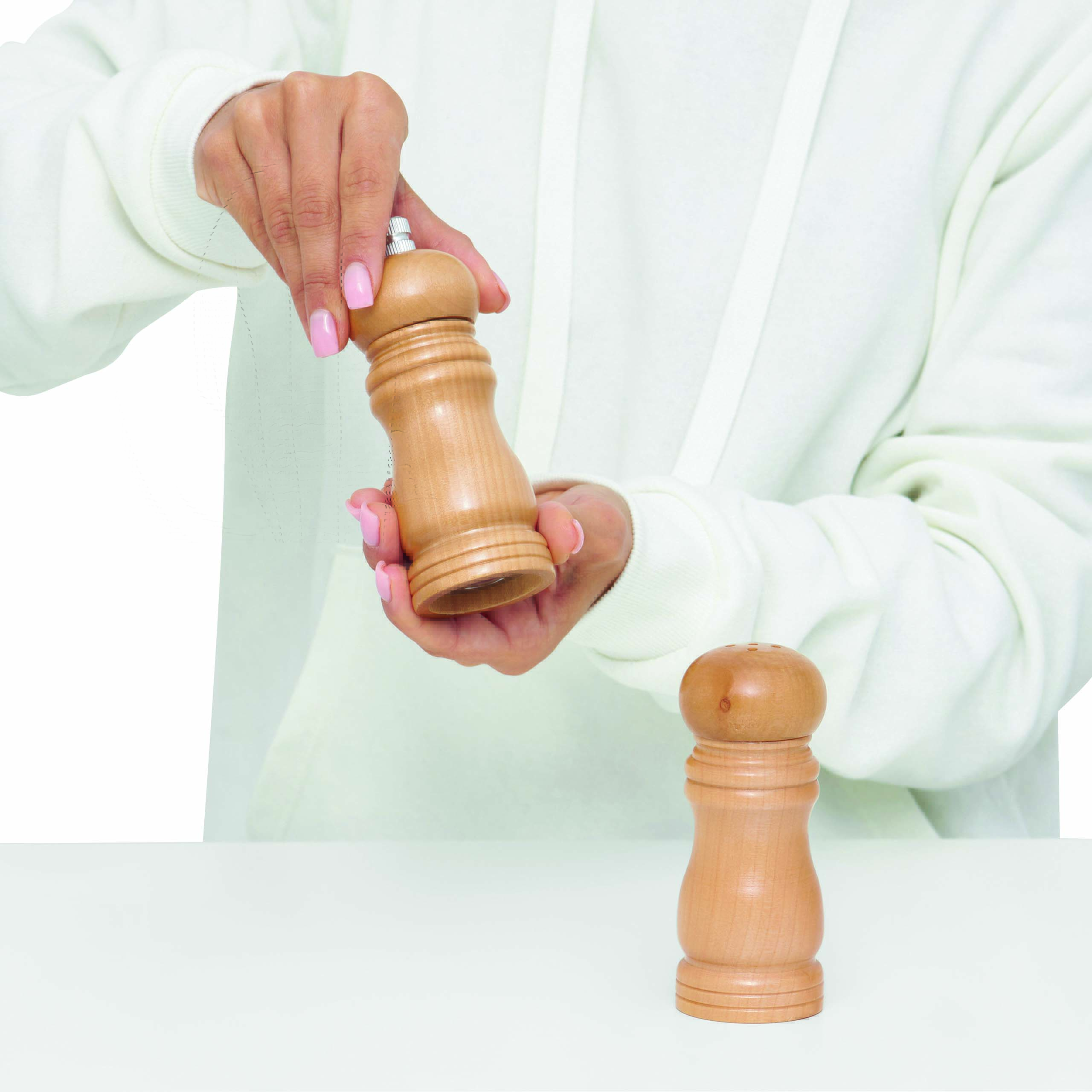 Zestaw solniczka i młynek do pieprzu DUO SPICE: wykonany z drewna, młynek do pieprzu z mechanizmem twist i ceramicznym mechanizmem mielącym, solniczka z 5 otworami do kontrolowanego dozowania